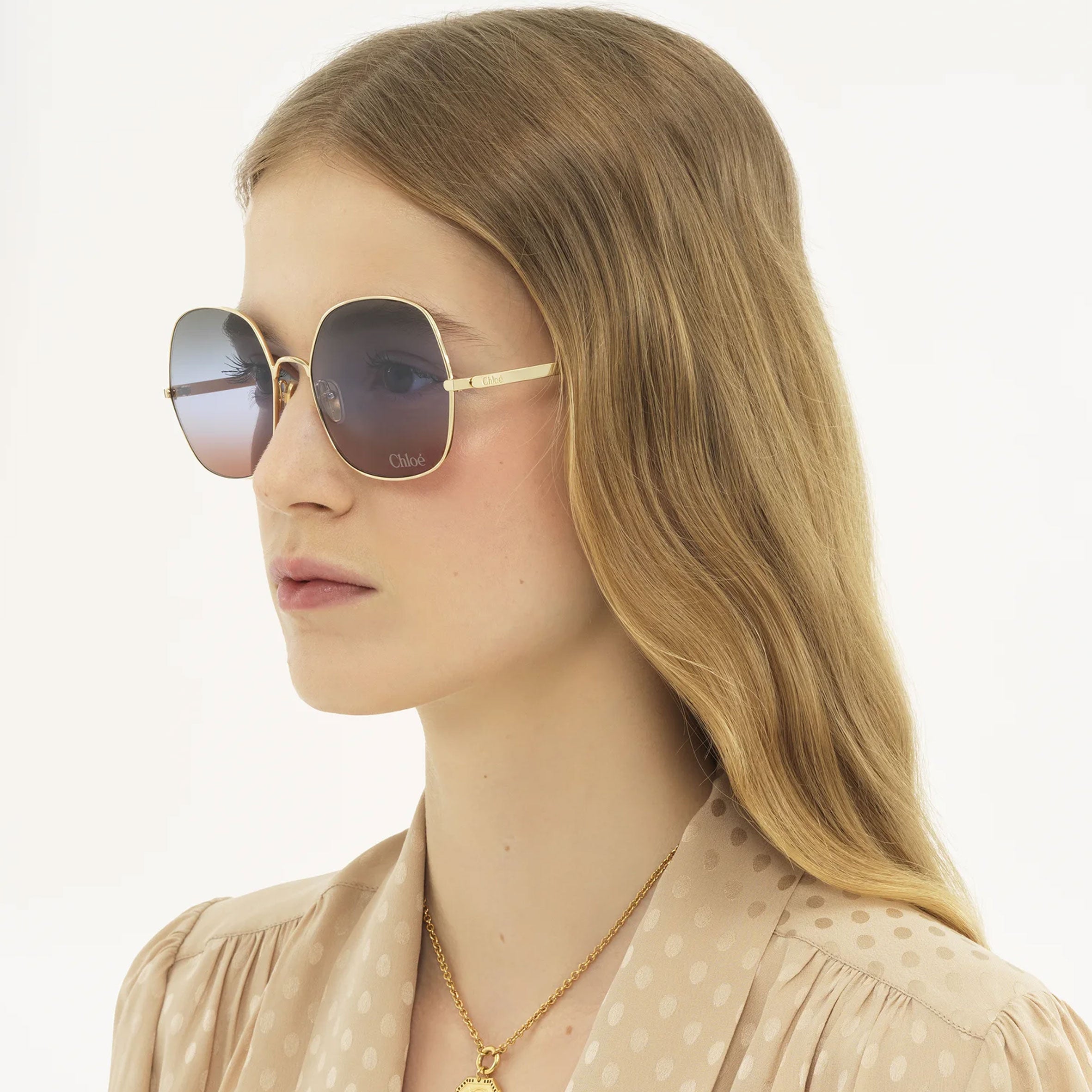 Drop-shaped openings at the temple tips make these sunglasses compatible with Chloé's eyewear jewelry.