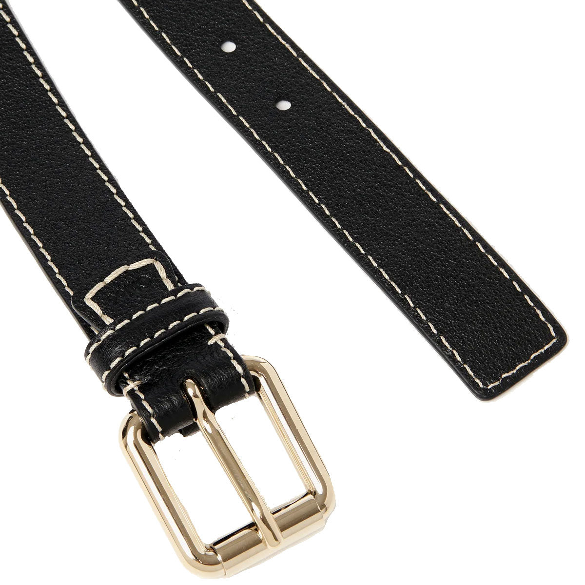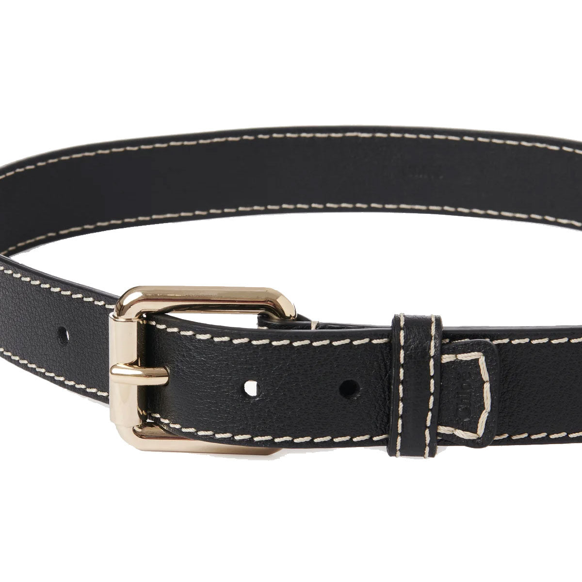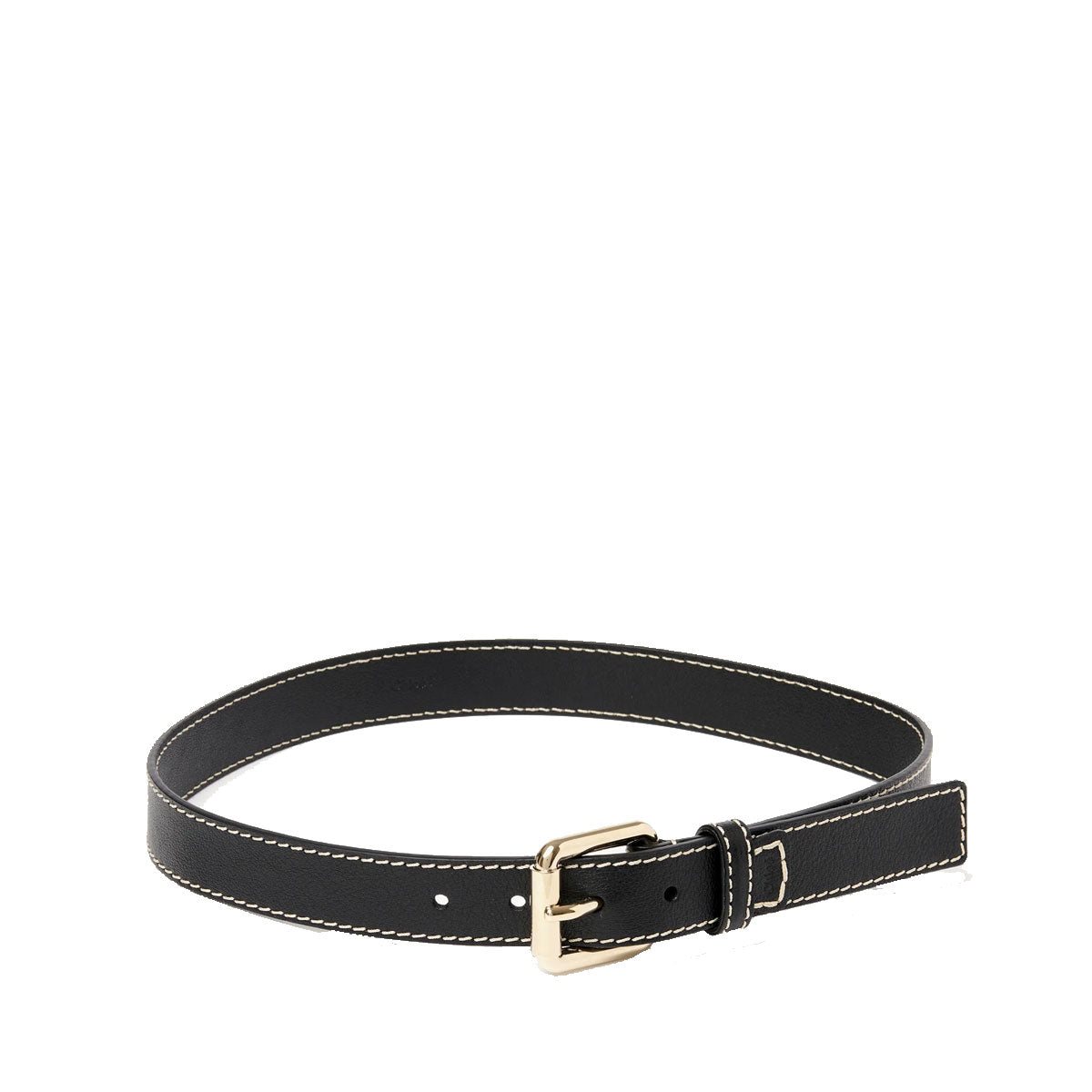 Crafted from buffalo leather, this Edith black waist belt is detailed with the line's characteristic Chloé-embossed leather tag and ecru stitching for an equestrian touch. The gold brass buckle adds refined hardware, while multiple holes let you adjust the fit to perfectly define the waist.