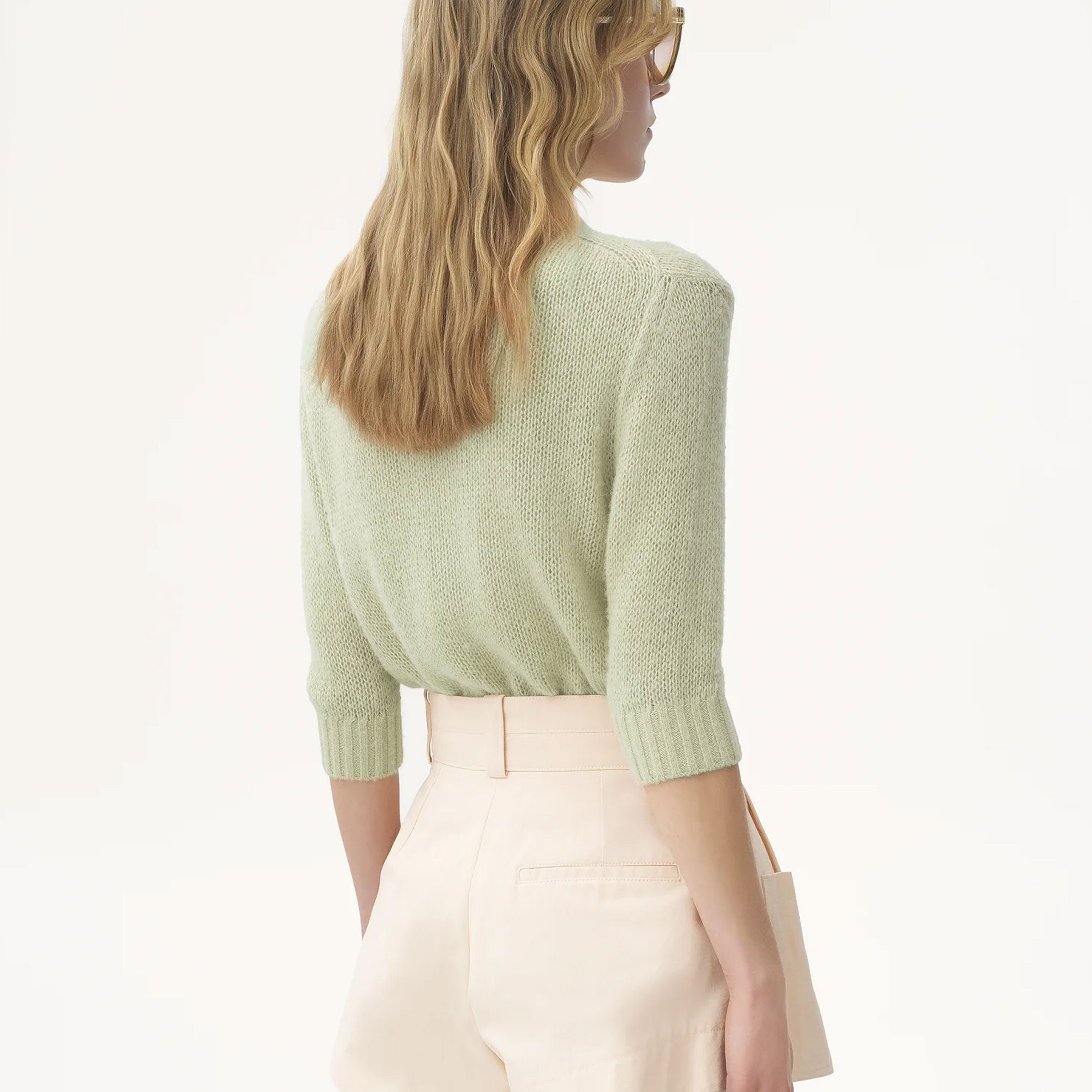 Crew-neck elbow-sleeve sweater in an alpaca wool and silk knit, detailed with ribbed trims and large Chloé logo embroidery at the front.