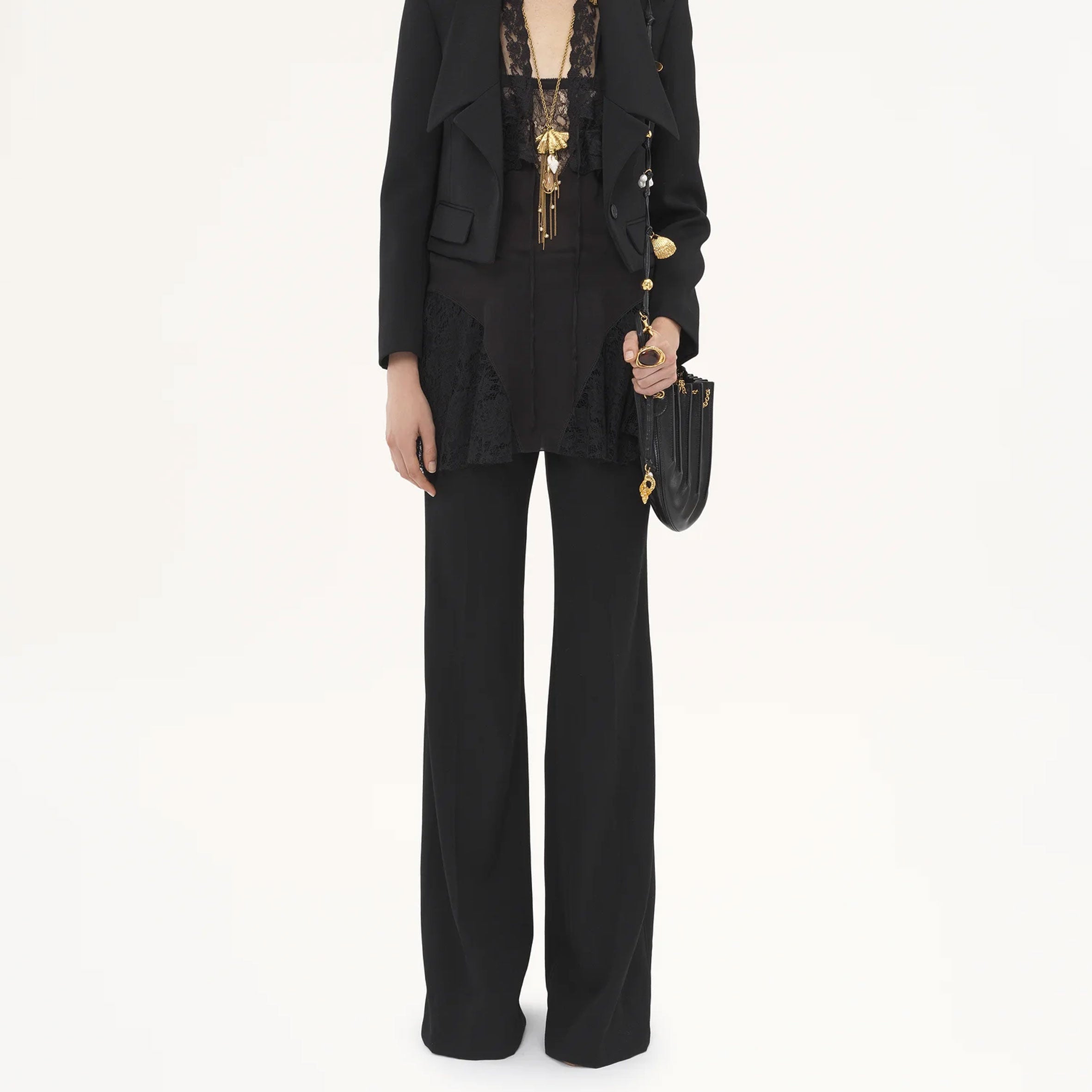 Flared Tailored Trousers, Black