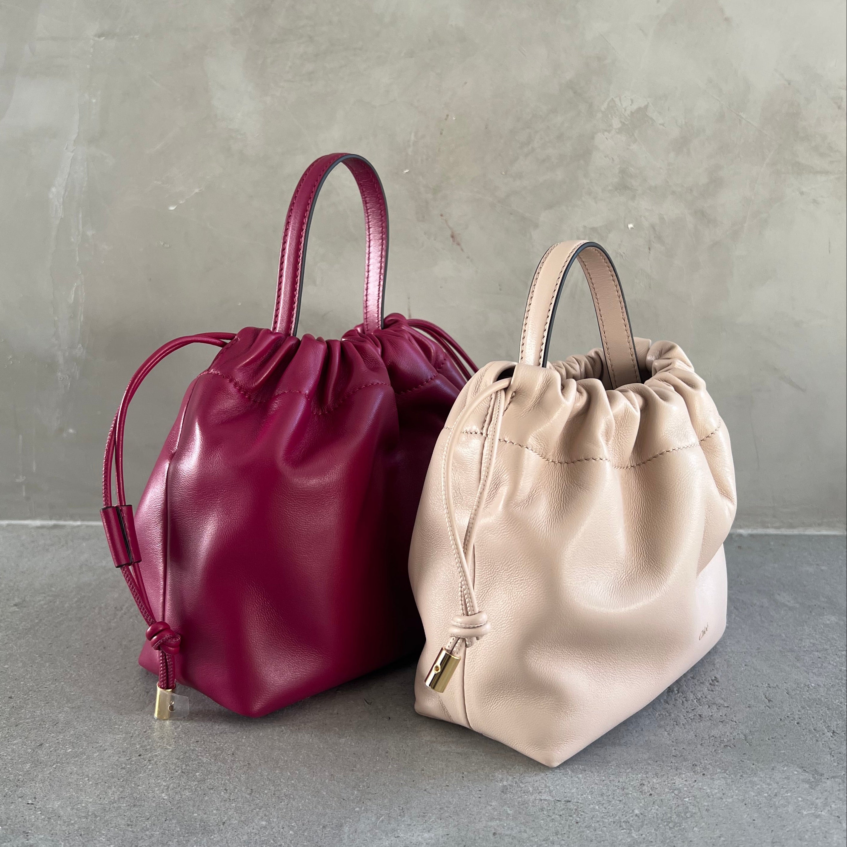 Icons Drawstring Chain Bag, Berry