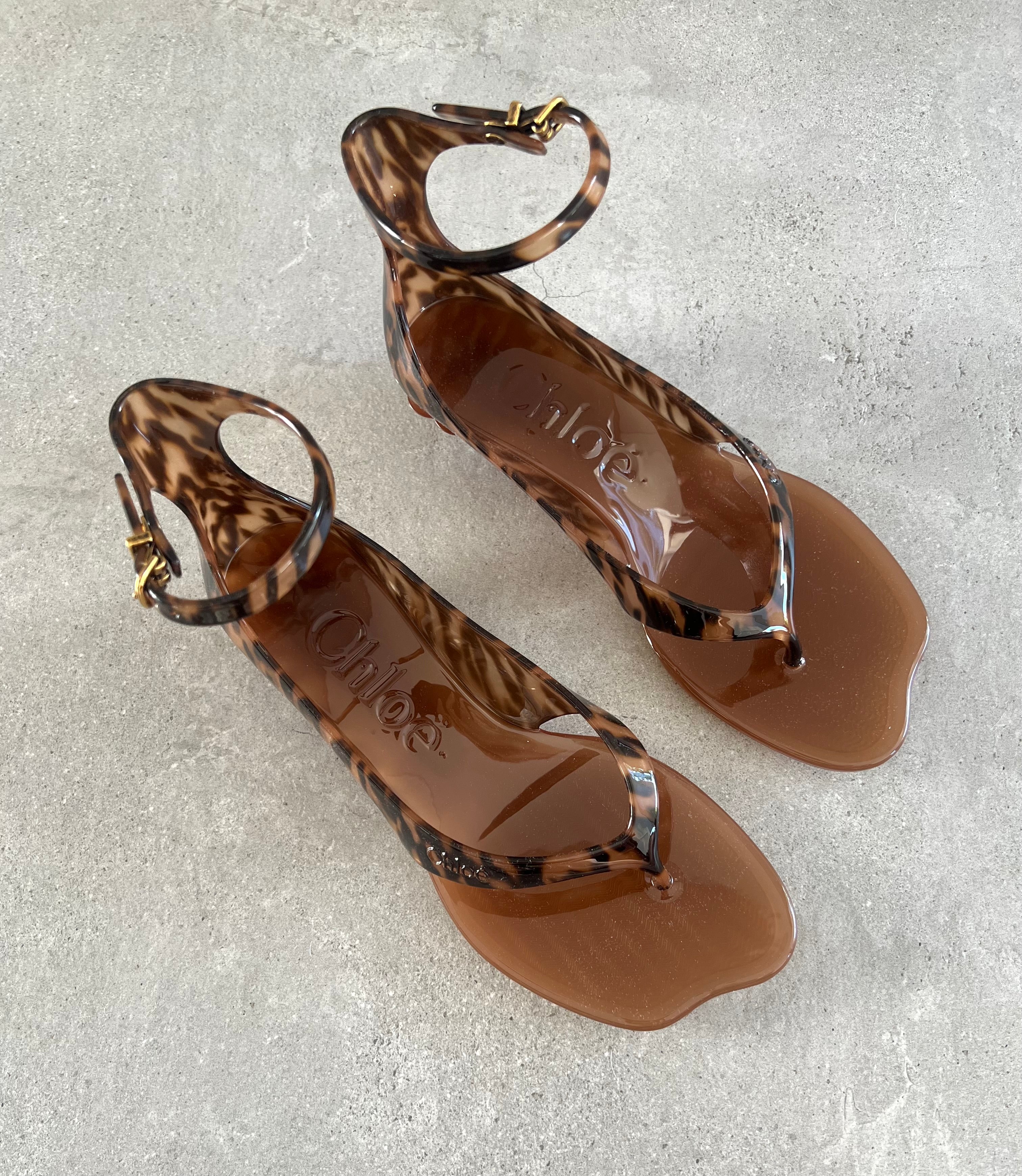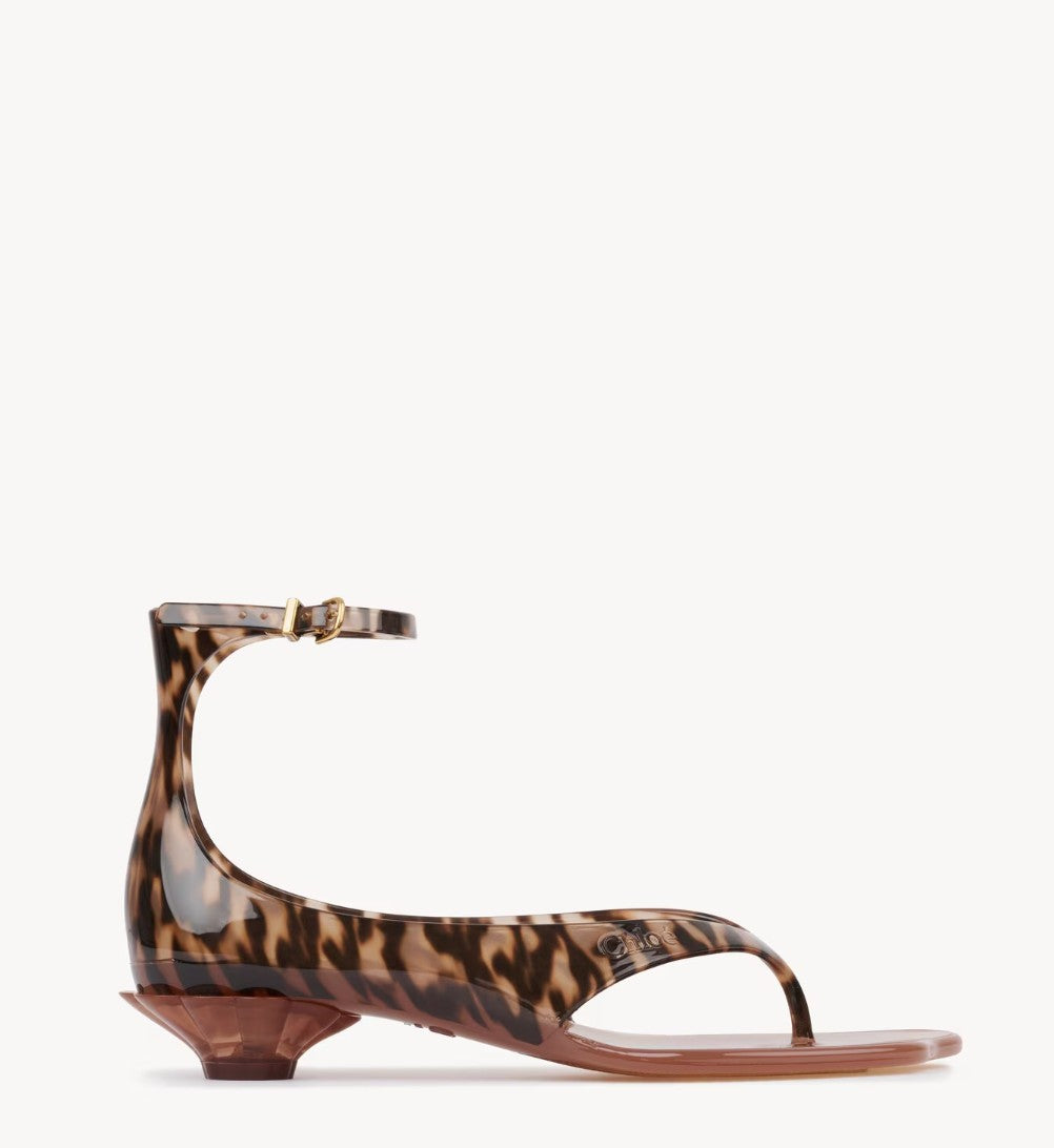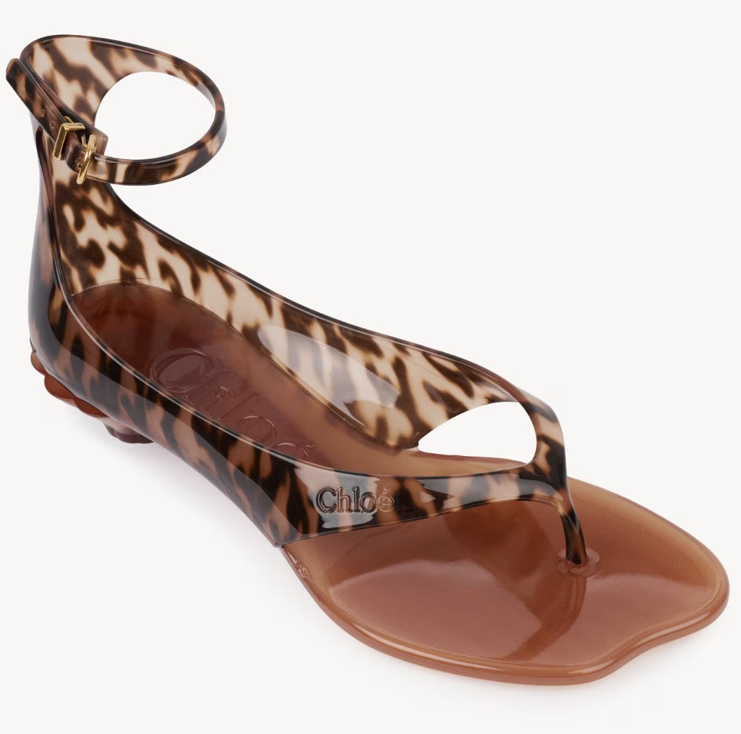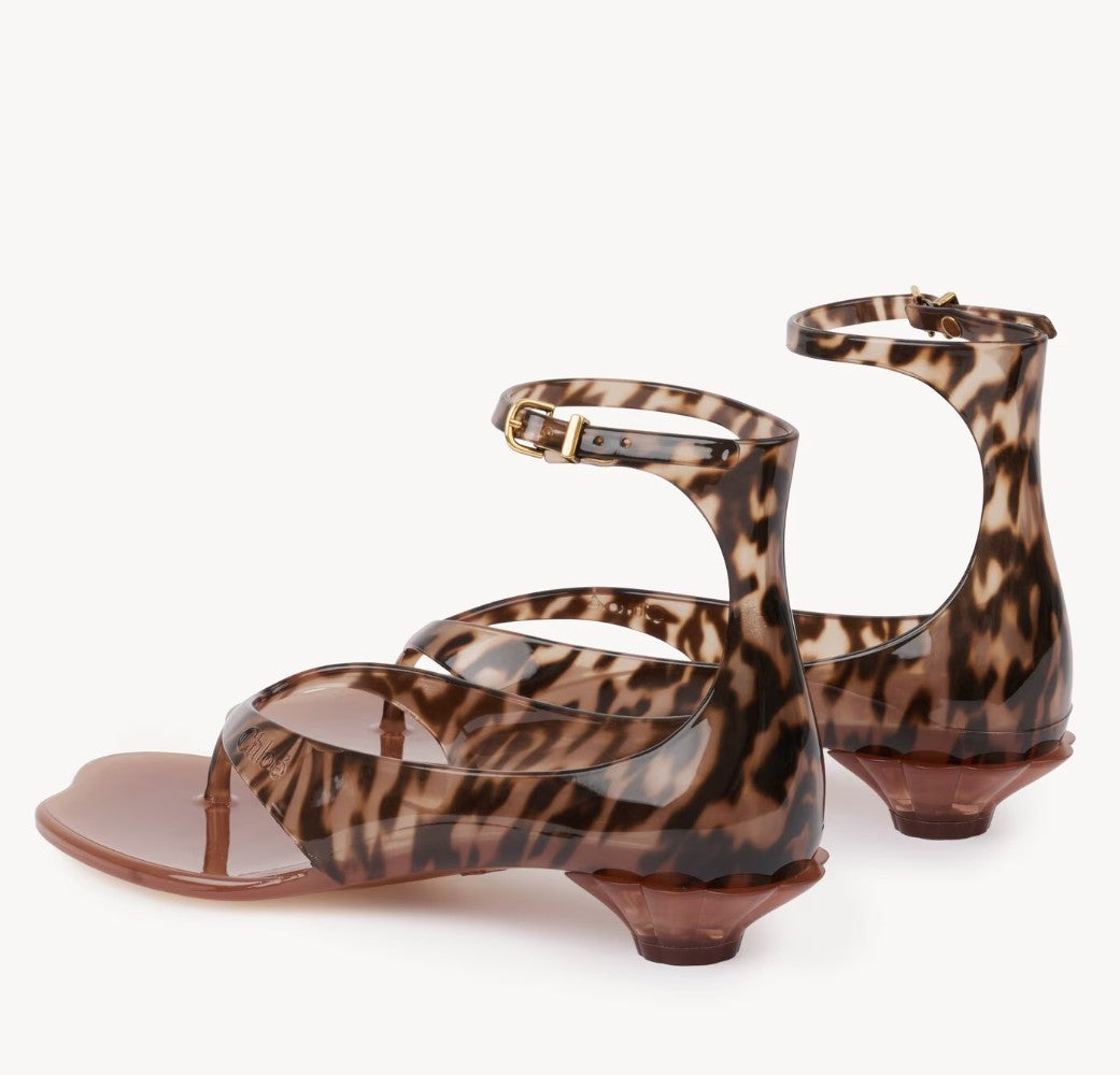 Crafted from transparent TPU with a jungle print, the Chloé Jelly sandals combine a thong front with a distinctive wavy sole and a shell-shaped heel.