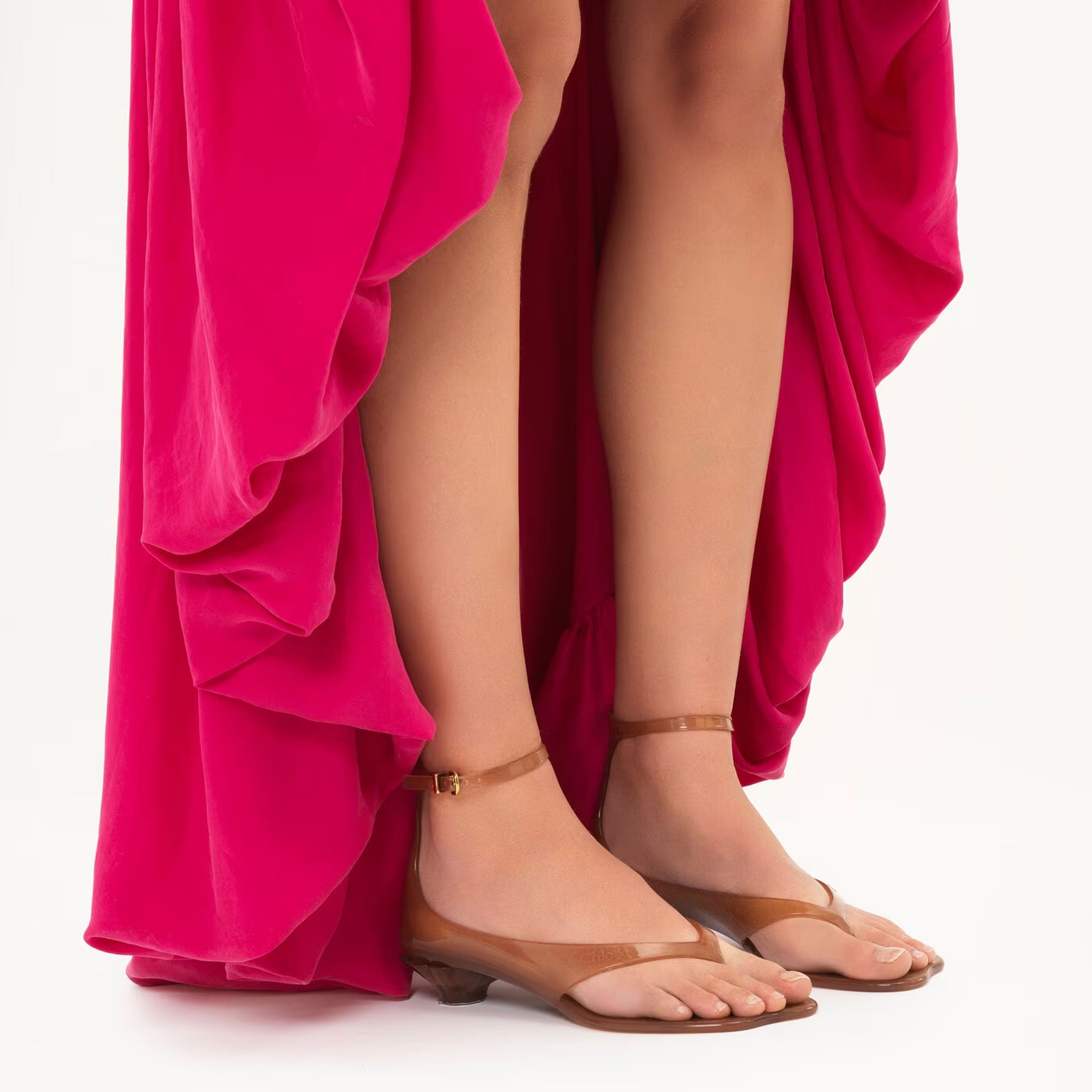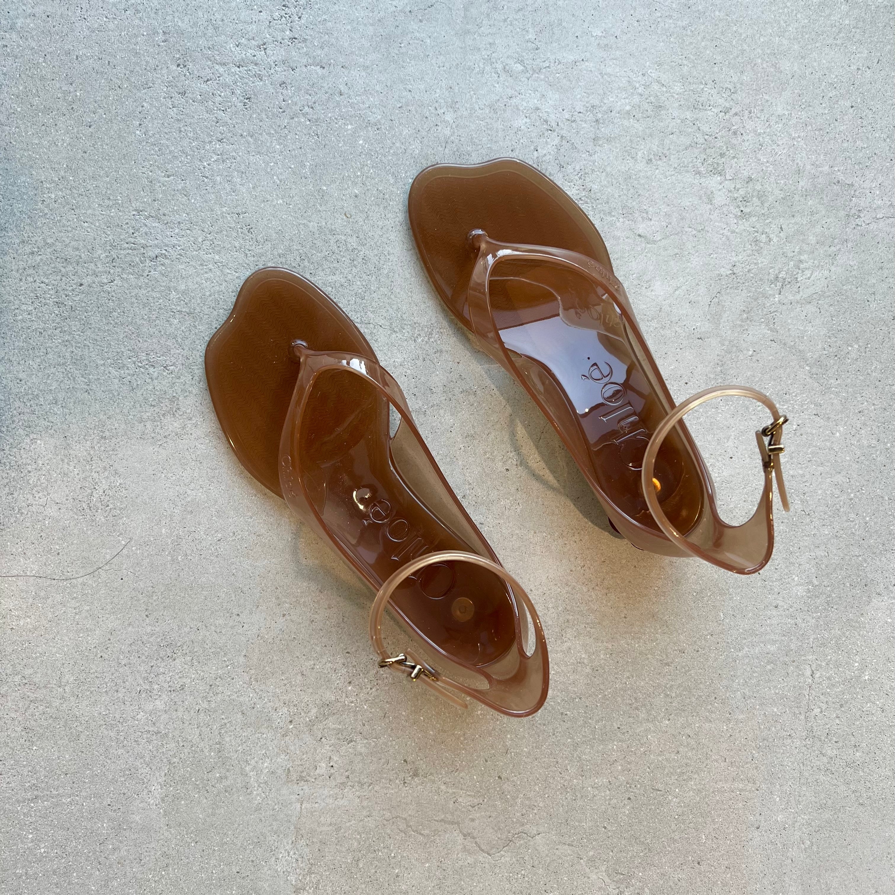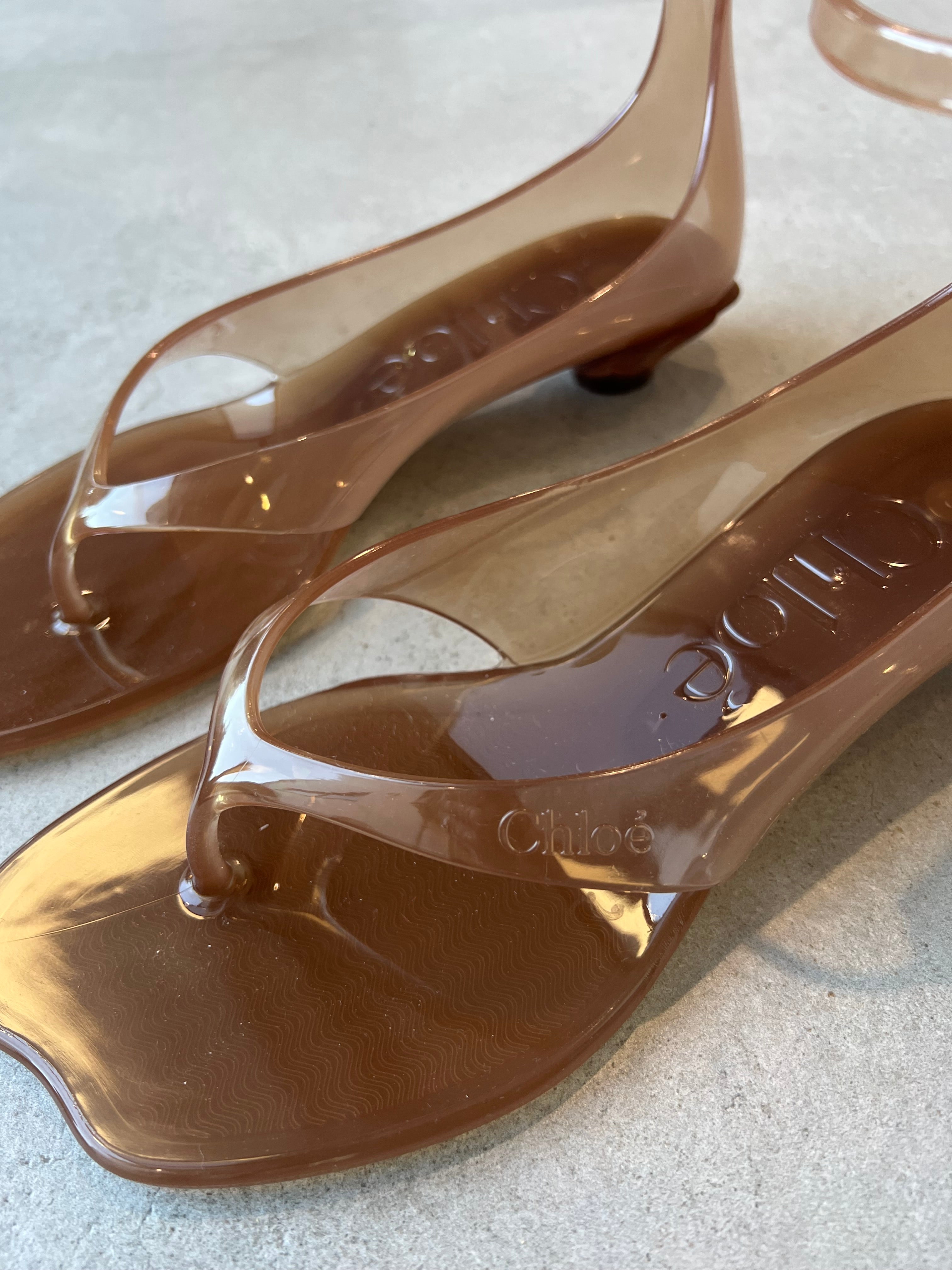 Crafted from transparent TPU, the Chloé Jelly sandals combine a thong front with a distinctive wavy sole and a shell-shaped heel.