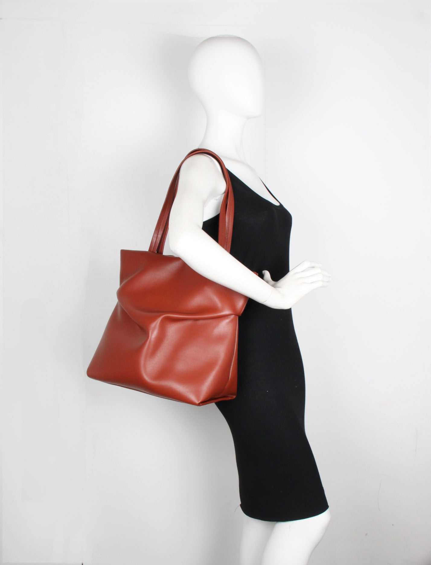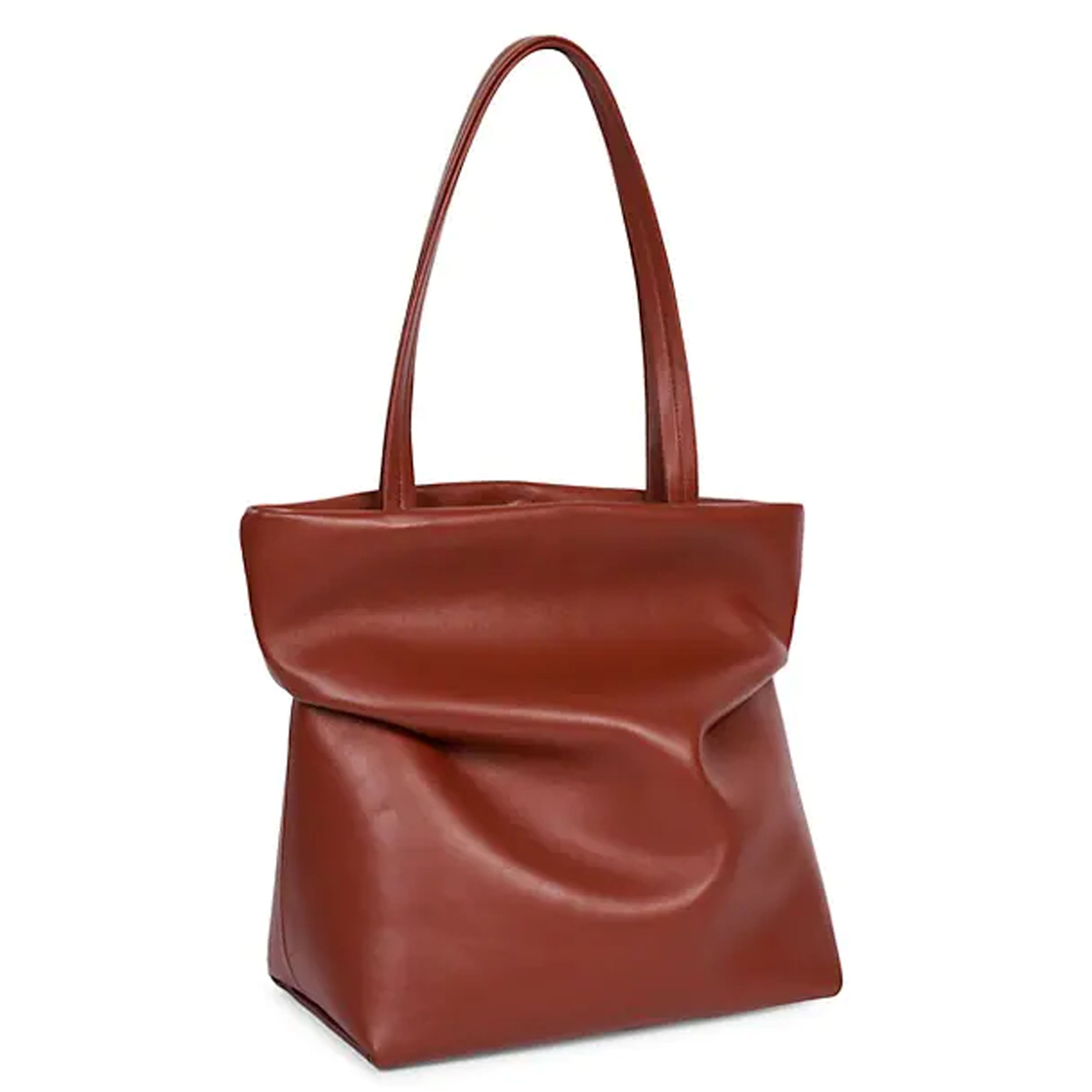 An everyday tote bag with clean lines and a curved shape, the Judy tote bag is designed with an intentionally rumpled shape, this luxe leather tote epitomizes casual elegance. Featuring double shoulder straps with a magnetic closure and gold tone hardware. The Judy also has an inside zip pocket.