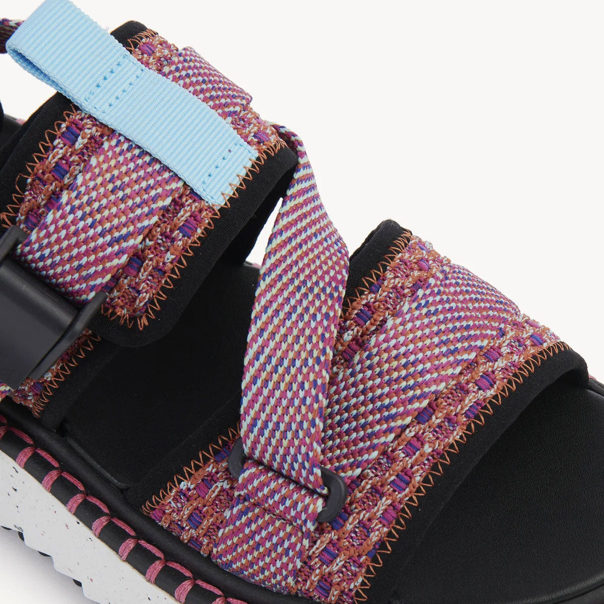 The Lilli sporty flat sandal offsets a bold, signature sole with crafty details. The comfortable platform silhouette is elevated with playful details, textures and contrasts. Featuring distinctive hand stitching detail, padded straps and an adjustable buckle for comfort.