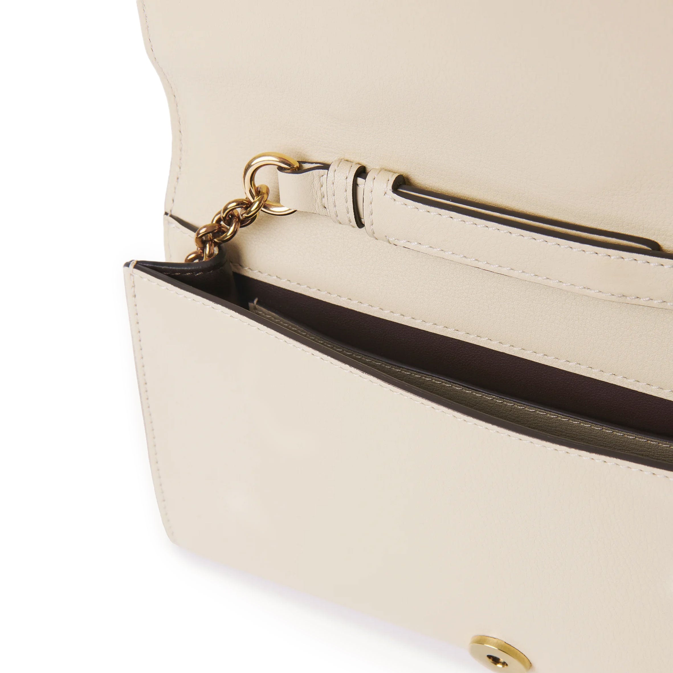 Crafted from smooth calfskin, the Chloé Iconic crossbody bag is inspired by a belt from the Maison's Archives, featuring an oversized golden jewel-like signature.