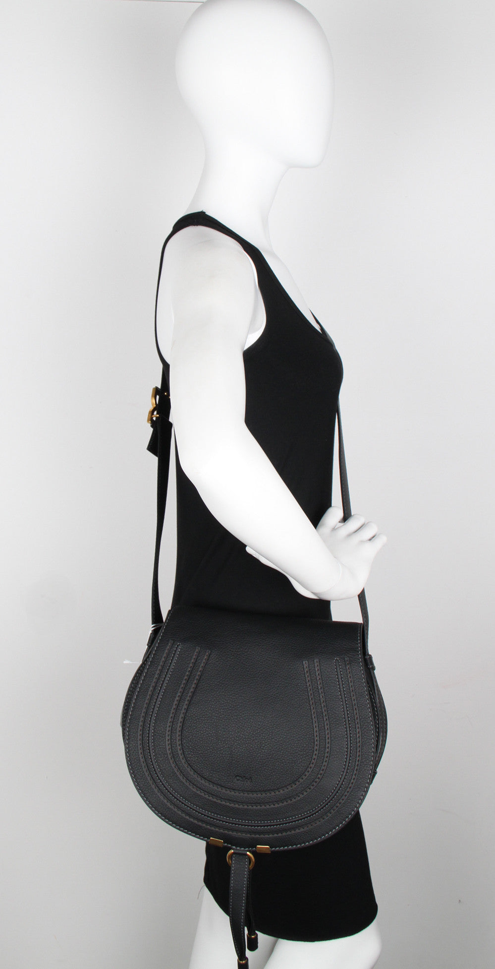 Genuine calfskin leather with canvas lining and gold-tone hardware. Comes with an adjustable shoulder strap and fold-over flap top with straps and buckle closure. Also comes with an interior pocket and front compartment.