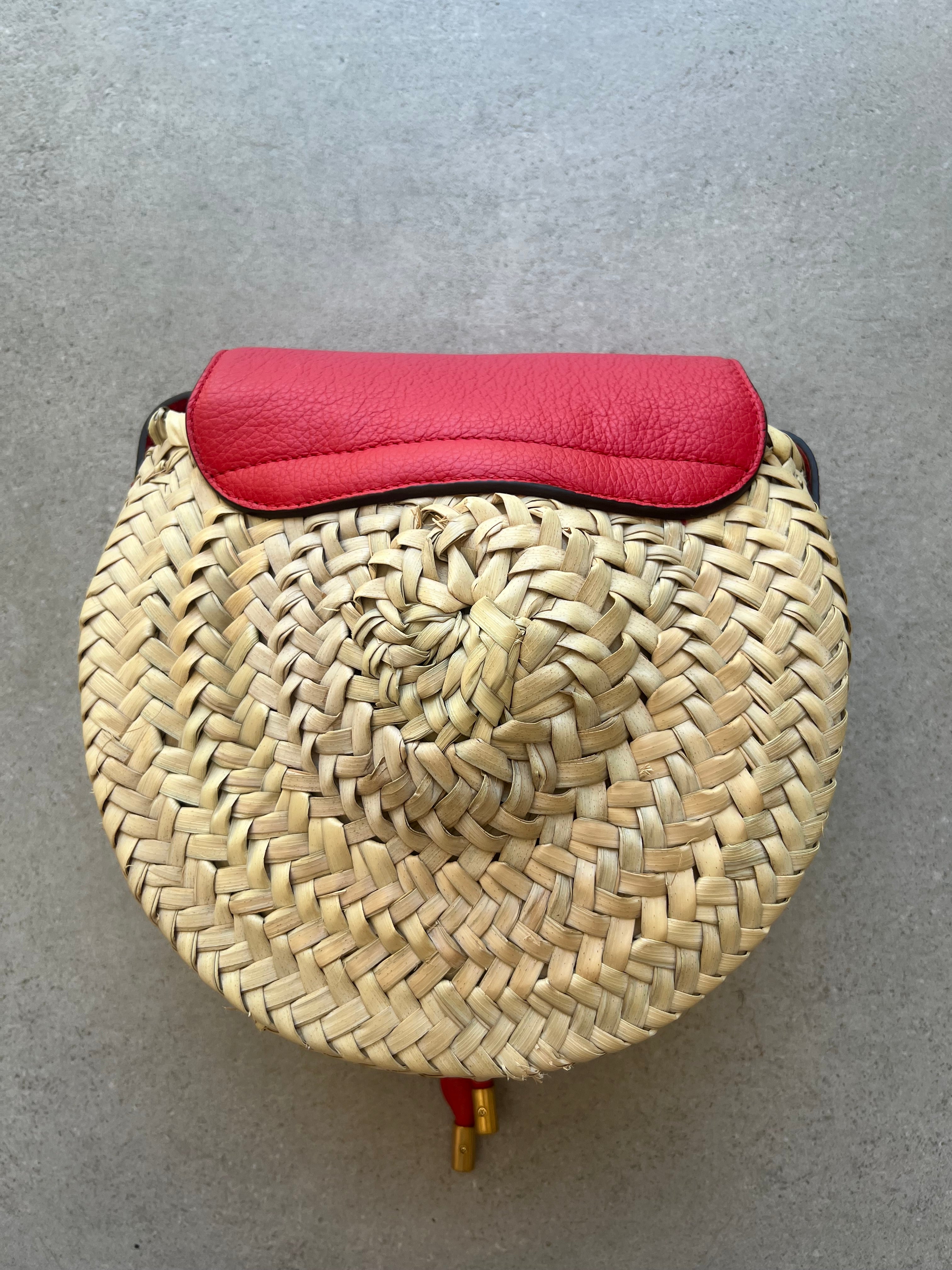 The new Chloe Marcie Raffia Satchel retains the classic shape of the Marcie satchel, whilst incorporating innovation through the unique raffia trim. Perfect for summer whilst maintaining versatility. This style is wider and taller than the orginal mini Marcie however it is not as deep.