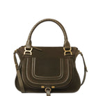 Decorative saddle stitches on the front flap tie in with the brass studs along the curved edges for an equestrian influence. The X-shaped buckles bring a feminine, refined touch. Double leather wrapped-handles and a long shoulder strap mean you can carry Marcie any which way: long shoulder, cross body or by hand.