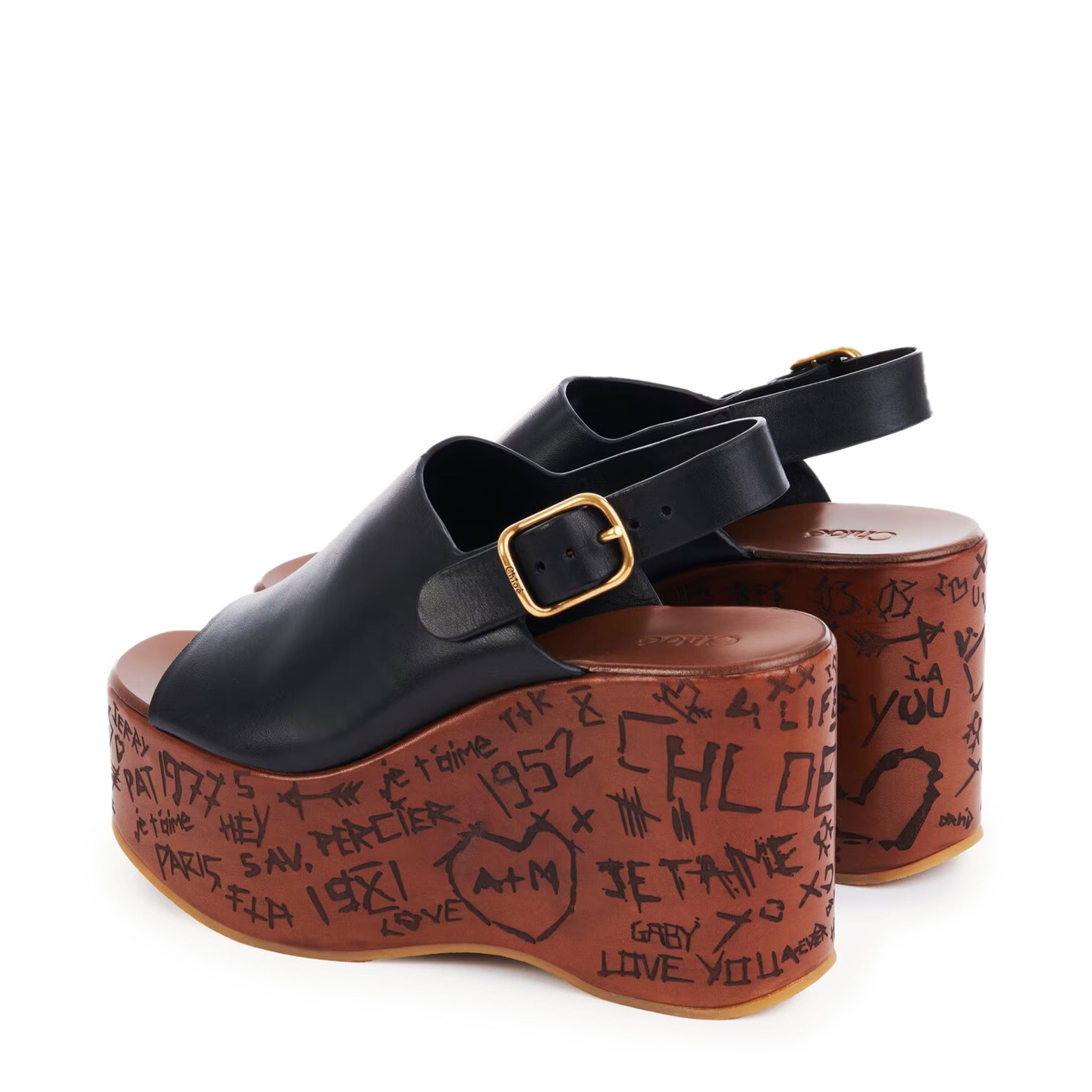 The sole references the Maison's heritage like engraved love notes on trees. A Chloé-engraved buckle finishes these sandals for a comfortable fit.