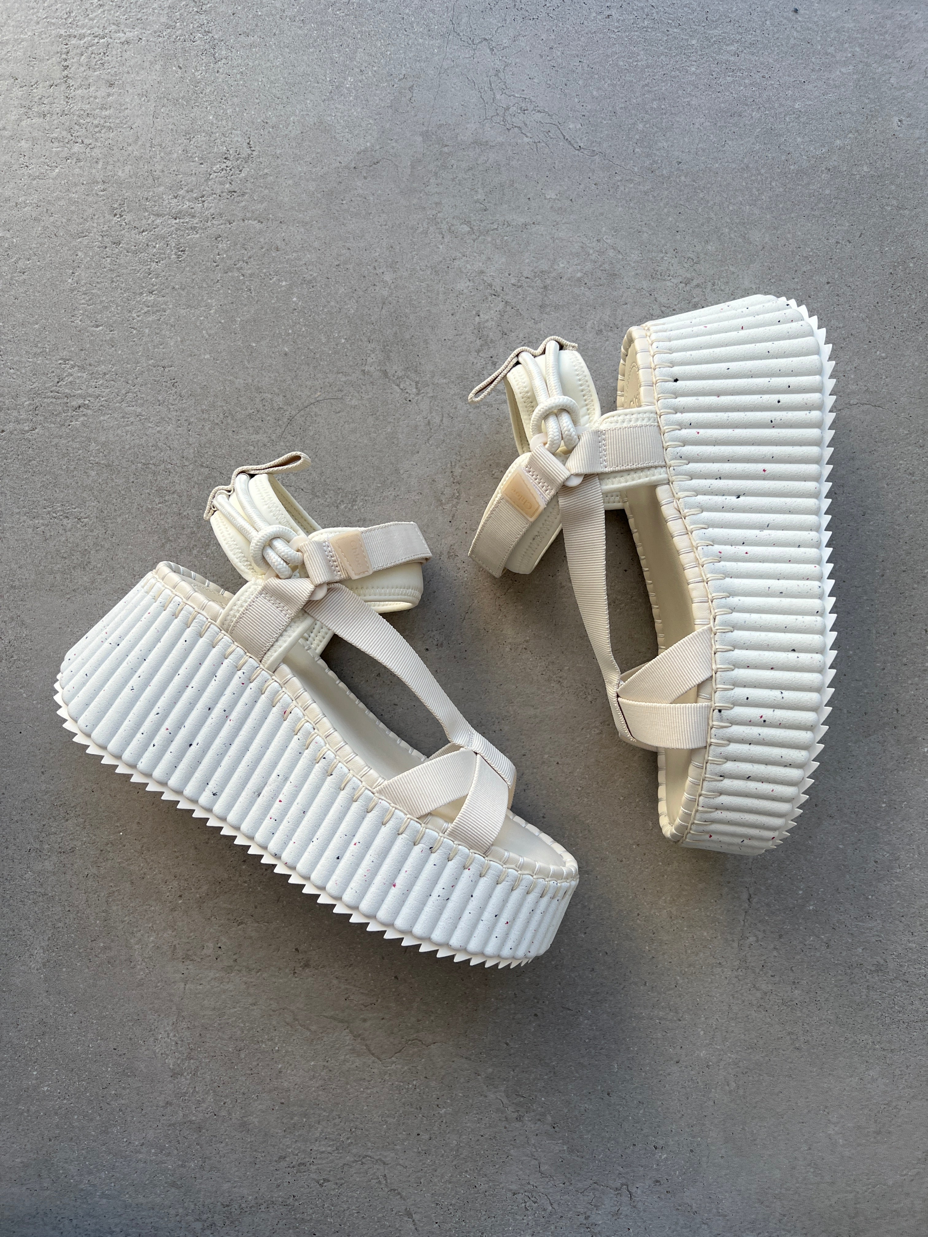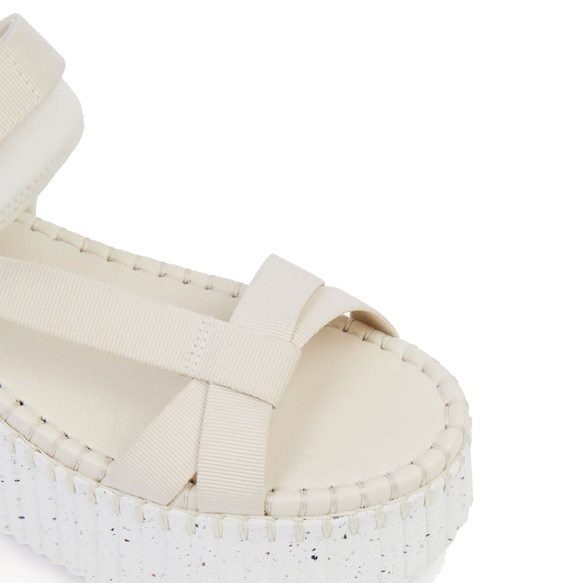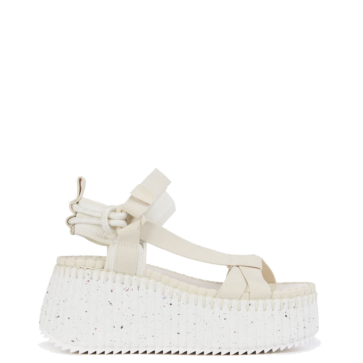 Bold and lightweight, the ultra-comfortable recycled wedge sole has a ridged texture that is complemented by the line's distinctive, contrasting stitches. The original upper features decorative laces tied in nautical knots, along with sporty straps and a Velcro fastening for the perfect fit.