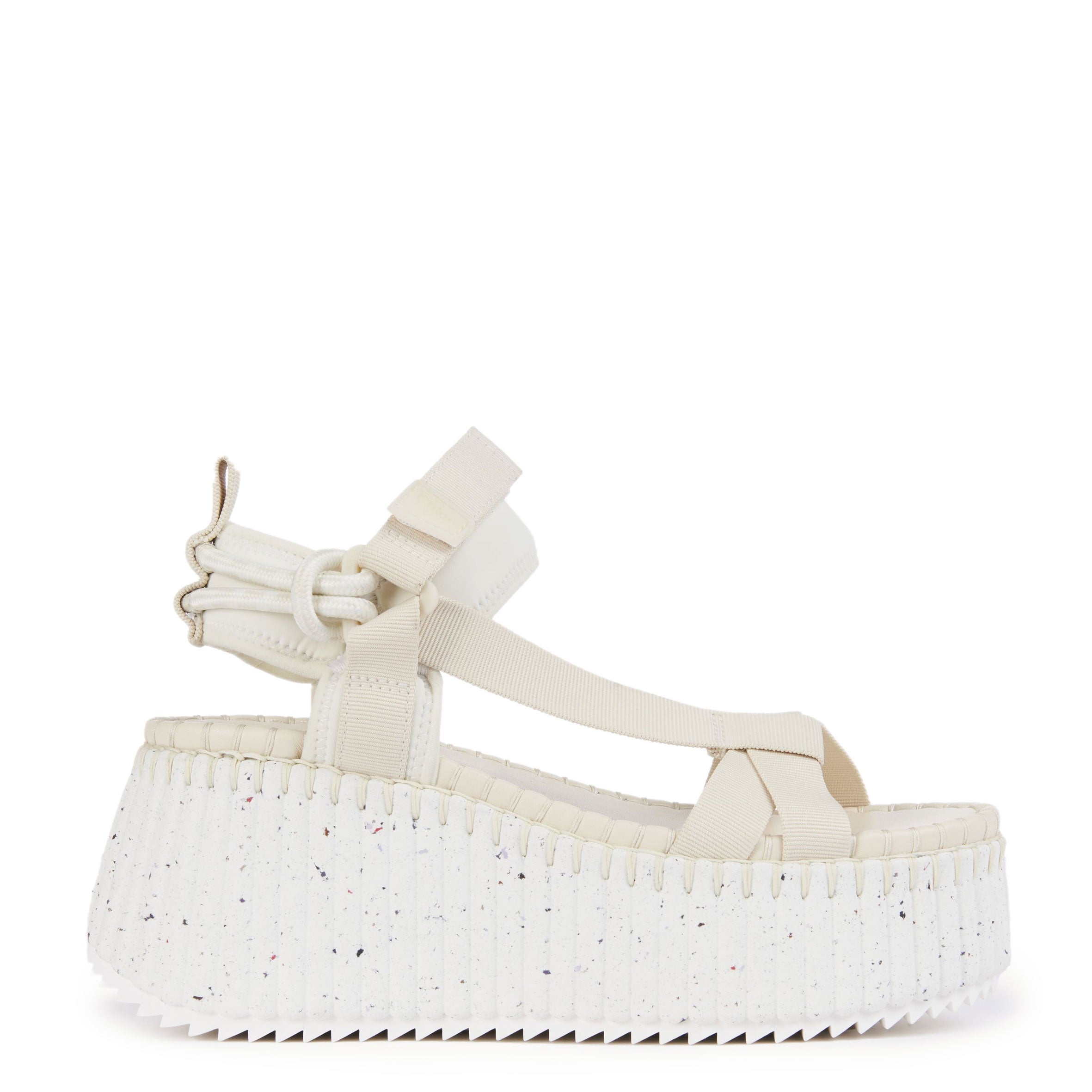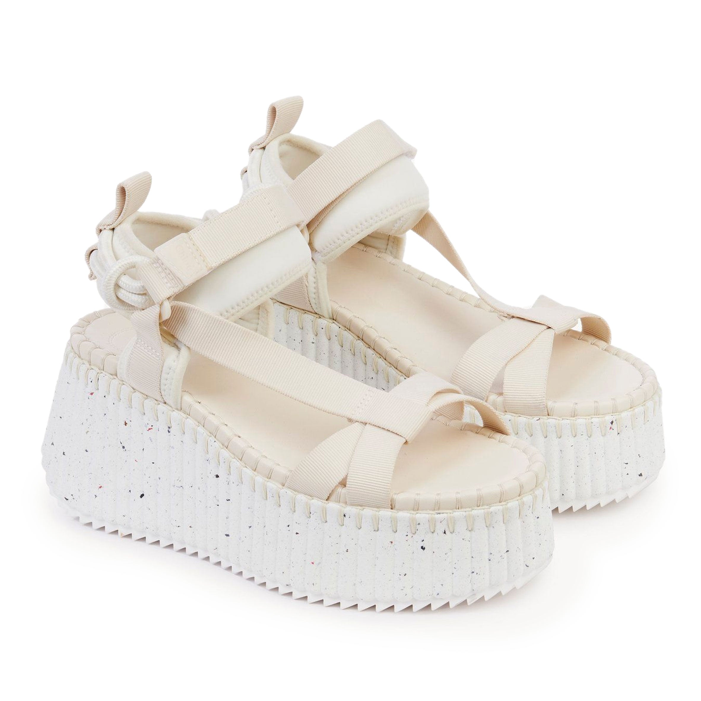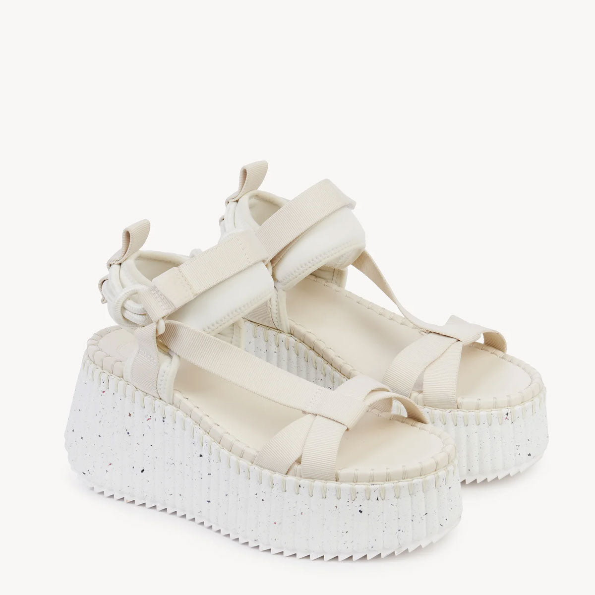 Bold and lightweight, the ultra-comfortable recycled wedge sole has a ridged texture that is complemented by the line's distinctive, contrasting stitches. The original upper features decorative laces tied in nautical knots, along with sporty straps and a Velcro fastening for the perfect fit.