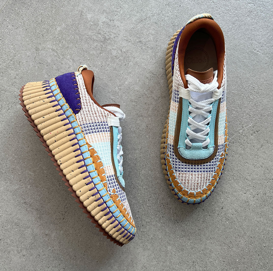 The bold, lightweight structure features a hand-stitched mesh upper, showcasing authentic Chloé craftsmanship. Set on a contrasting, ridged sole, this women's sneaker is ultra-comfortable with a cool, sporty aesthetic. The Chloé logo at the back adds a signature touch.