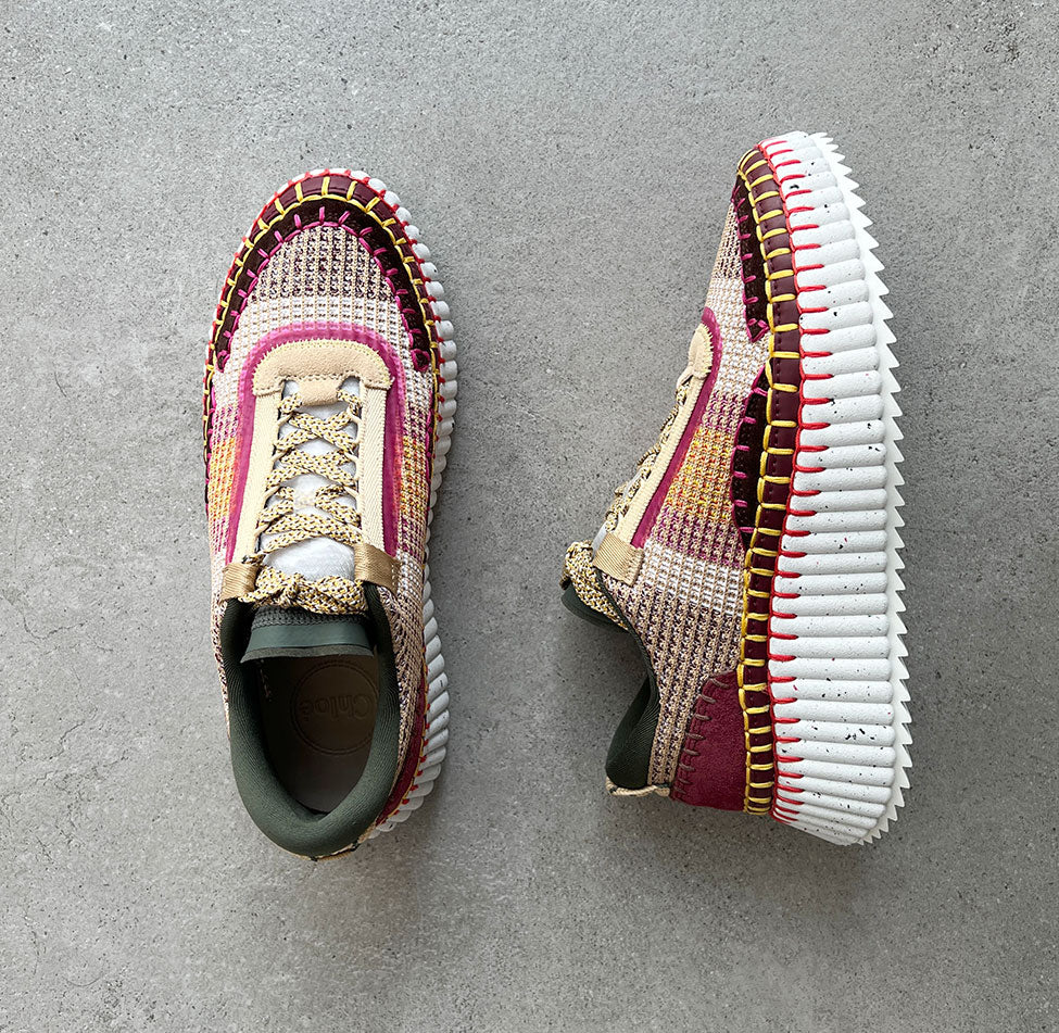 The bold, lightweight structure features a hand-stitched mesh upper, showcasing authentic Chloé craftsmanship. Set on a contrasting, ridged sole, this women's sneaker is ultra-comfortable with a cool, sporty aesthetic. The Chloé logo at the back adds a signature touch.