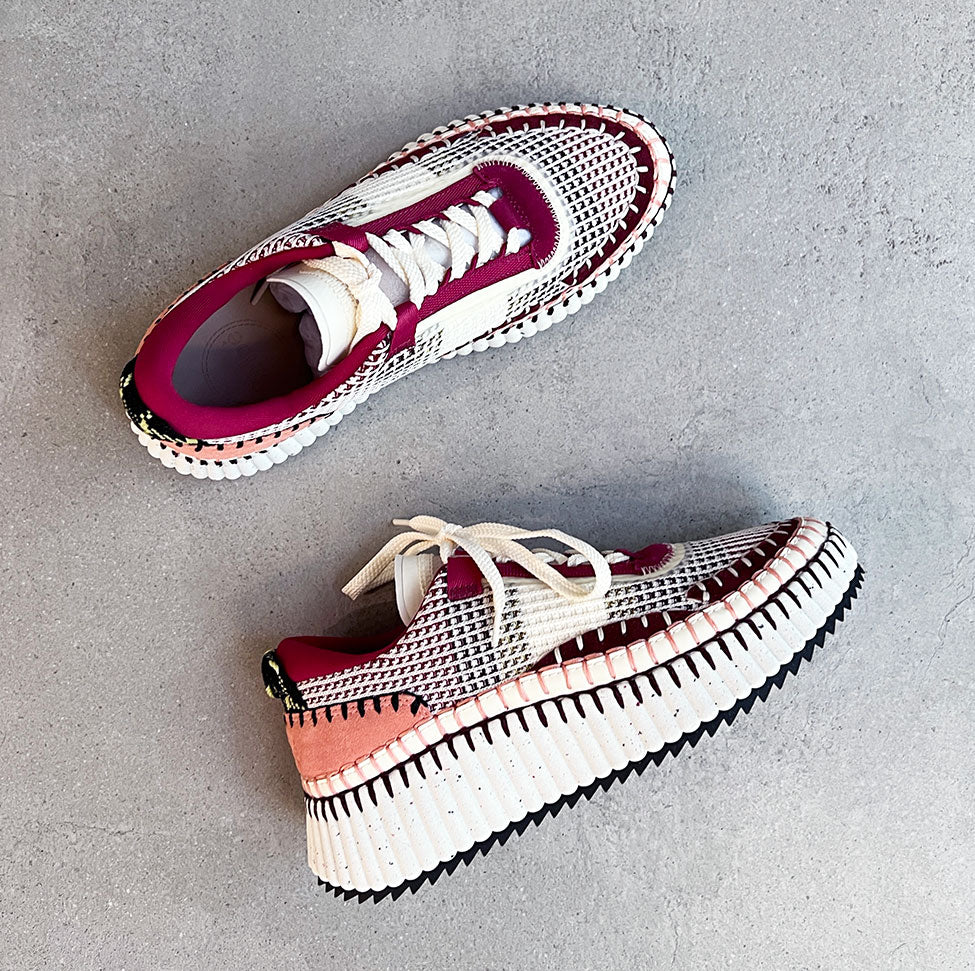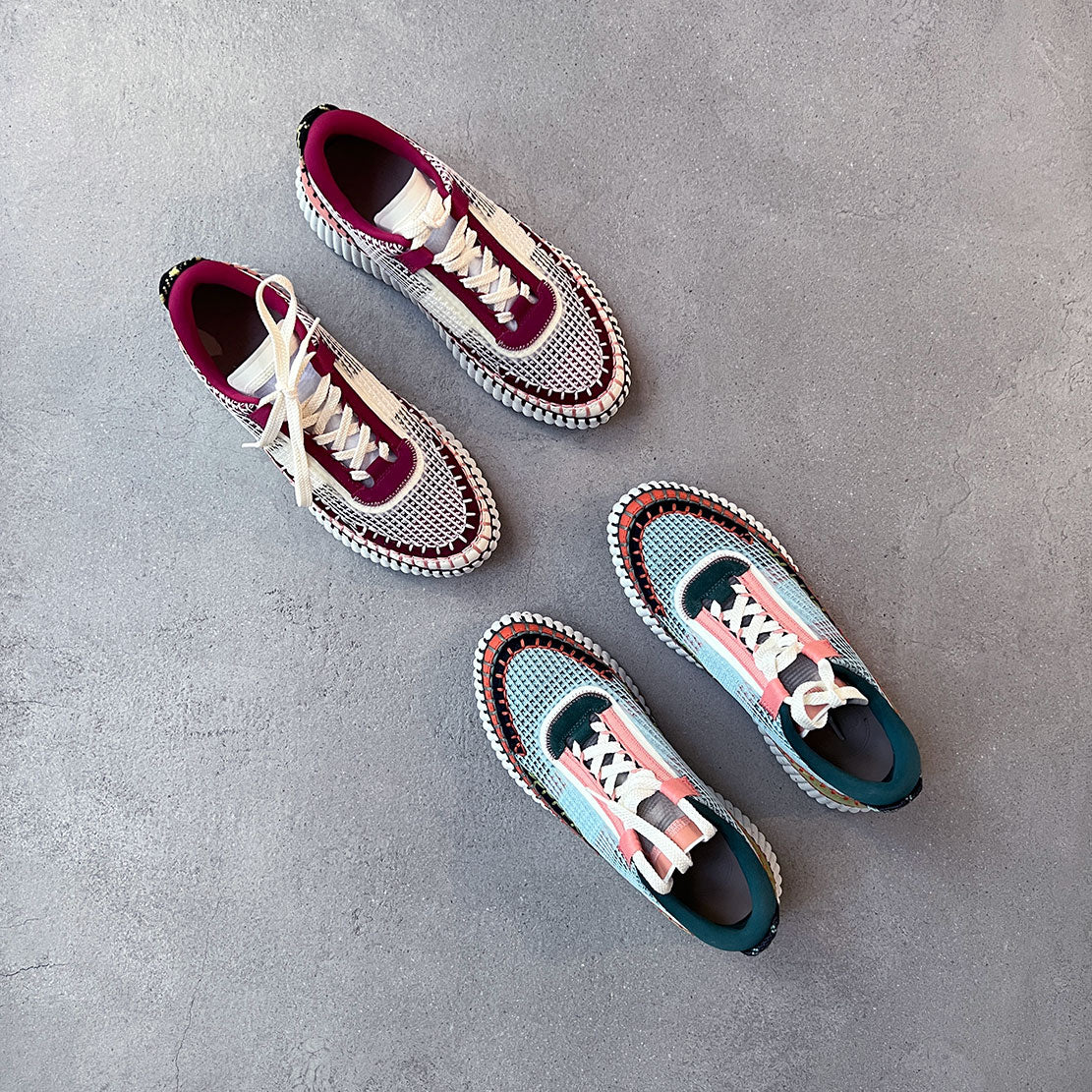 The bold, lightweight structure features a hand-stitched mesh upper, showcasing authentic Chloé craftsmanship. Set on a contrasting, ridged sole, this women's sneaker is ultra-comfortable with a cool, sporty aesthetic. The Chloé logo at the back adds a signature touch.