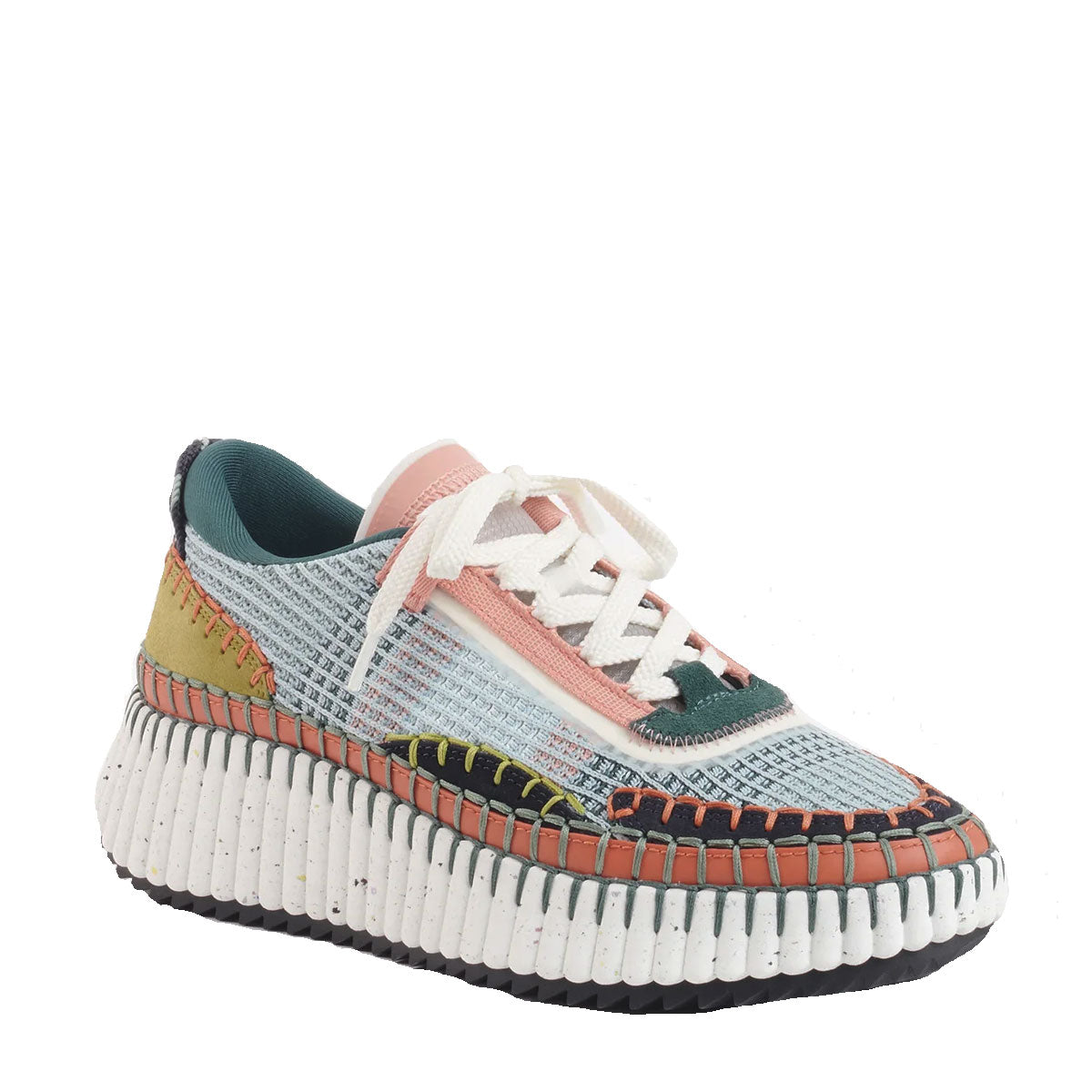 The bold, lightweight structure features a hand-stitched mesh upper, showcasing authentic Chloé craftsmanship. Set on a contrasting, ridged sole, this women's sneaker is ultra-comfortable with a cool, sporty aesthetic. The Chloé logo at the back adds a signature touch.