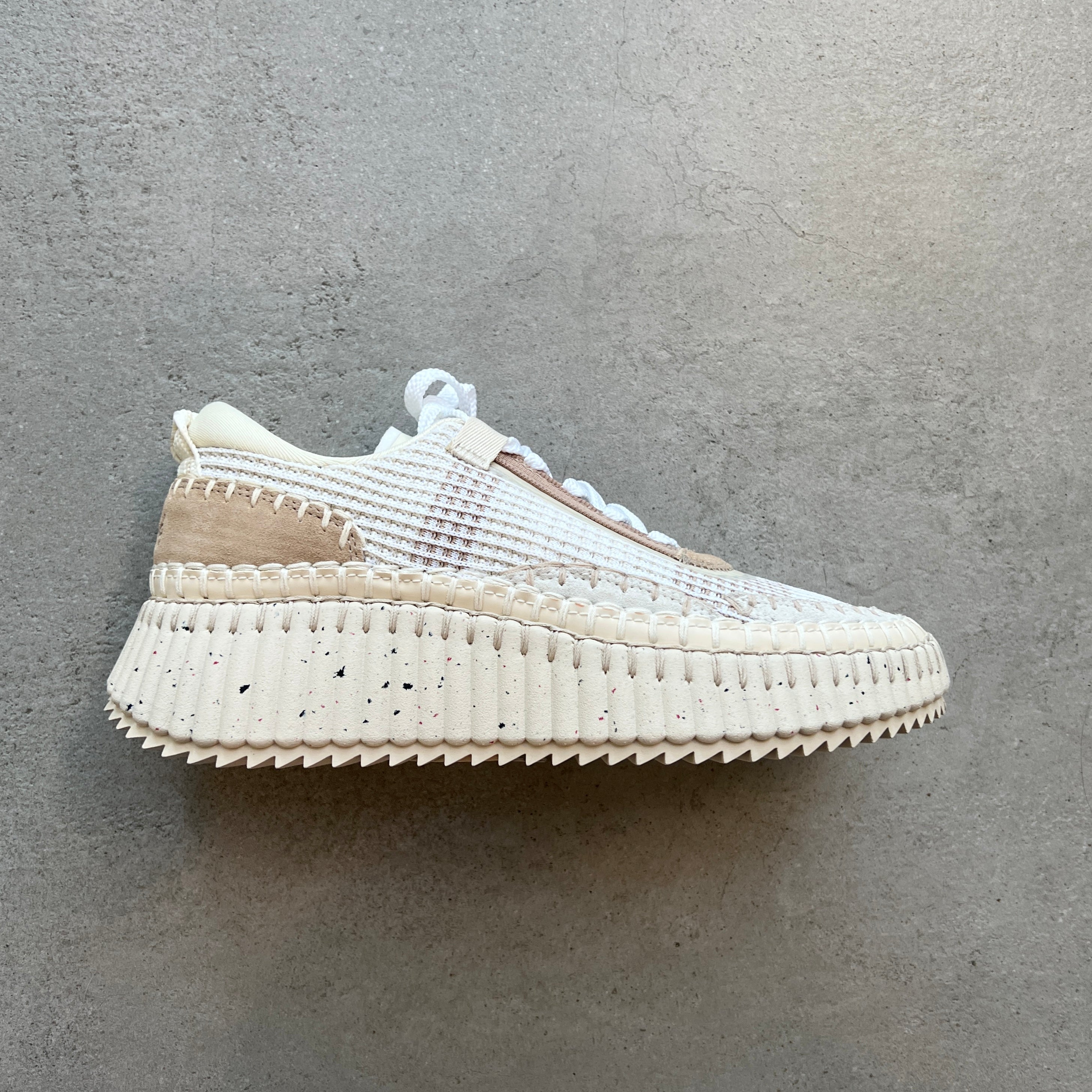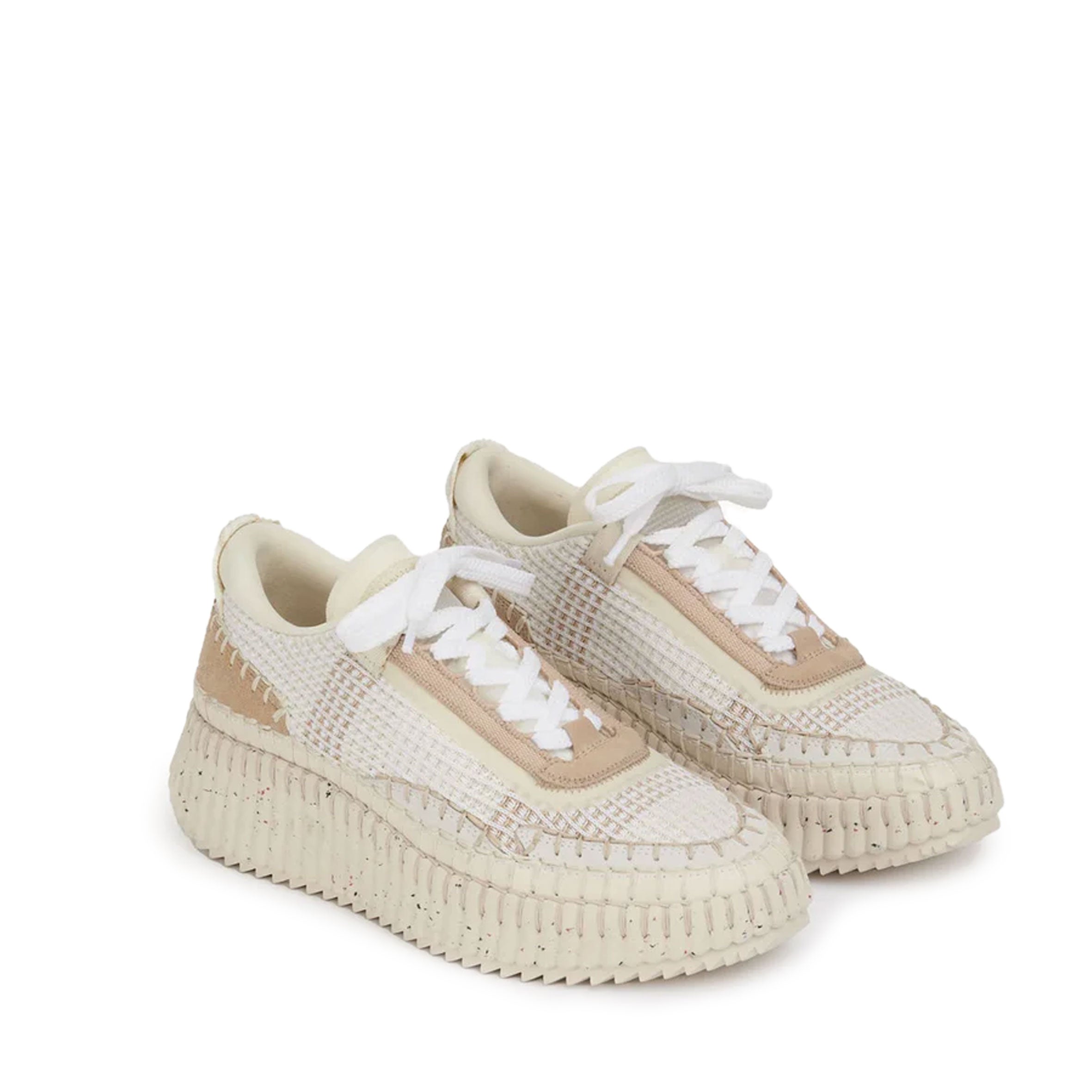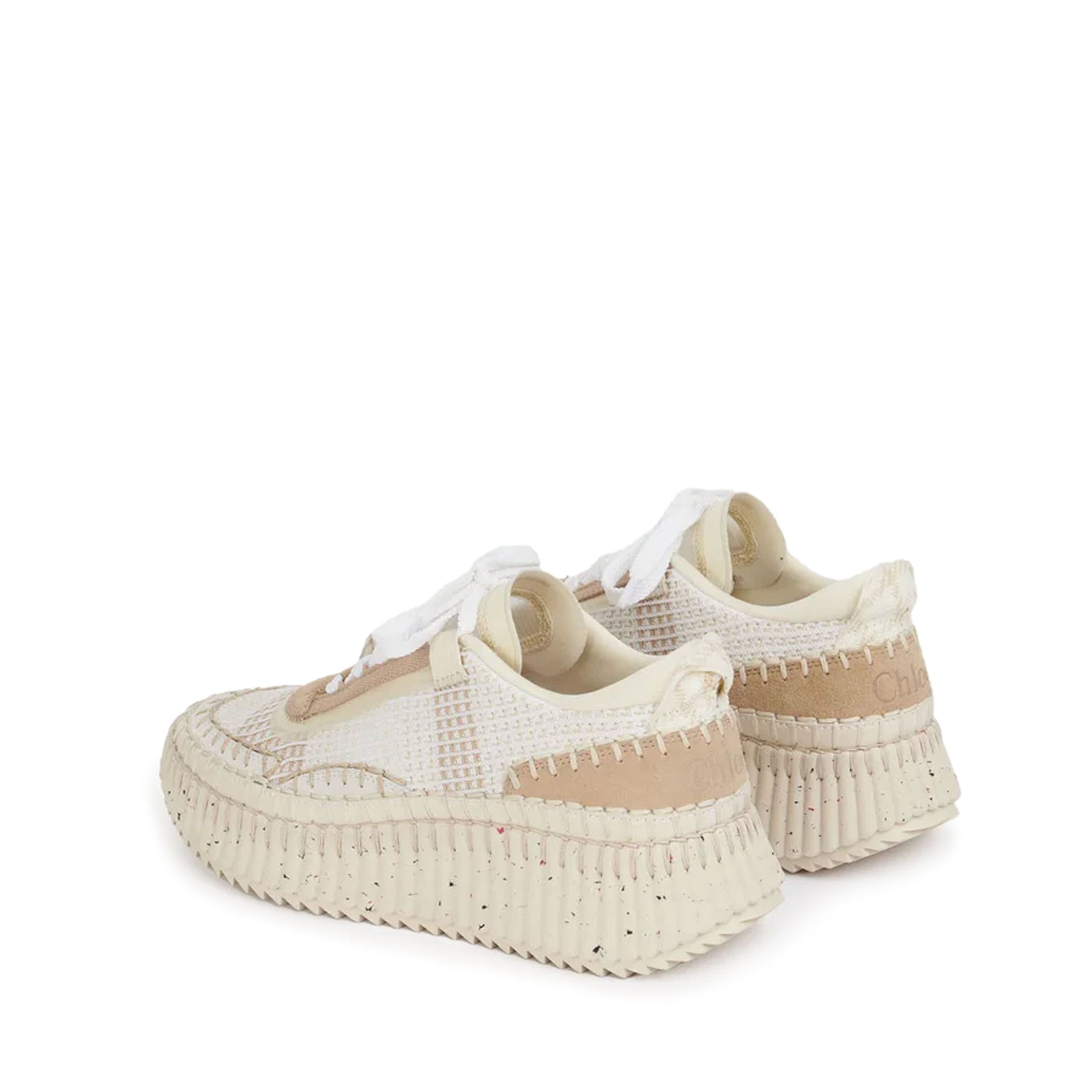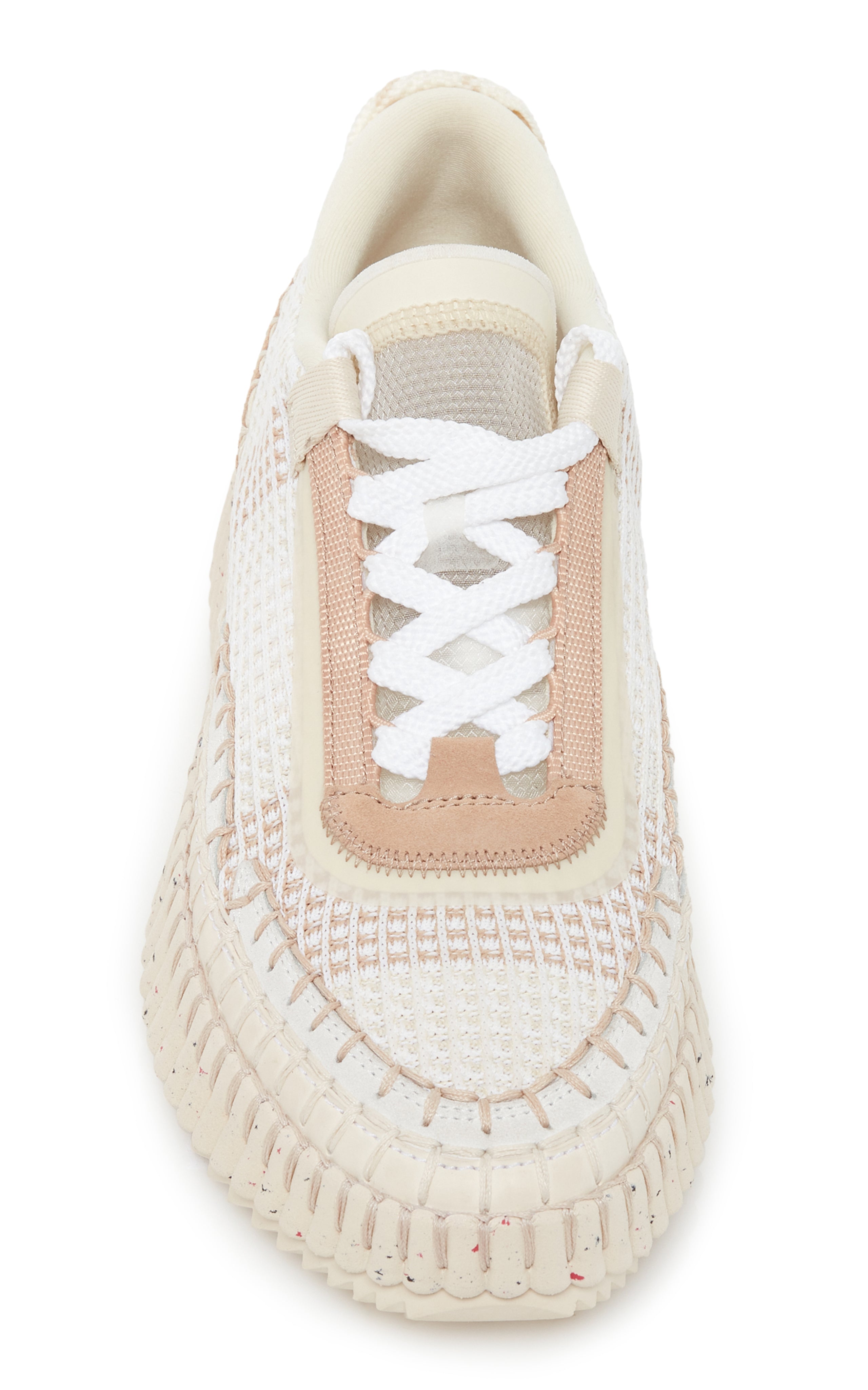 The bold, lightweight structure features a hand-stitched mesh upper, showcasing authentic Chloé craftsmanship. Set on a contrasting, ridged sole, this women's sneaker is ultra-comfortable with a cool, sporty aesthetic. The Chloé logo at the back adds a signature touch..