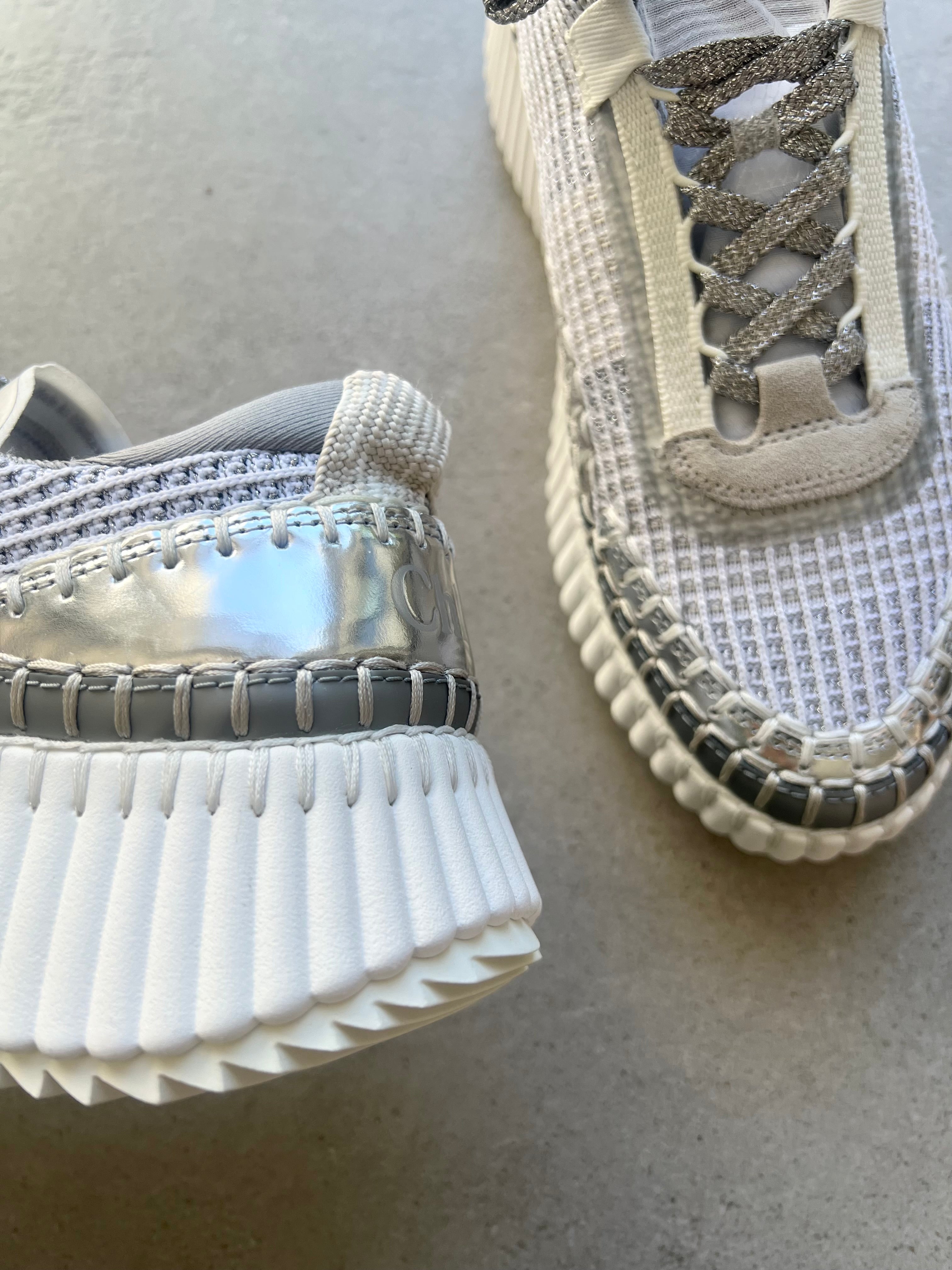 The bold, lightweight structure features a hand-stitched mesh upper, showcasing authentic Chloé craftsmanship. Set on a contrasting, ridged sole, this women's sneaker is ultra-comfortable with a cool, sporty aesthetic. The Chloé logo at the back adds a signature touch..