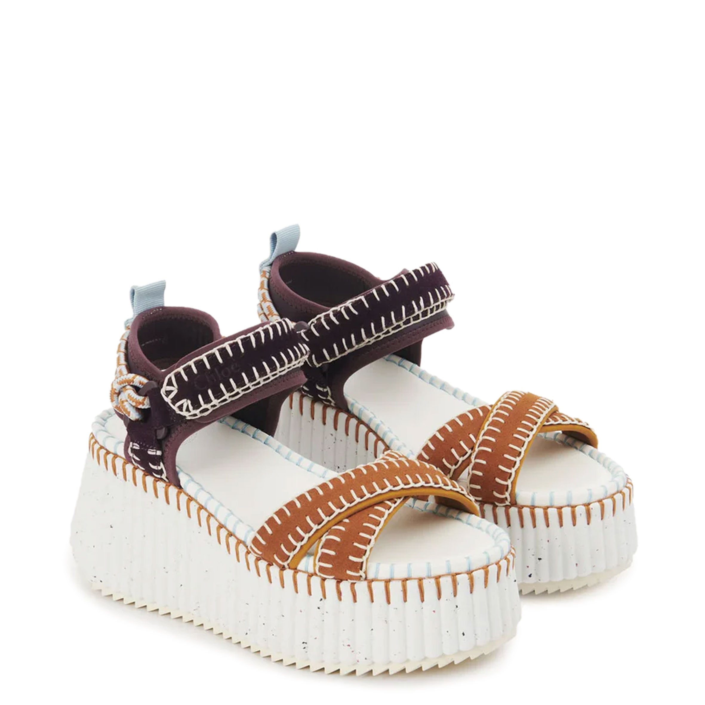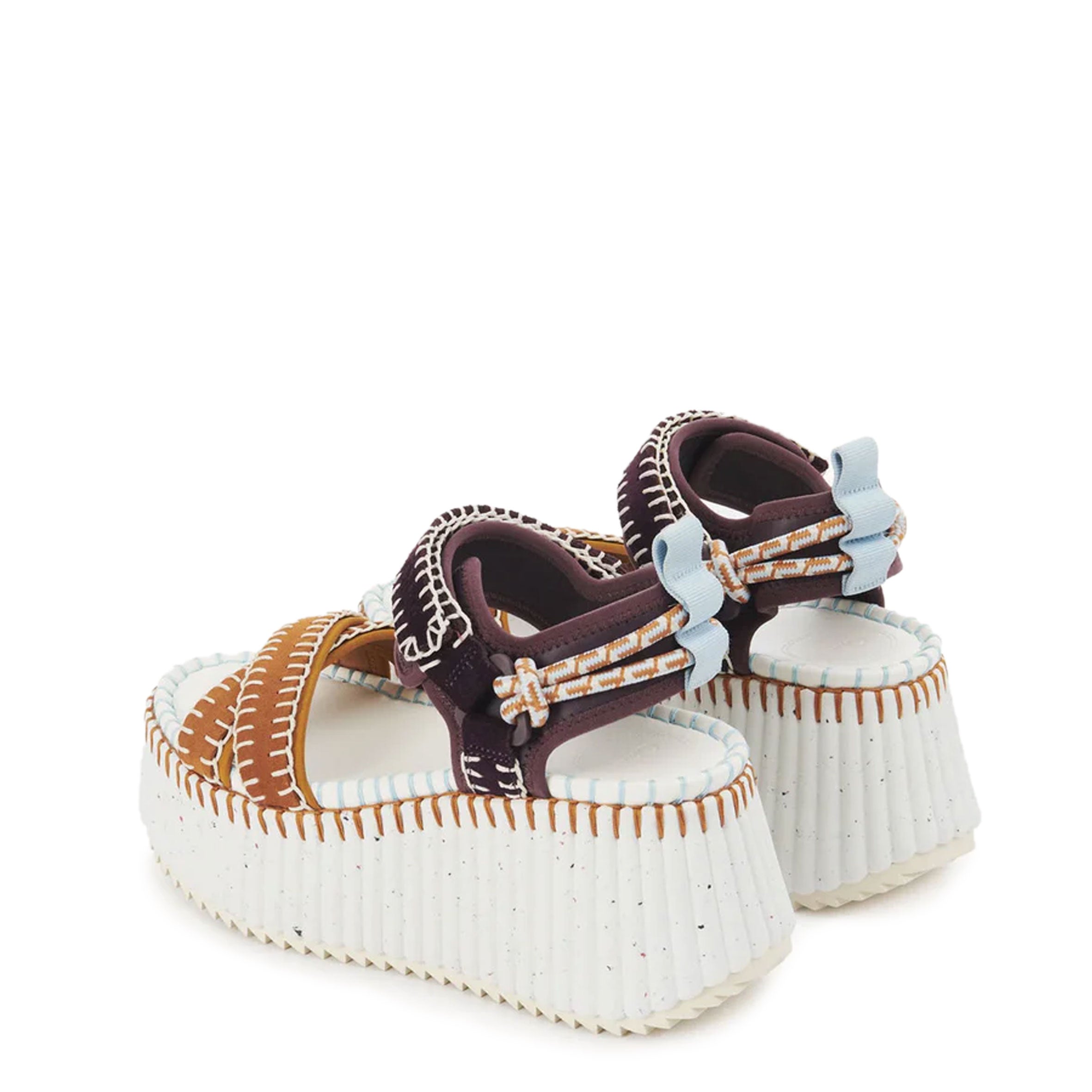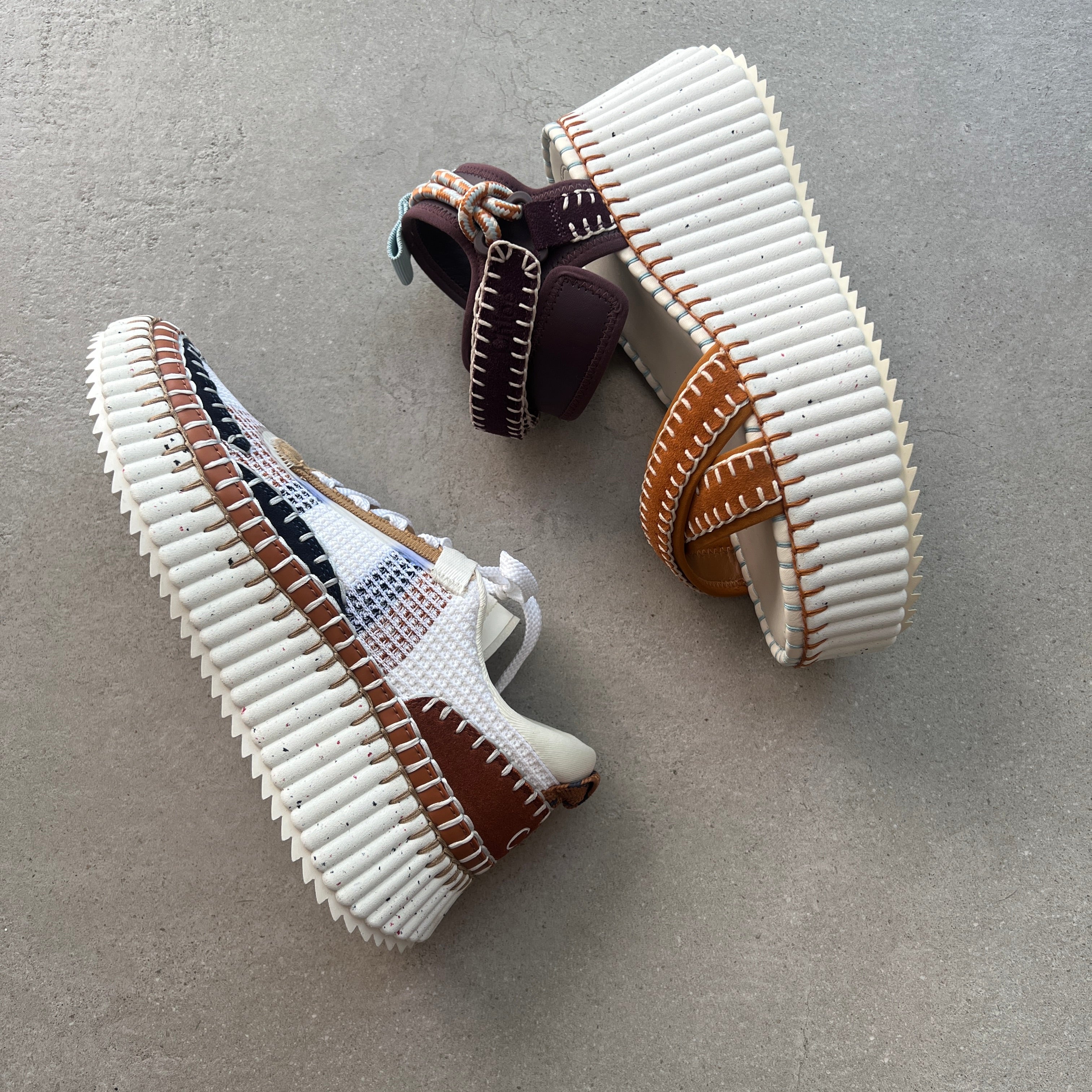 The Maison's iconic Nama line includes this lower-impact platform sandal, combining an active attitude with authentic craftsmanship and a textural interplay of materials.