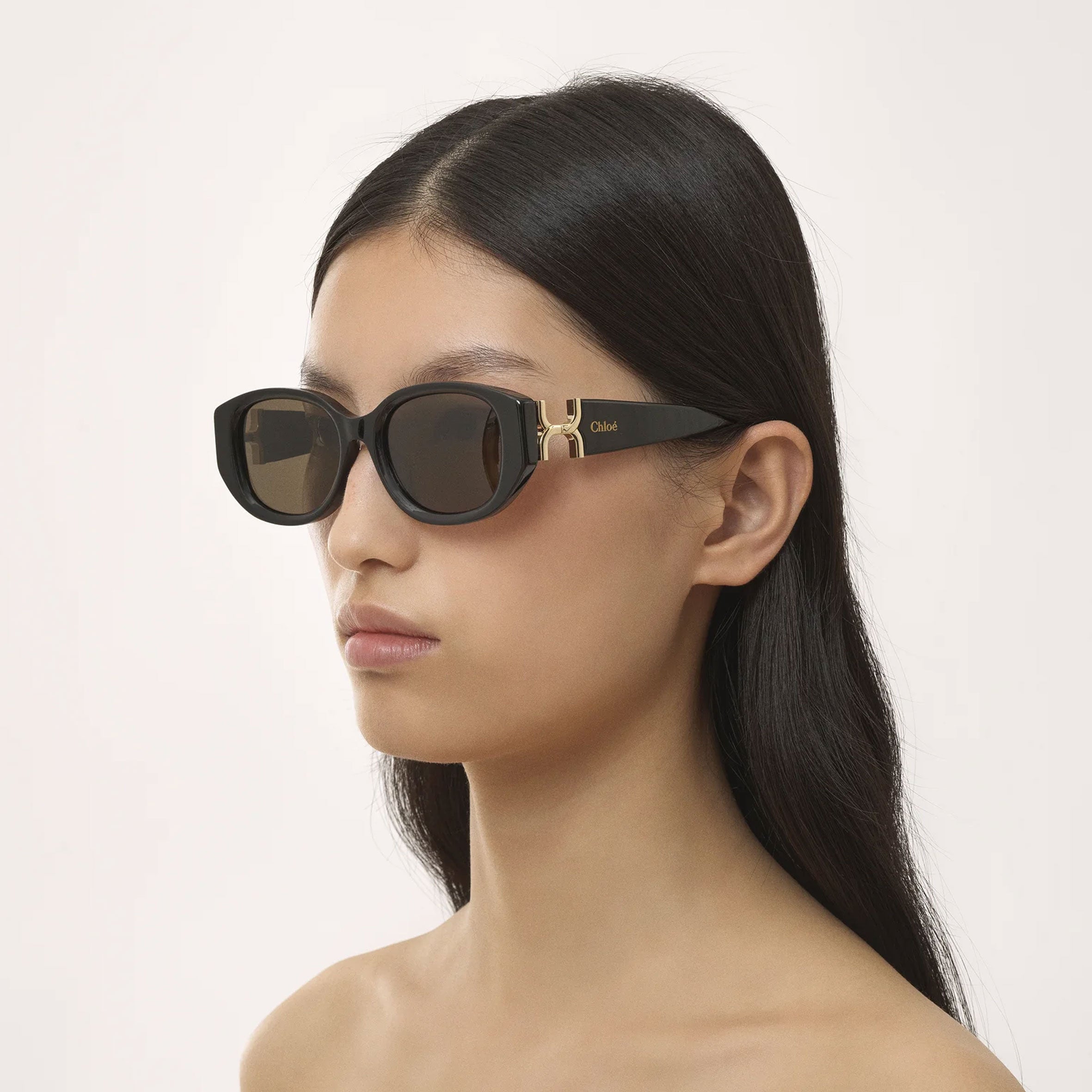 Chloe CH0237SK Marcie Oval Asian Fit Sunglasses, Black