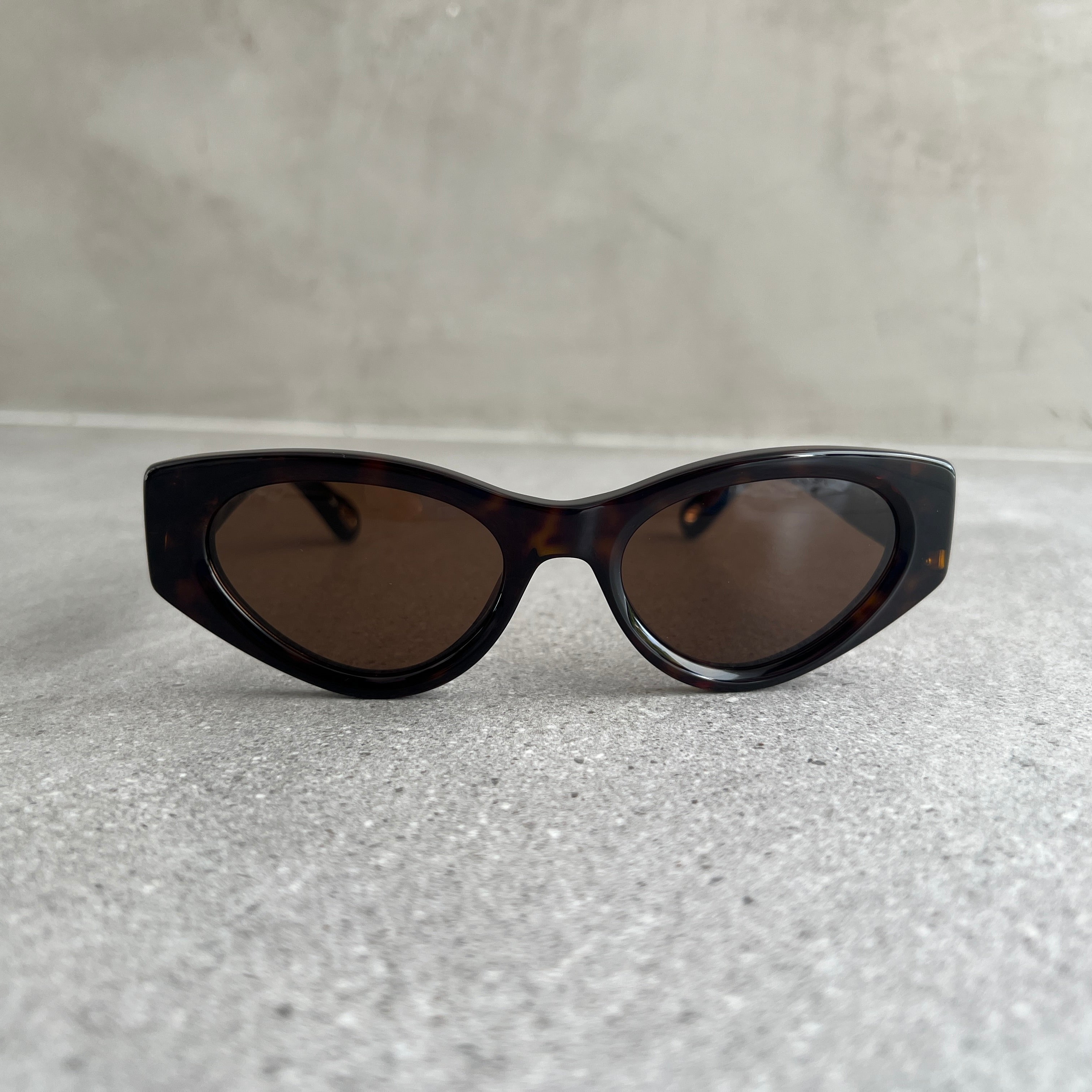 Cat Eye shape frame in acetate with Marcie gold metal logo as a functional hinge. Inspired by Chloé SS24 RTW collection.