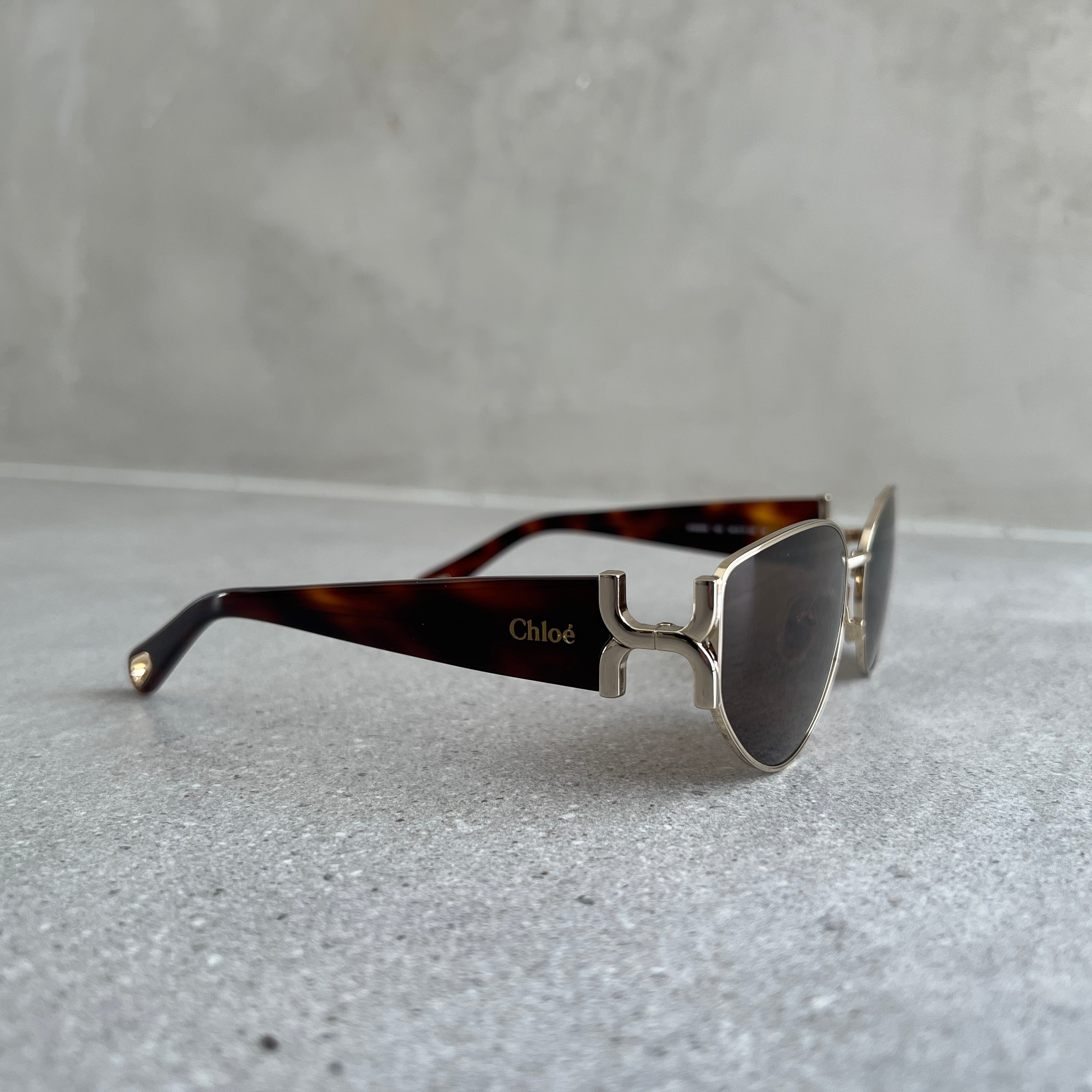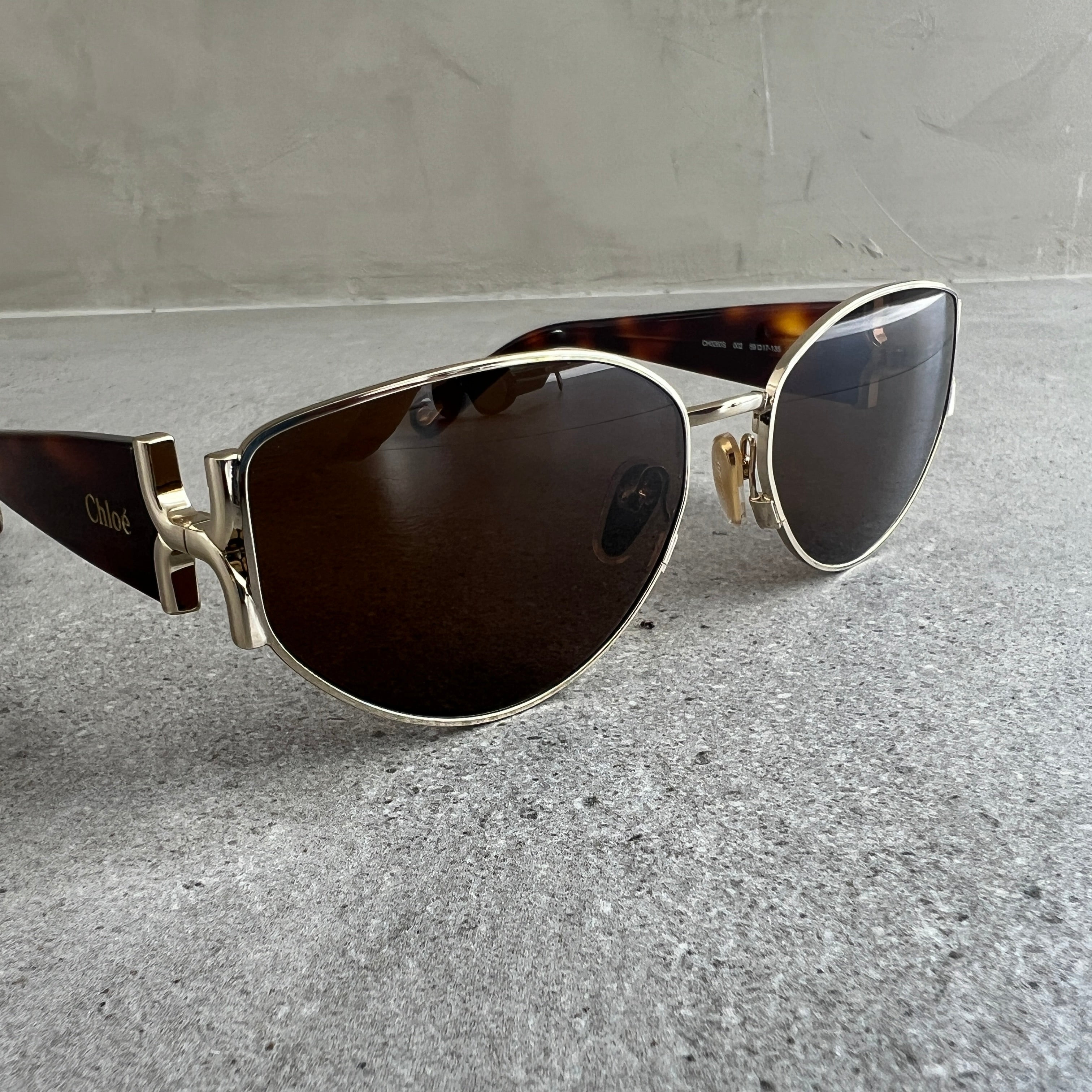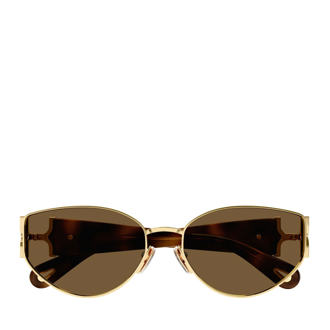 Exuding contemporary sophistication, these Marcie oval cat sunglasses are a new update to the iconic Chloé line. The sleek metal frame a bold statement, elevated with Marcie's signature gold metal piece at the hinges.