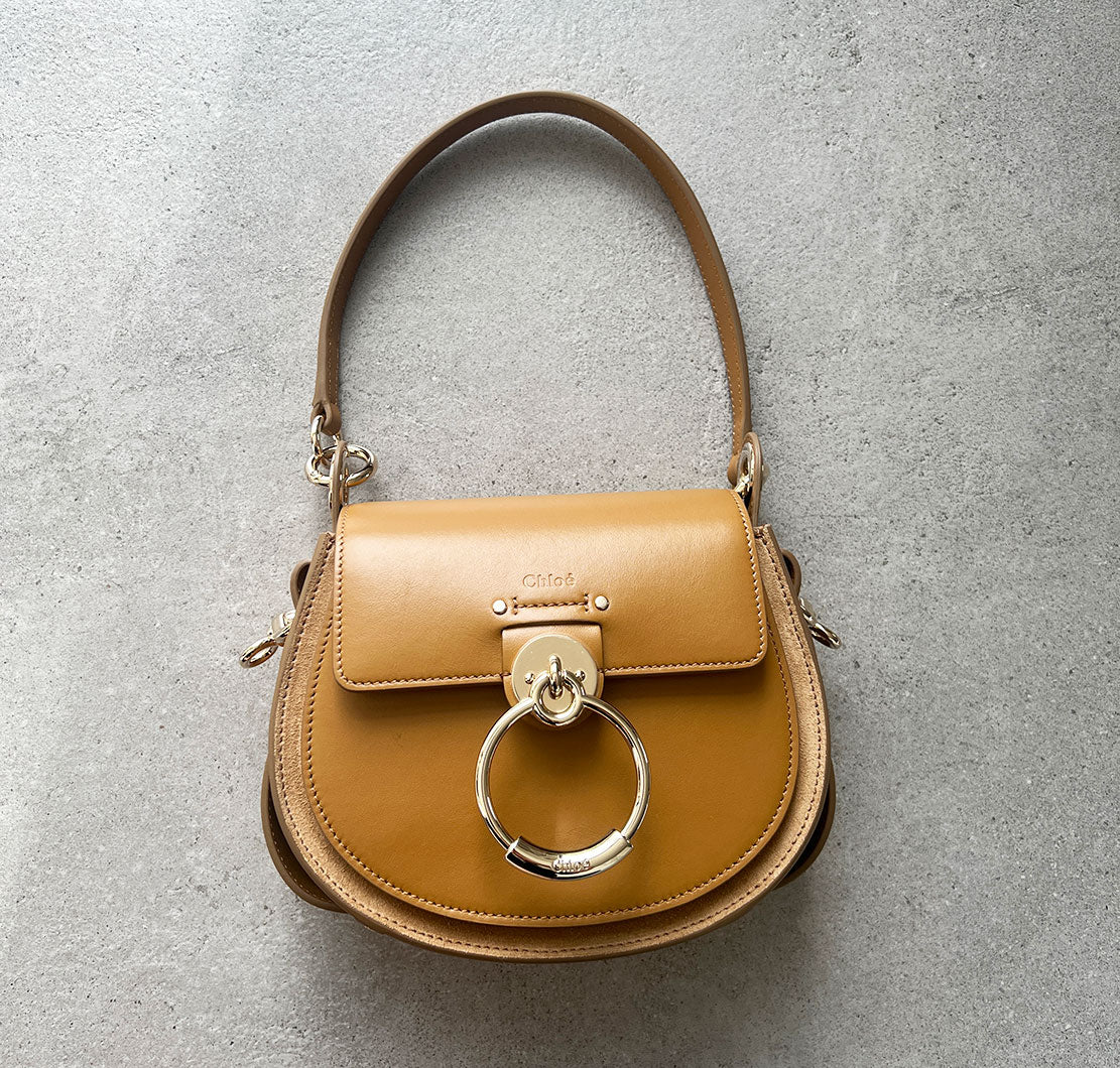 The sophisticated round silhouette of the Tess is highlighted by the bold leather band contouring the bag's base and features Chloé's signature "O" on the front of the bag. With a roomy interior the Tess is an ideal day-to-day bag with double straps, one short and one long allowing the flexibility for it to be carried by hand, over the shoulder or cross body.