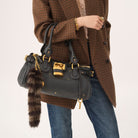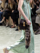 Treasure Tails charm combining a medium-sized bicolour shearling tail with a double-sided "C" medal charm and chain in gold brass.
