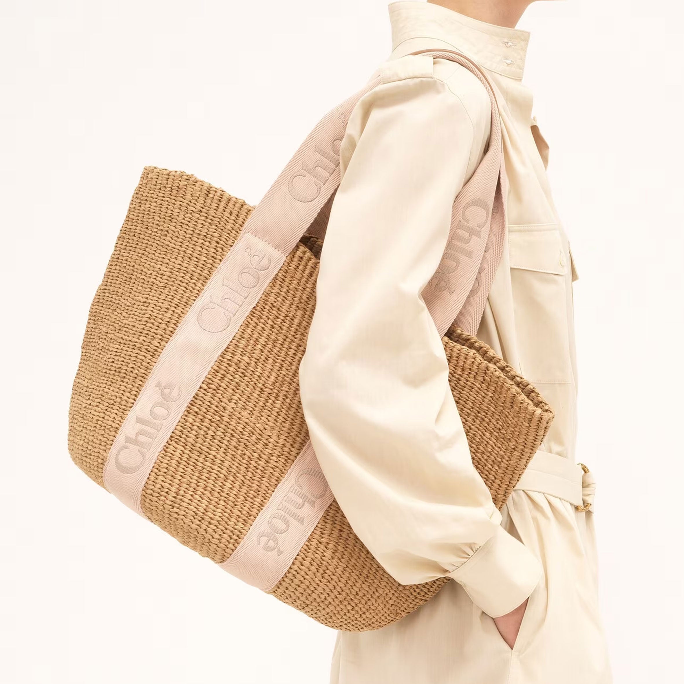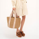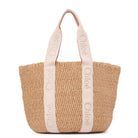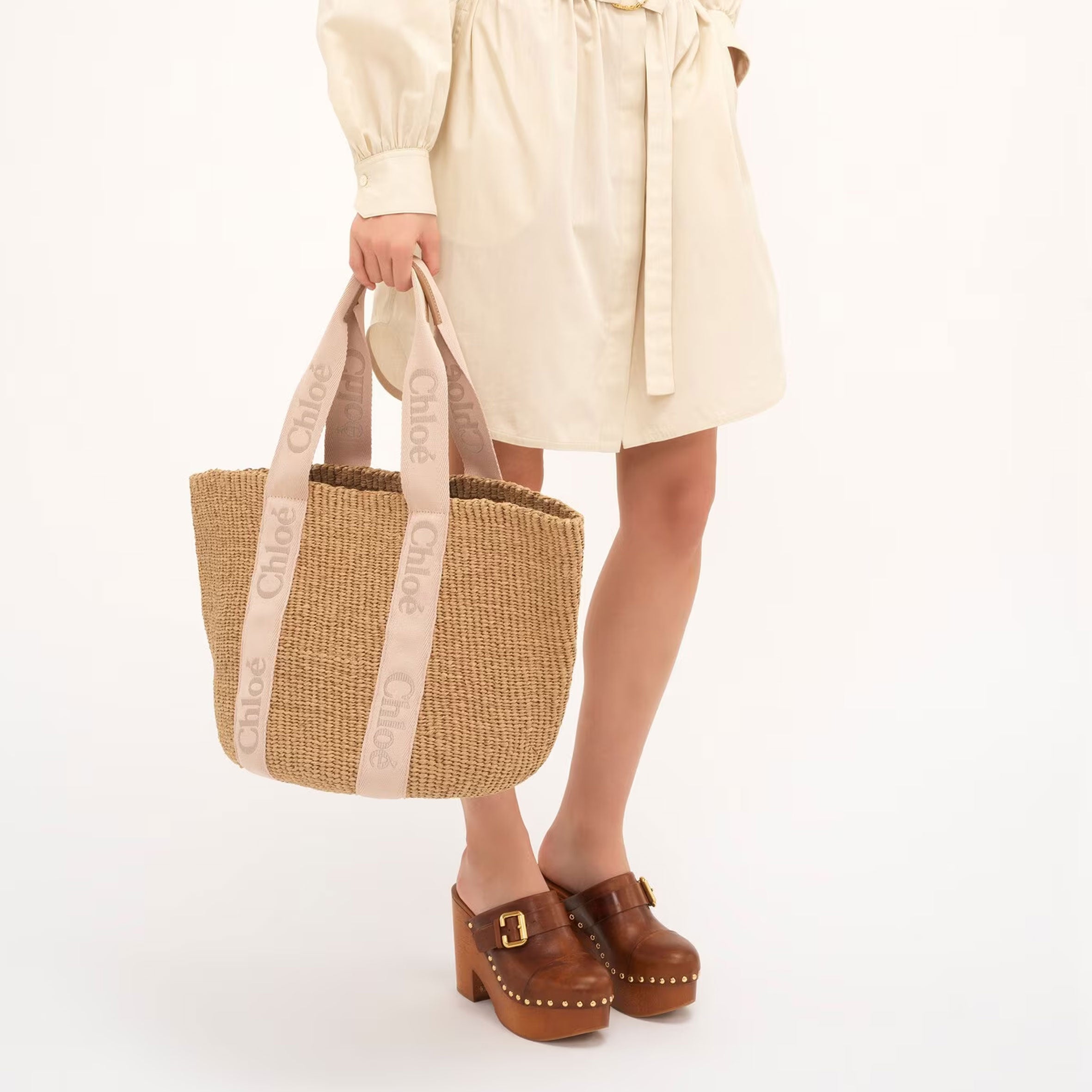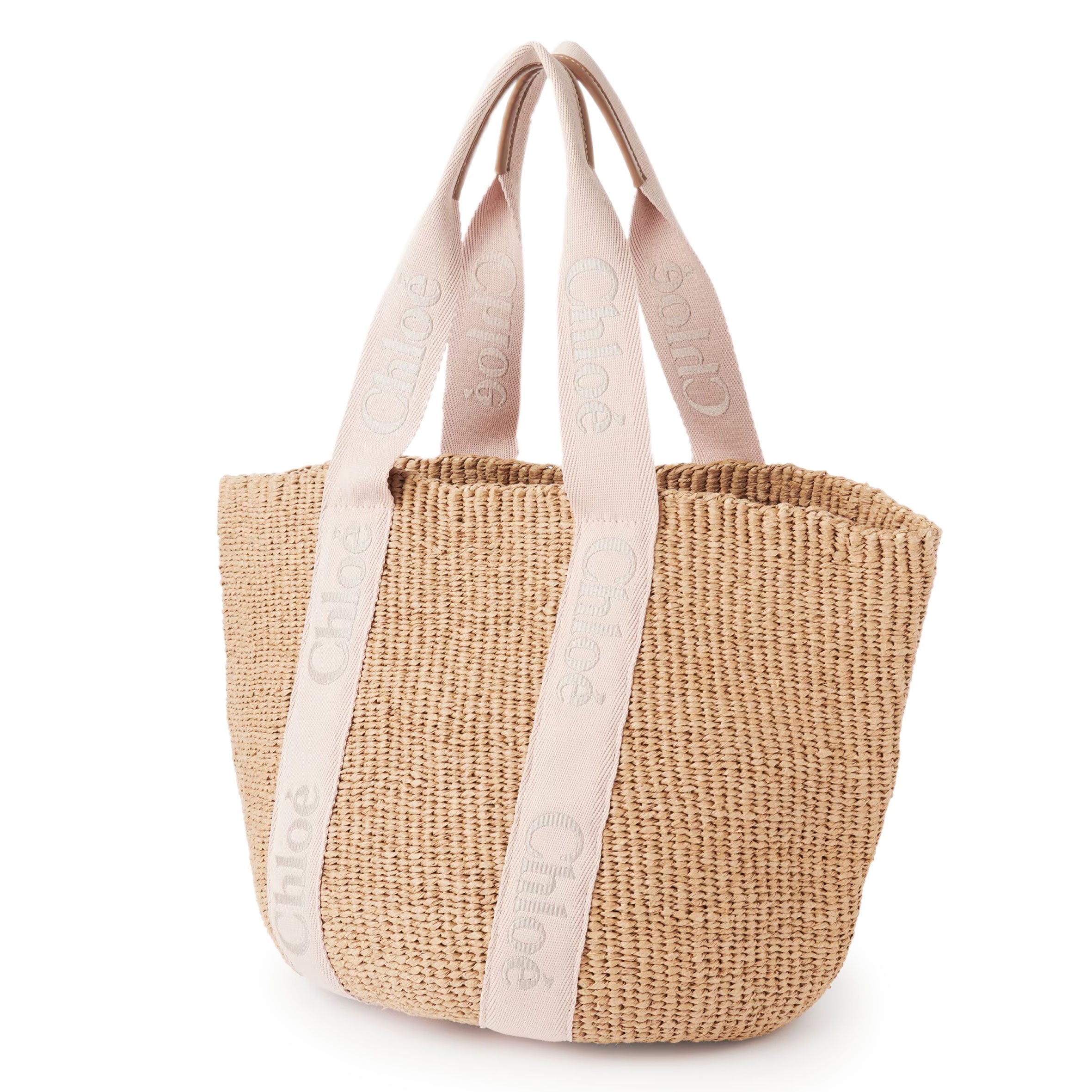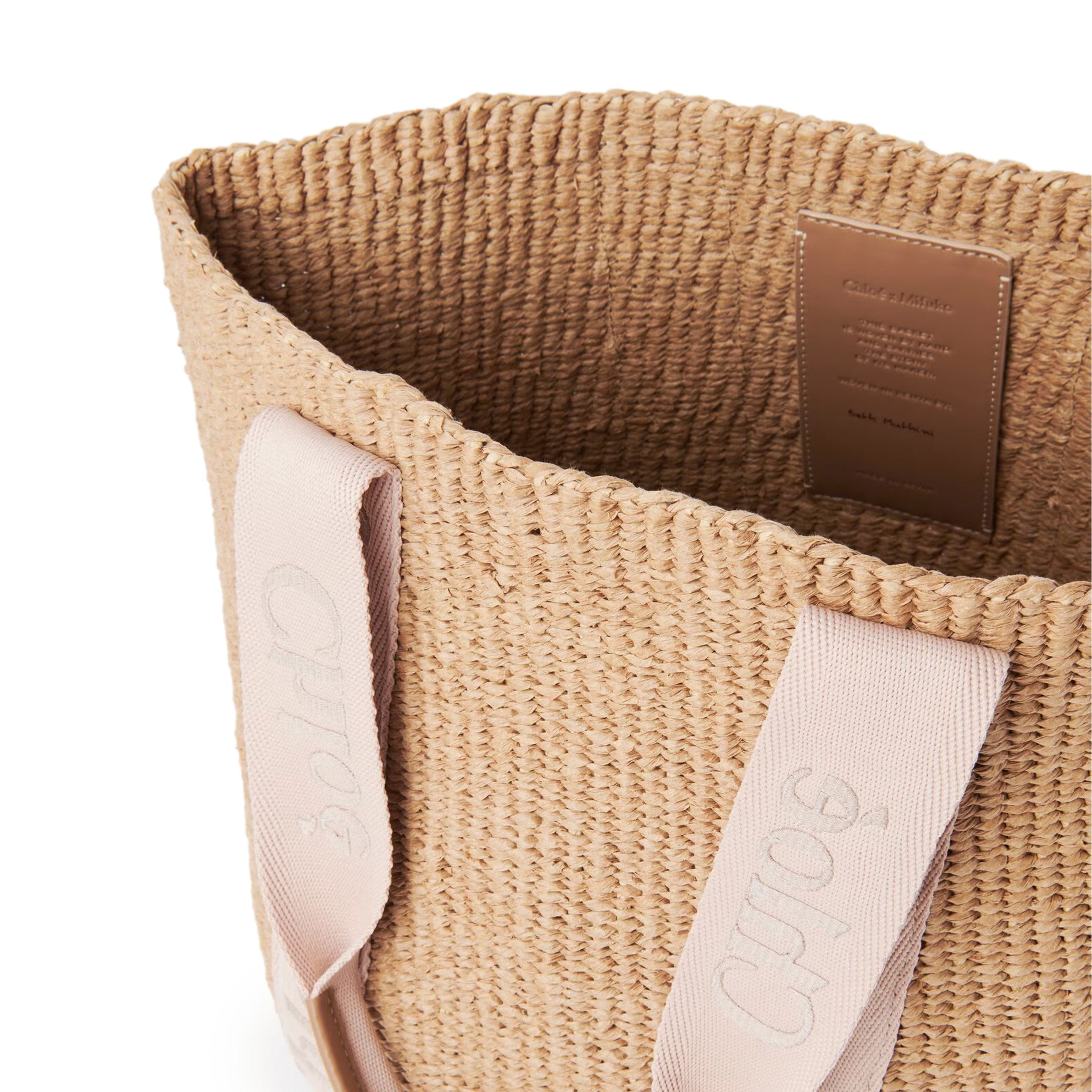 Large basket in natural fibres, calfskin & webbing with Chloé logo embroidery