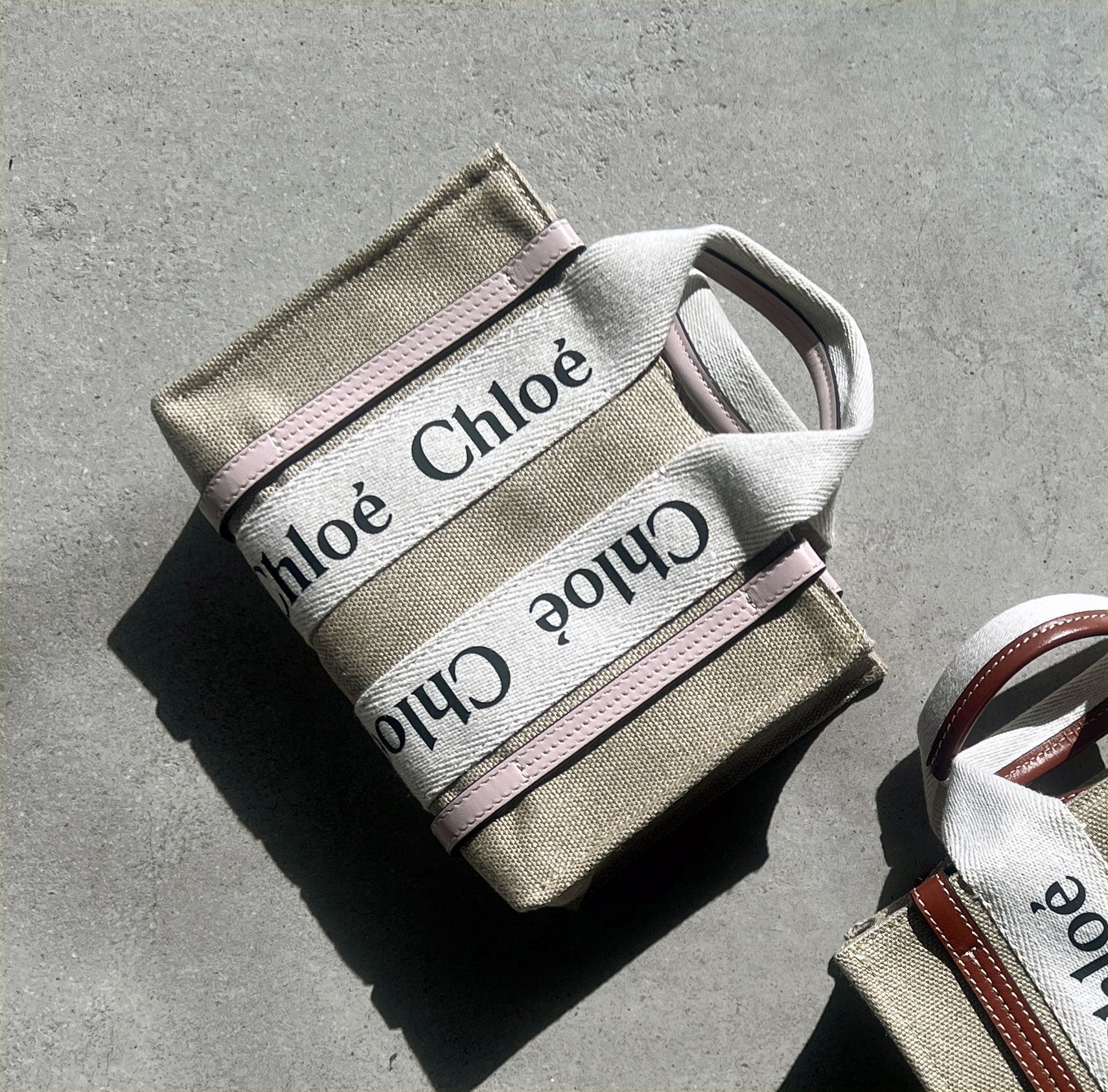 The bag's sharp, modern lines are emphasized by the contrasting vertical leather strips and the signature Chloé logo ribbon carried over from the Maison's Woody mule. Carry this tote bag in hand or using the long shoulder strap.