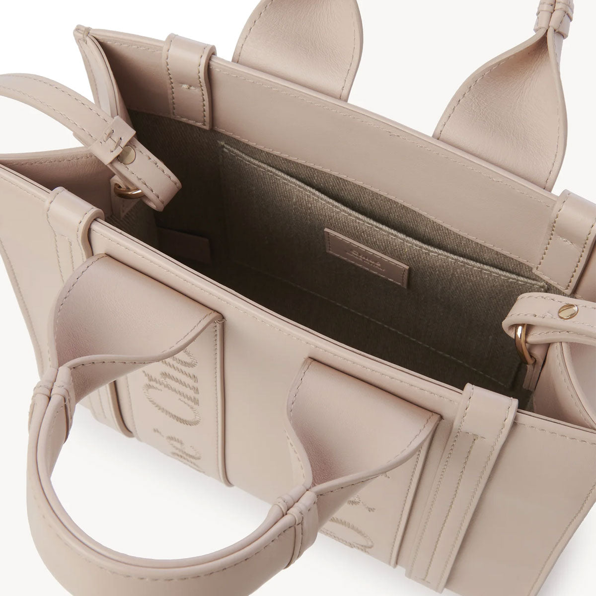 Crafted from smooth calfskin for a natural look with a unique, luxurious feel, this small Woody tote bag is a soft day-to-evening bag with a long, removable strap in addition to the top handles. The roomy inside compartment includes a practical flat pocket in leather for an elevated touch. Linen lining matches a refined finish with a lower environmental impact.