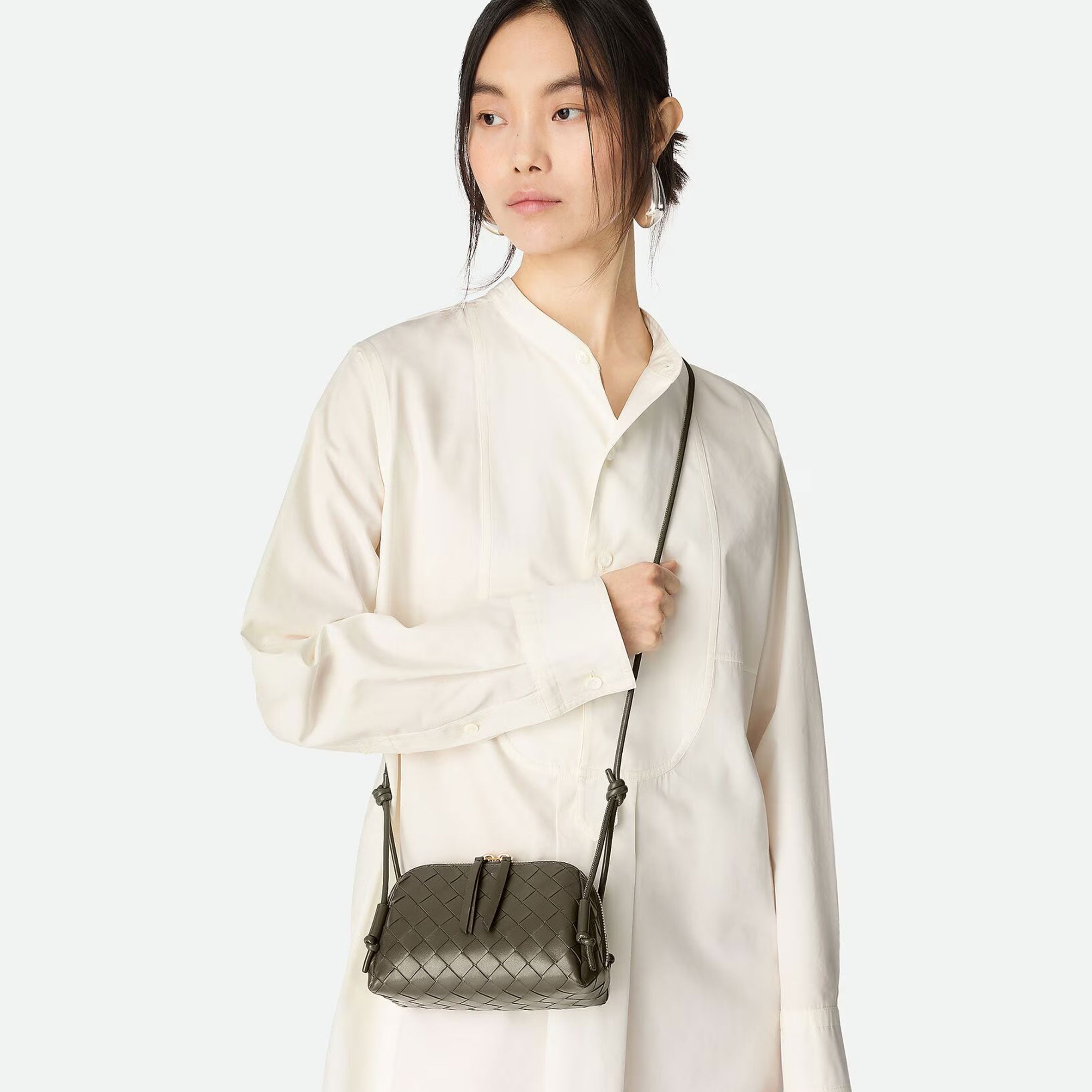 Bottega Veneta's Concert bag is woven in the designers distinguishable intrecciato weave. This crossbody bag has a soft edge triangular shape crafted from lamb leather and features double knotted side details on the adjustable tubular strap and zip top closure.