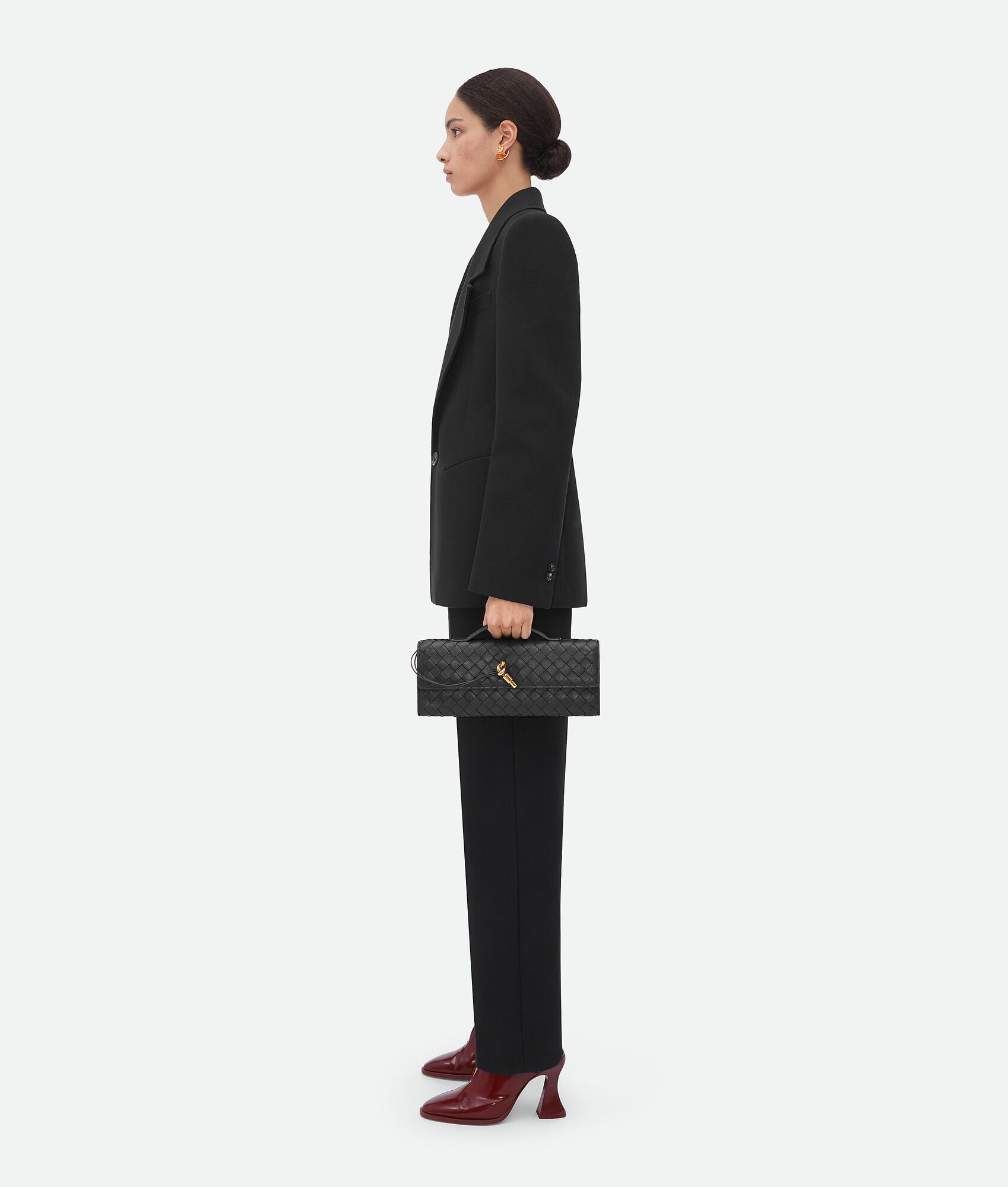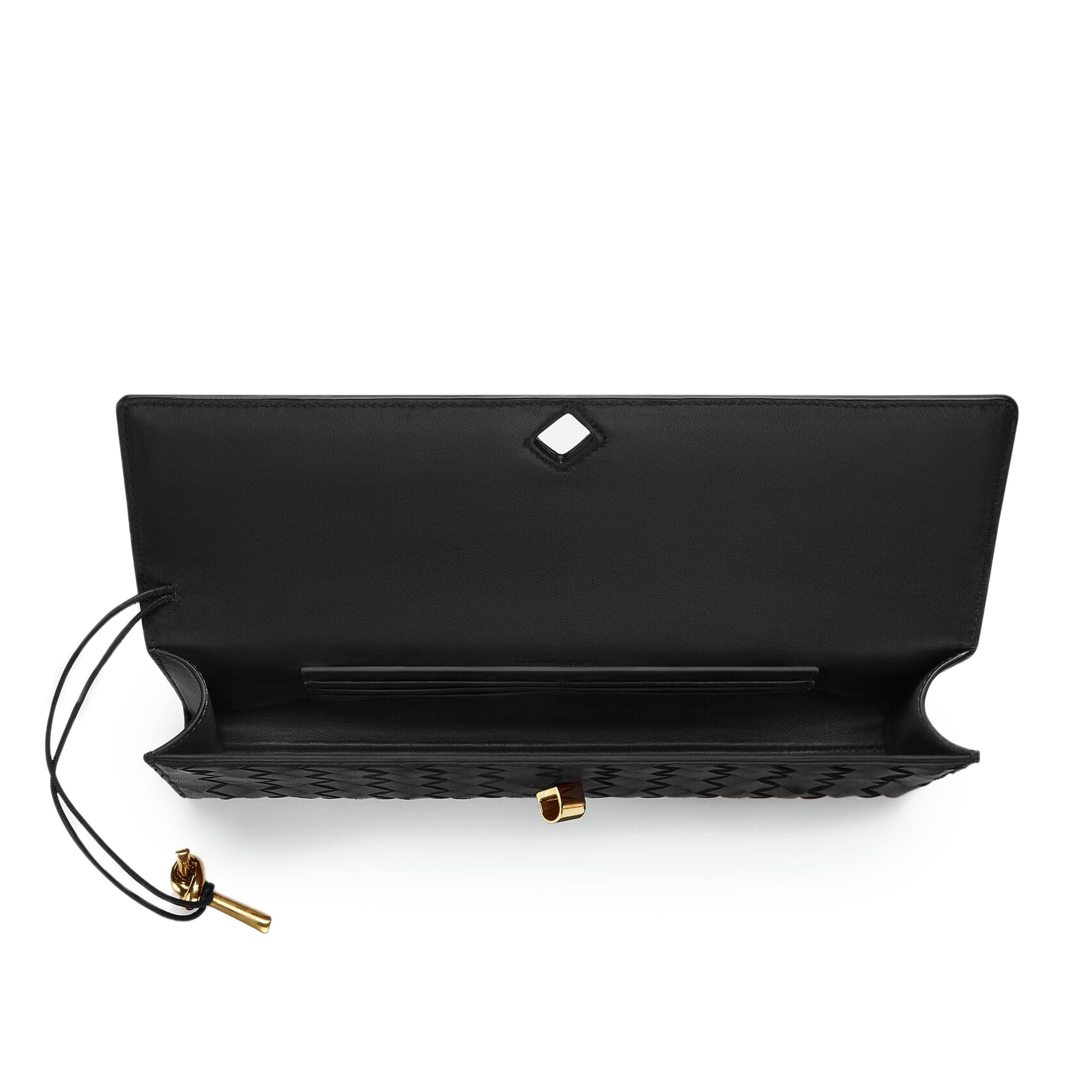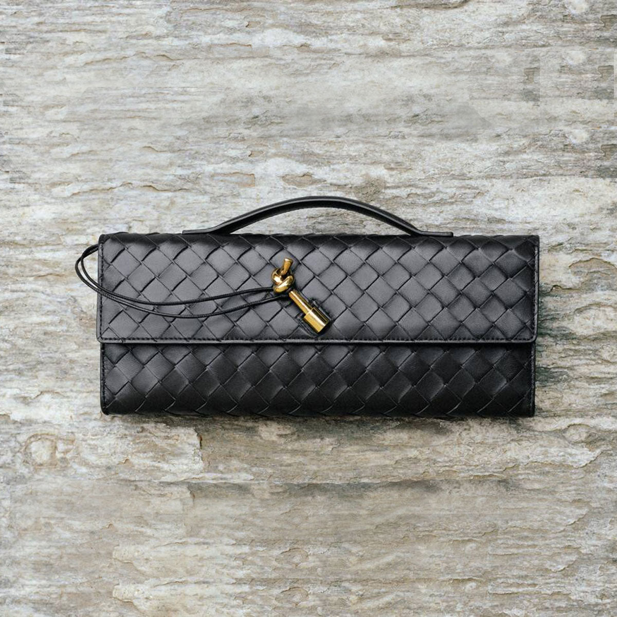 Clutch with handle realised with Intrecciato craftsmanship in soft lambskin leather