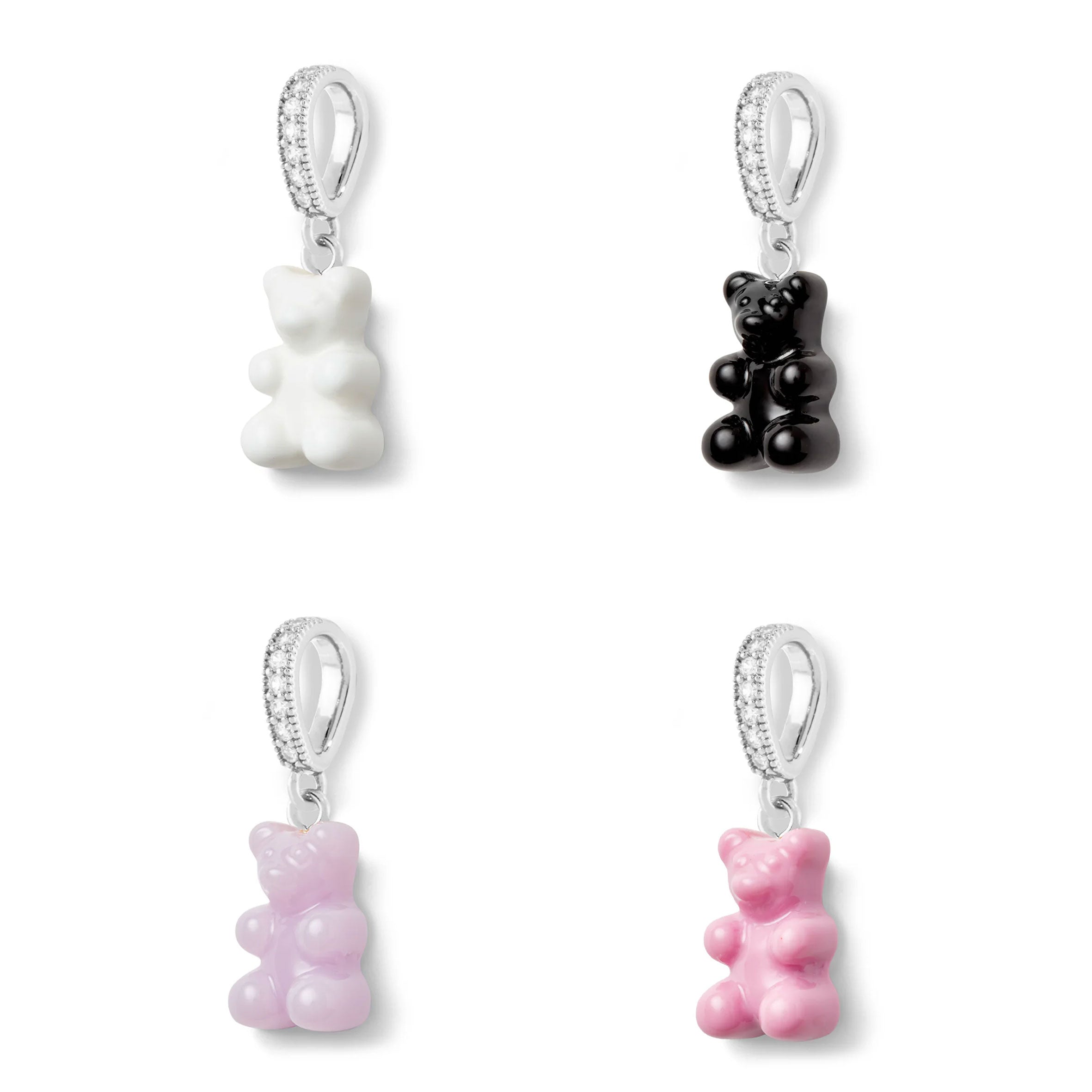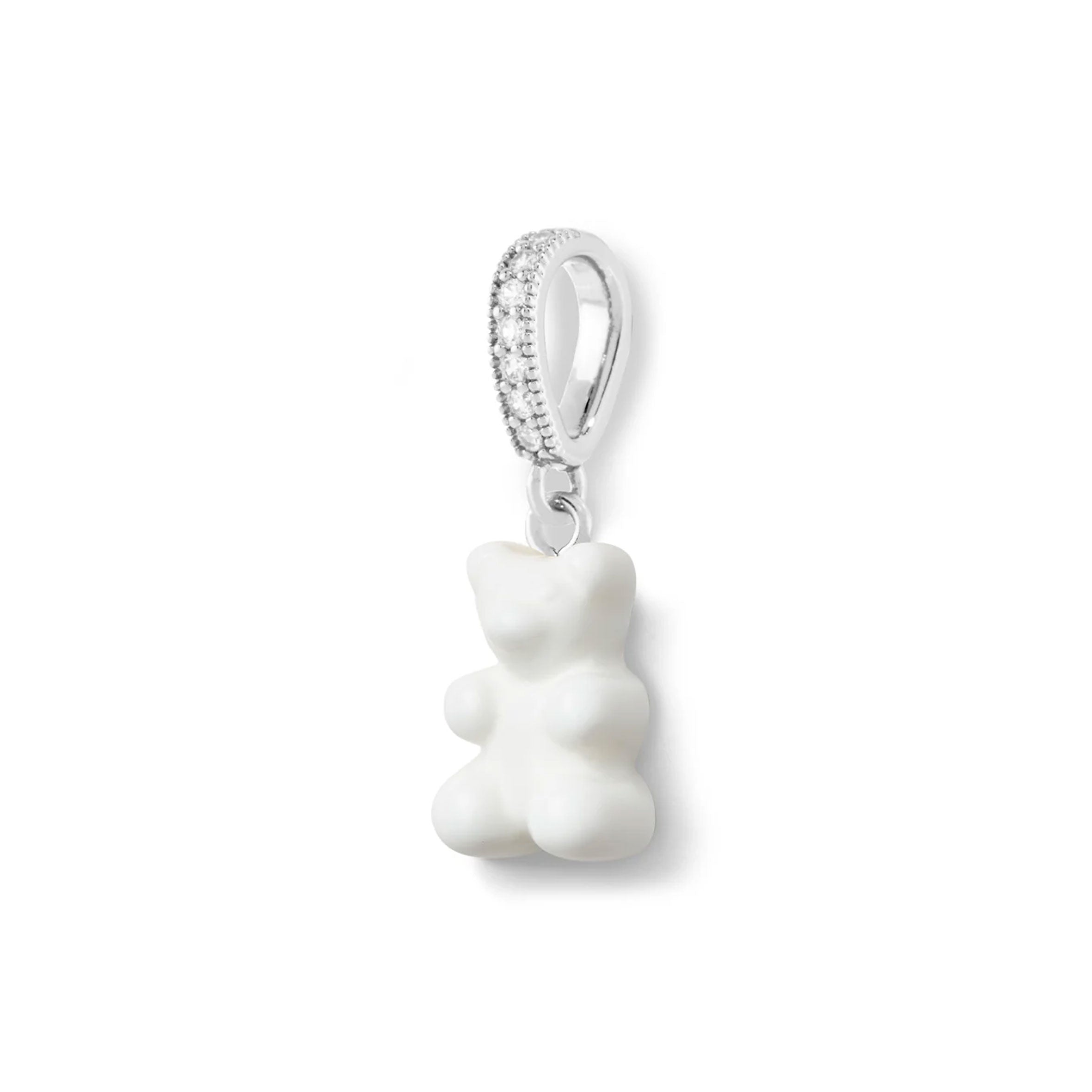Signature Nostalgia bear in glossy resin finish with silver plated pave connector