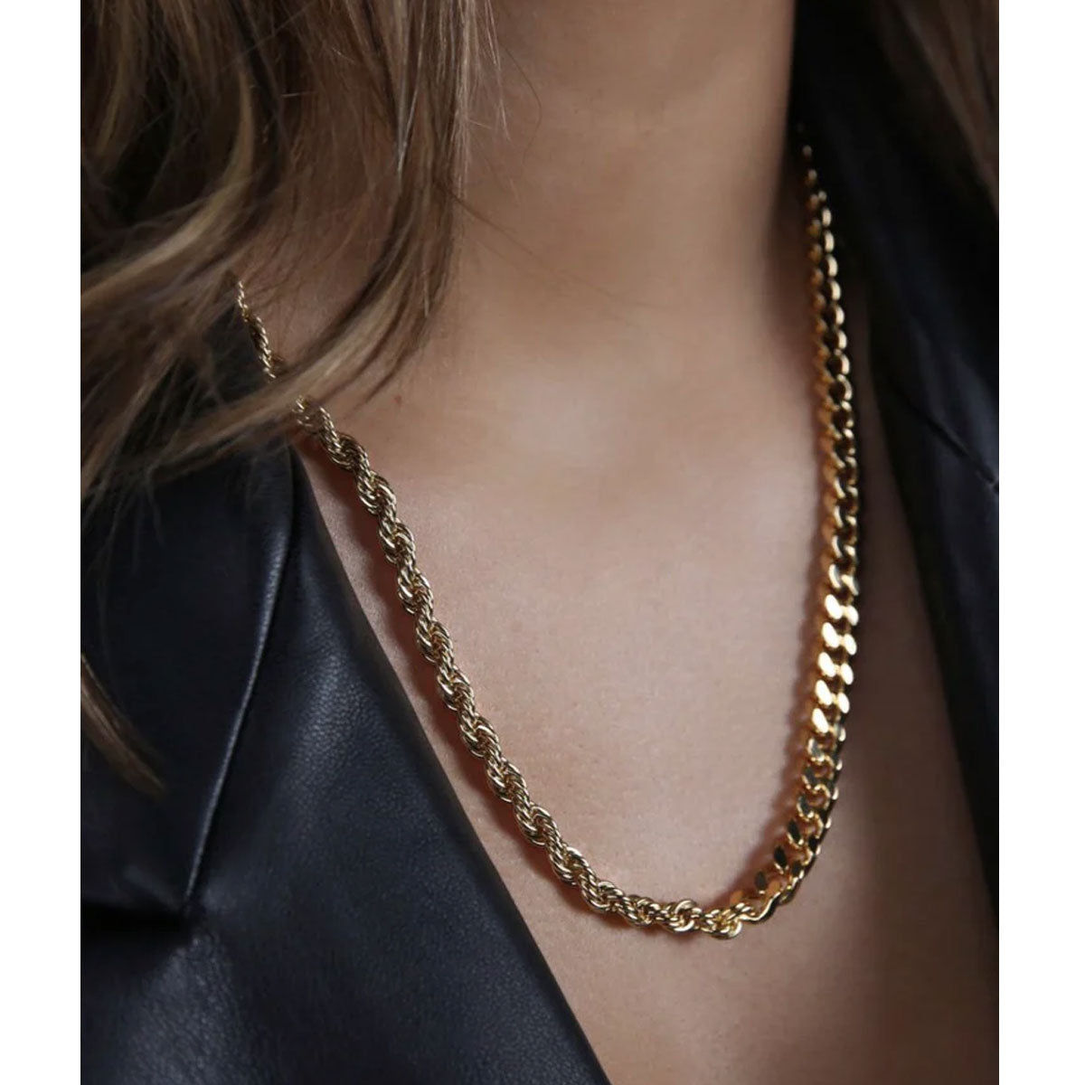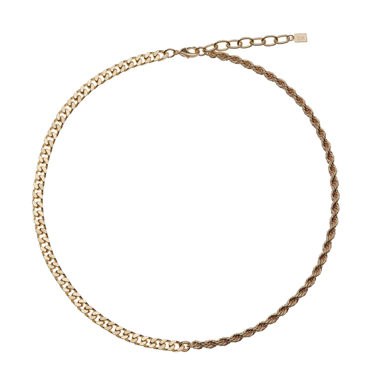 Mixed cable-link chain and rope chain with adjustable fit and clasp fastening