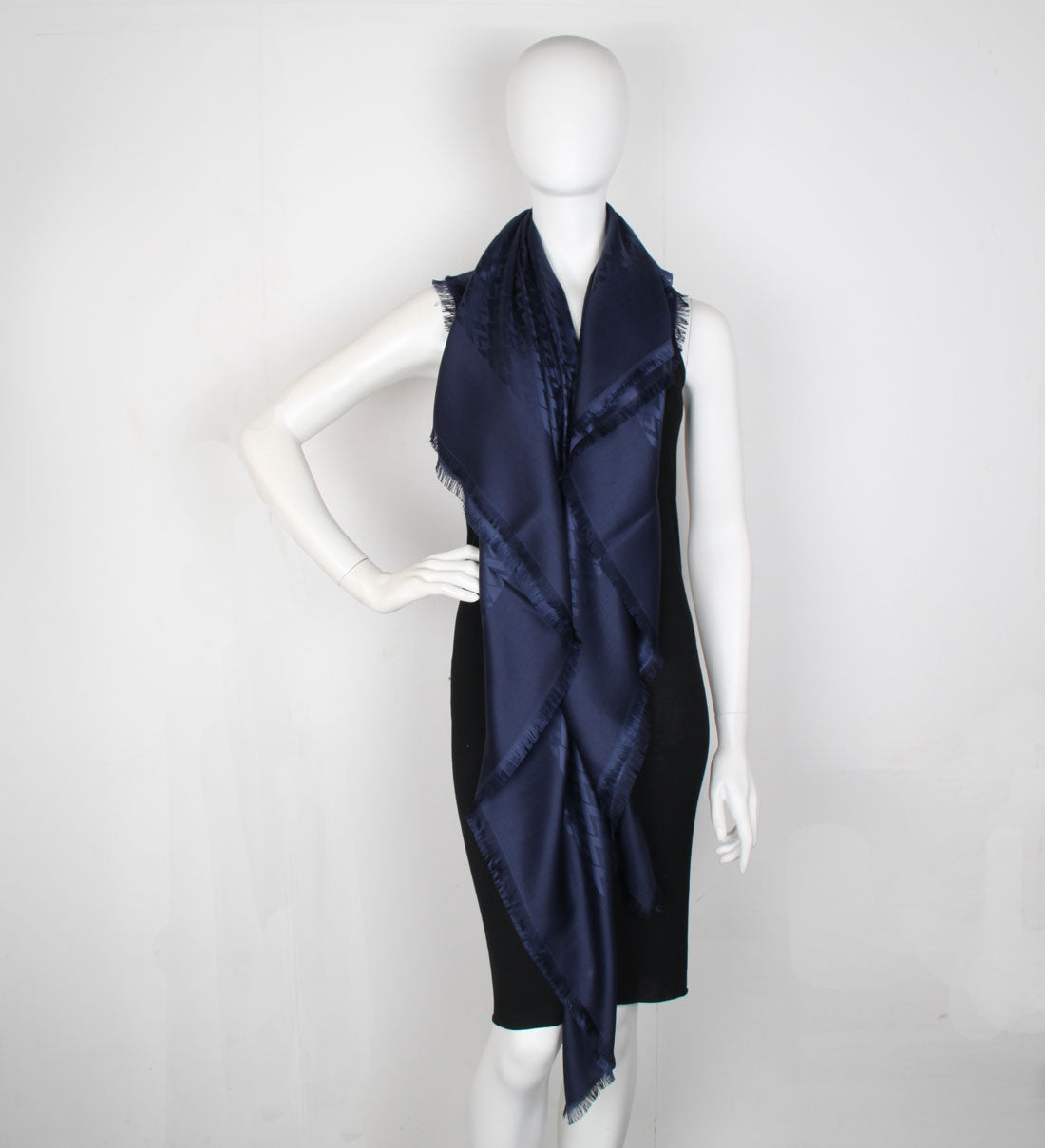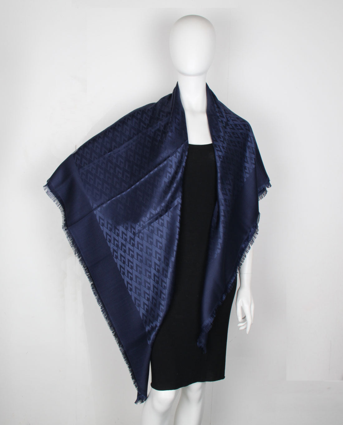 VLogo Rhombus Silk/Wool Shawl, Navy