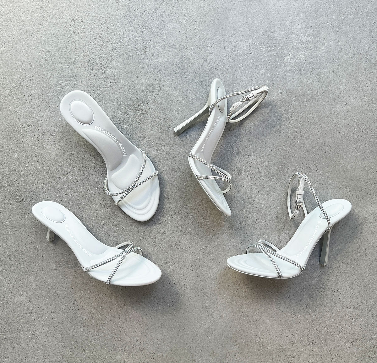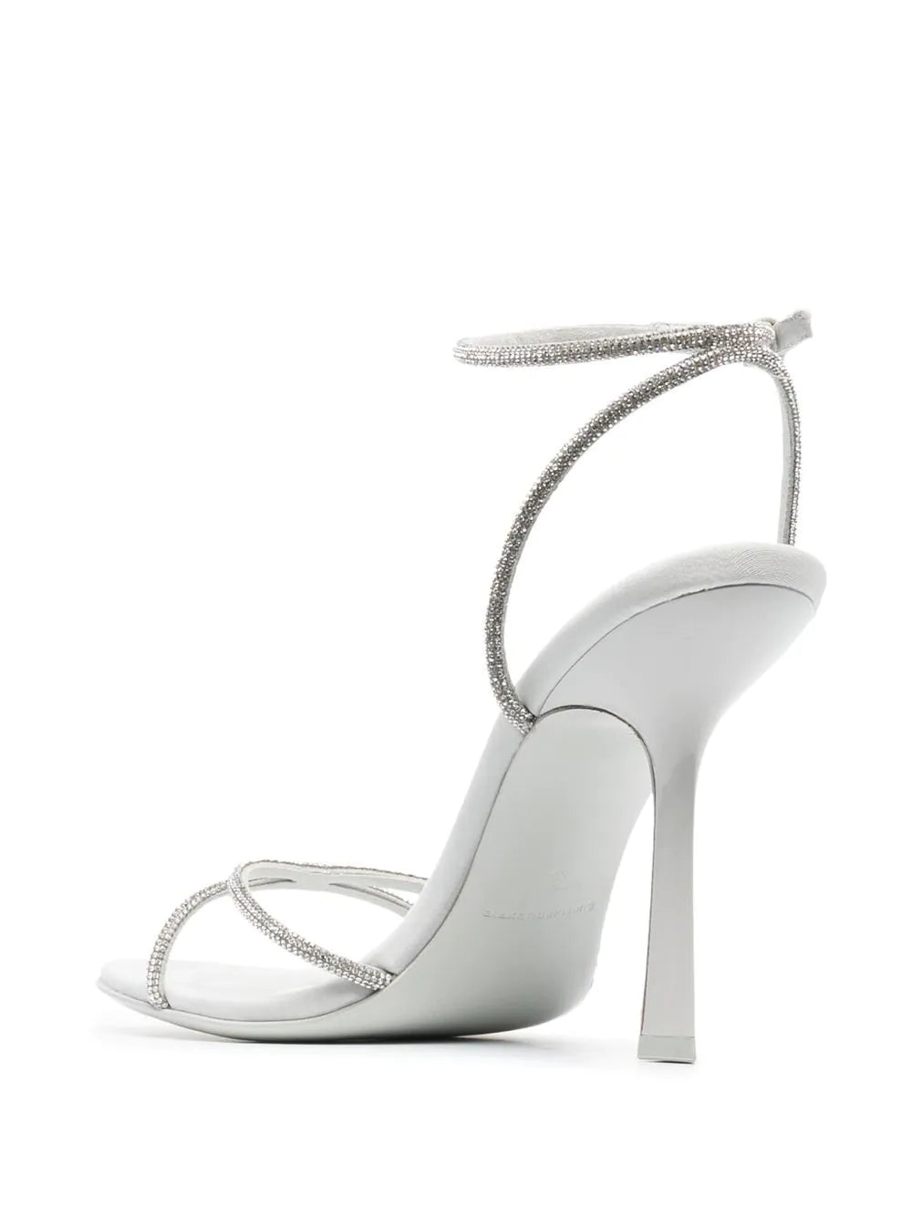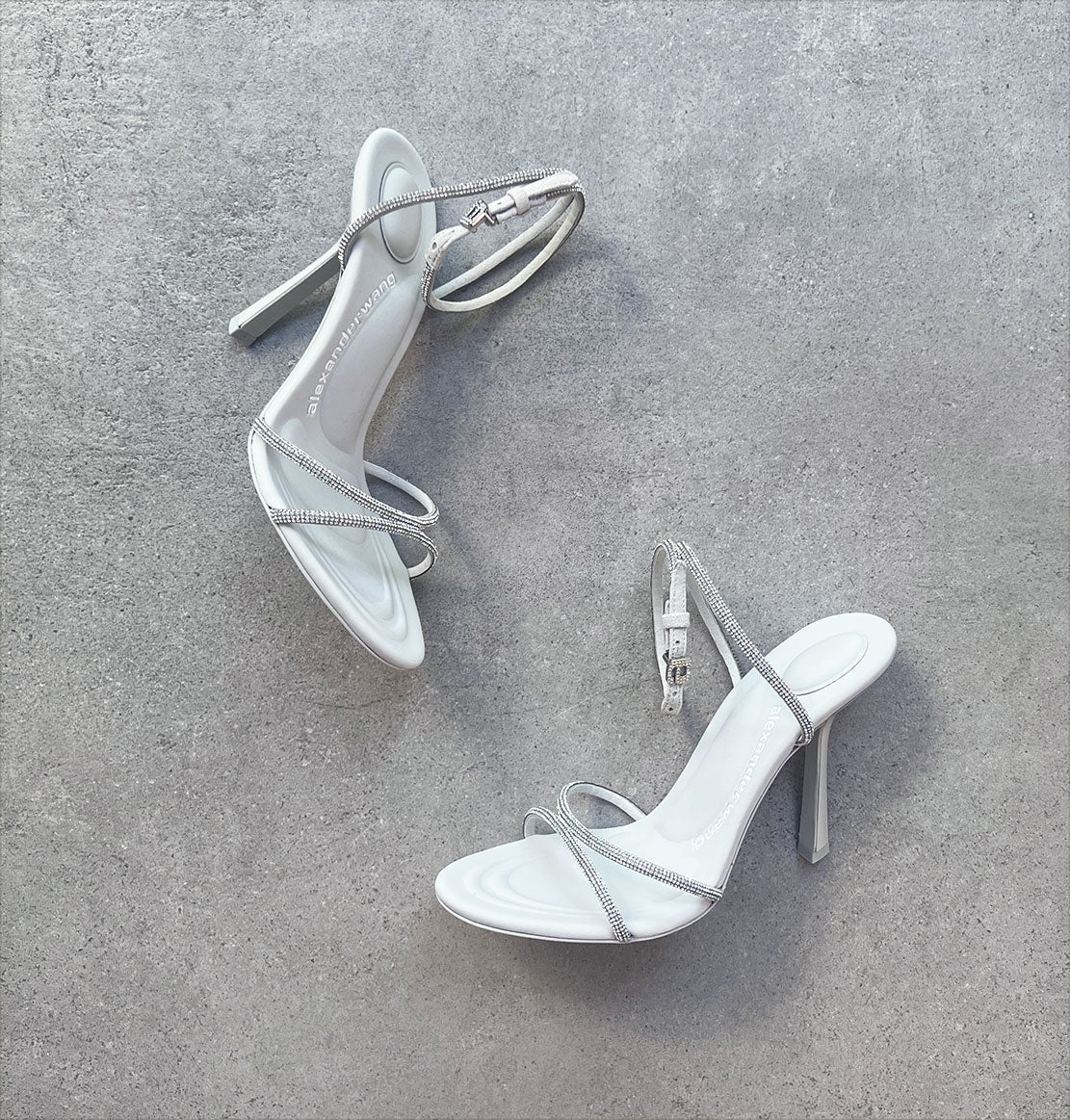 The Dahlia made from alloy satin with allover crystal high-heel strappy and lambskin lining.