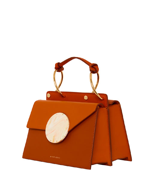 Introducing Phoebe Bis, the latest edition to the Phoebe series. Defined by its signature oversize spiral handles the Bis debuts a bold acetate closure, with a hand stitched finish that adds a luxurious touch to the collection. The unsymmetrical flap brings a fun element to its elegant structure. Falling between Phoebe and Mini Phoebe for size it retains its two compartments for easy organisation.
