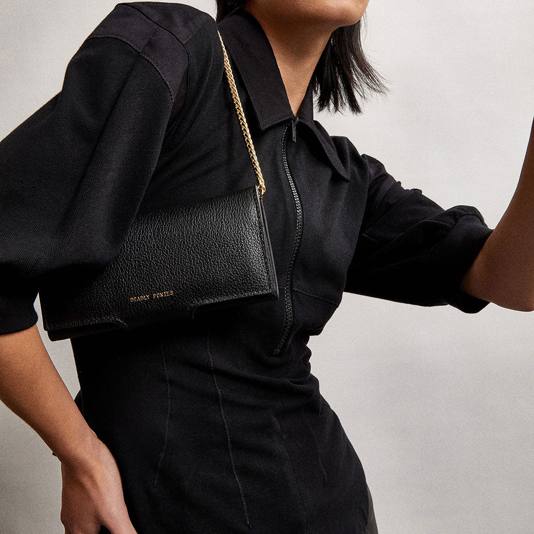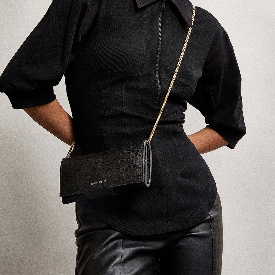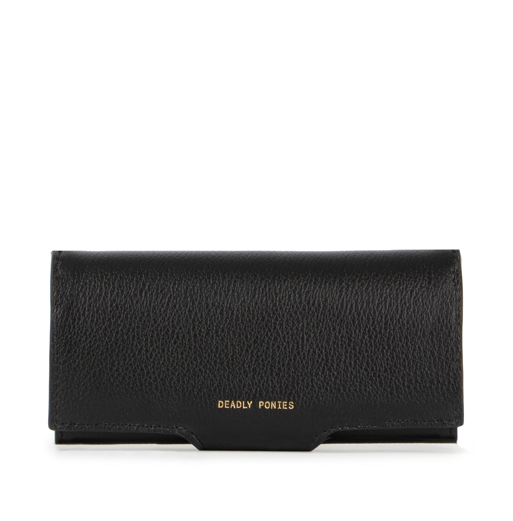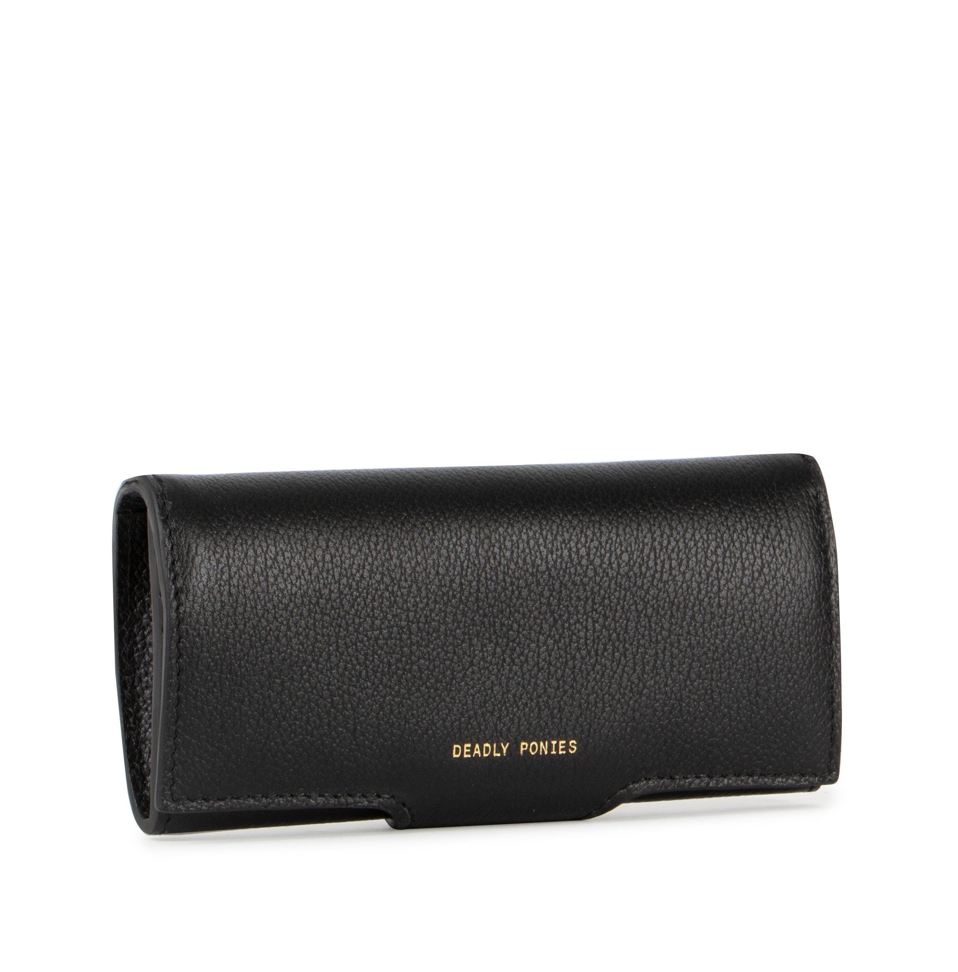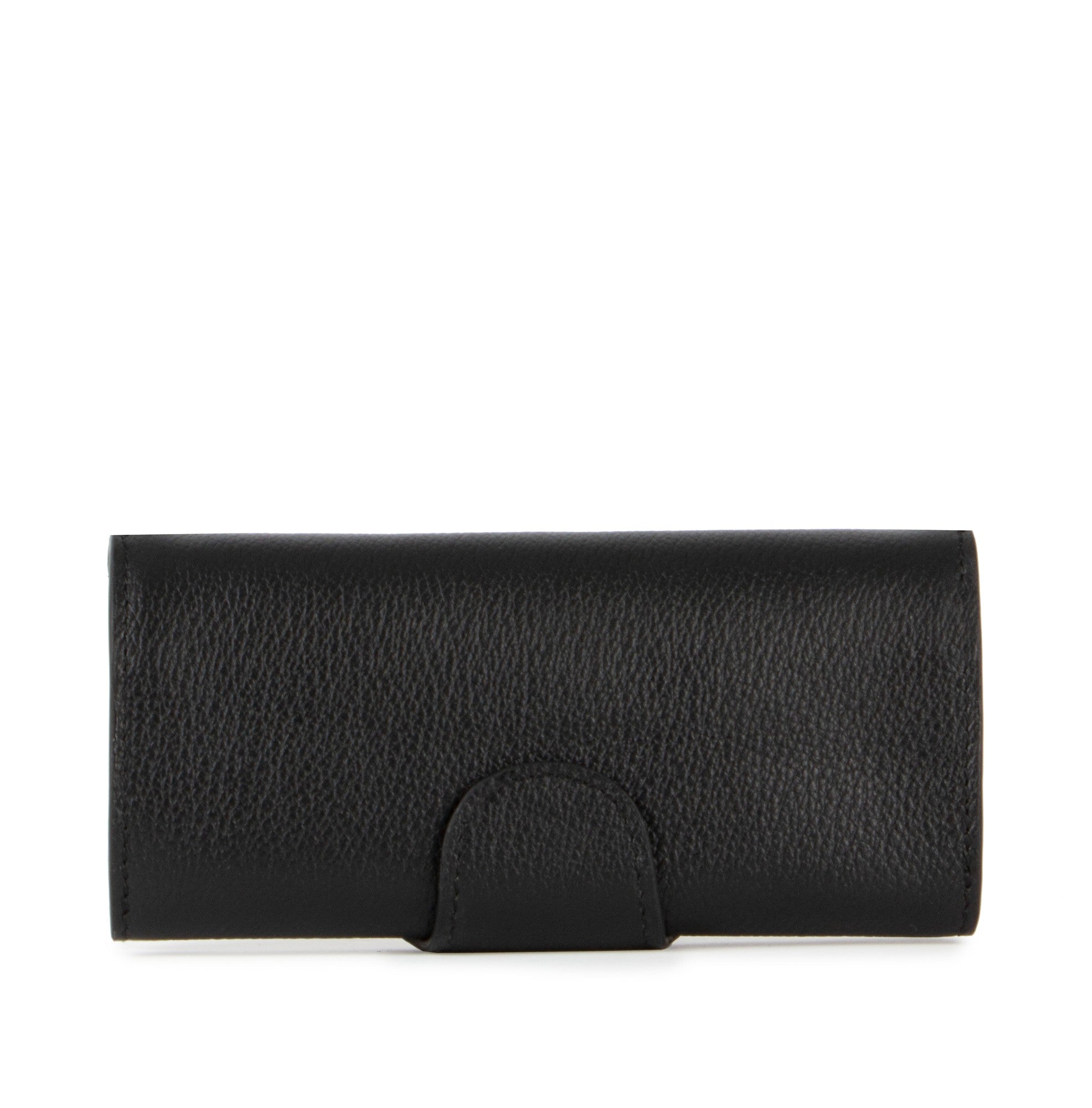 Simplicity speaks volumes when it comes to our Flip N Snap Maxi wallet. Spacious and secure, our Flip N Snap Maxi is landscape in design, and finished in sumptuous Bovine leather with solid brass hardware. A press stud closure secures thirteen card slots, three bill compartments and a zipped coin pocket. Our Flip N Snap Maxi features leather tabs for optiop to add an addition of a brass chain (sold separately) so you can choose how you wish to wear it. Designed to hold a phone with ease and without strain.