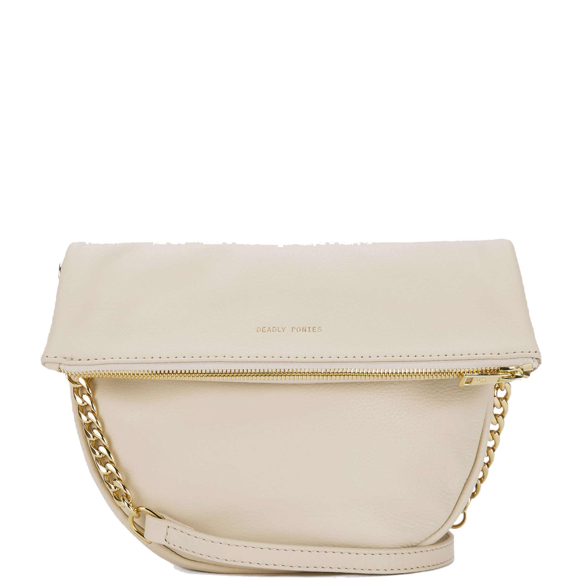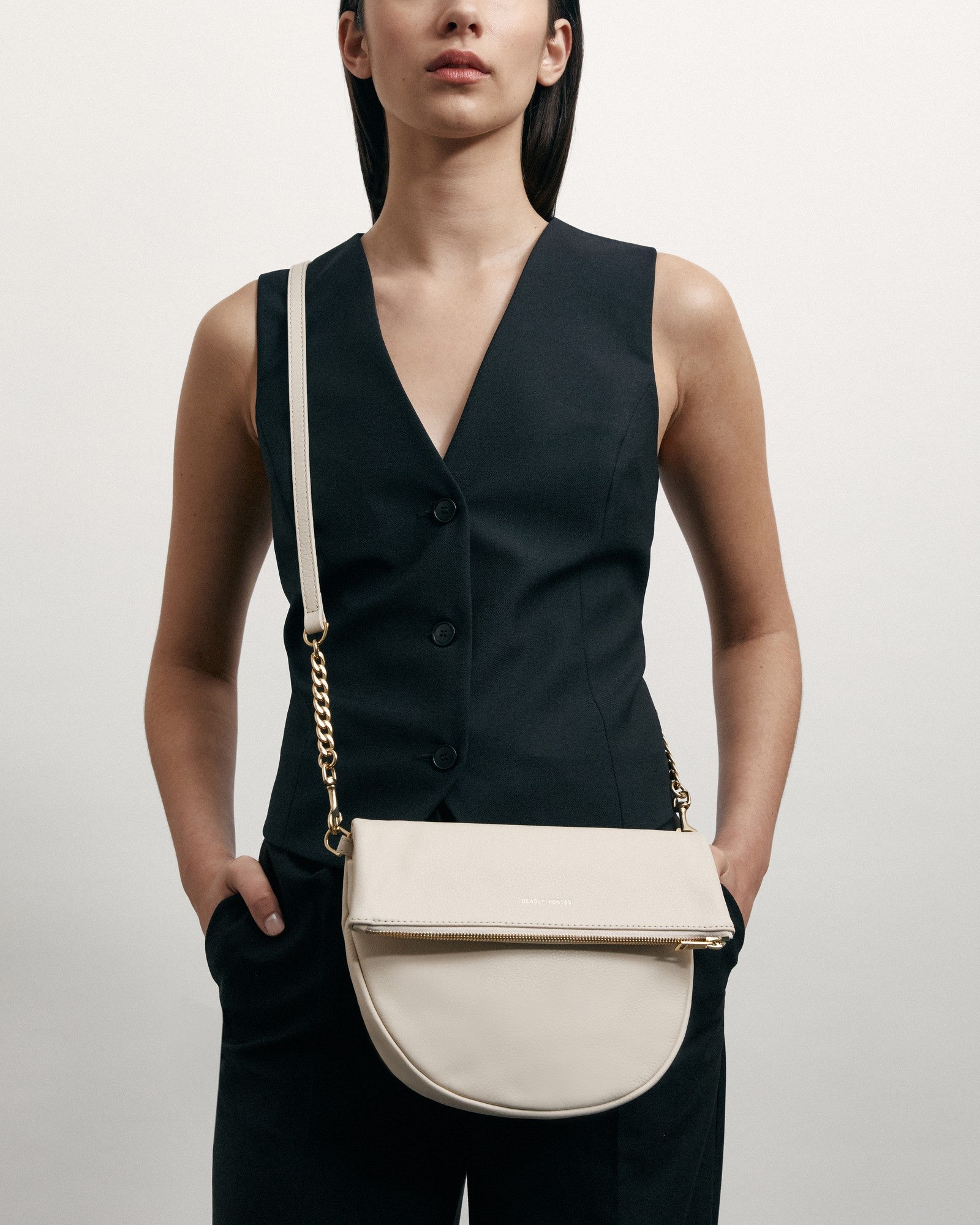 Hobo style shoulder bag in supple deer leather with additional chain strap which allows bag to be carried cross body. Canvas lining with interior pocket and brass hardware.