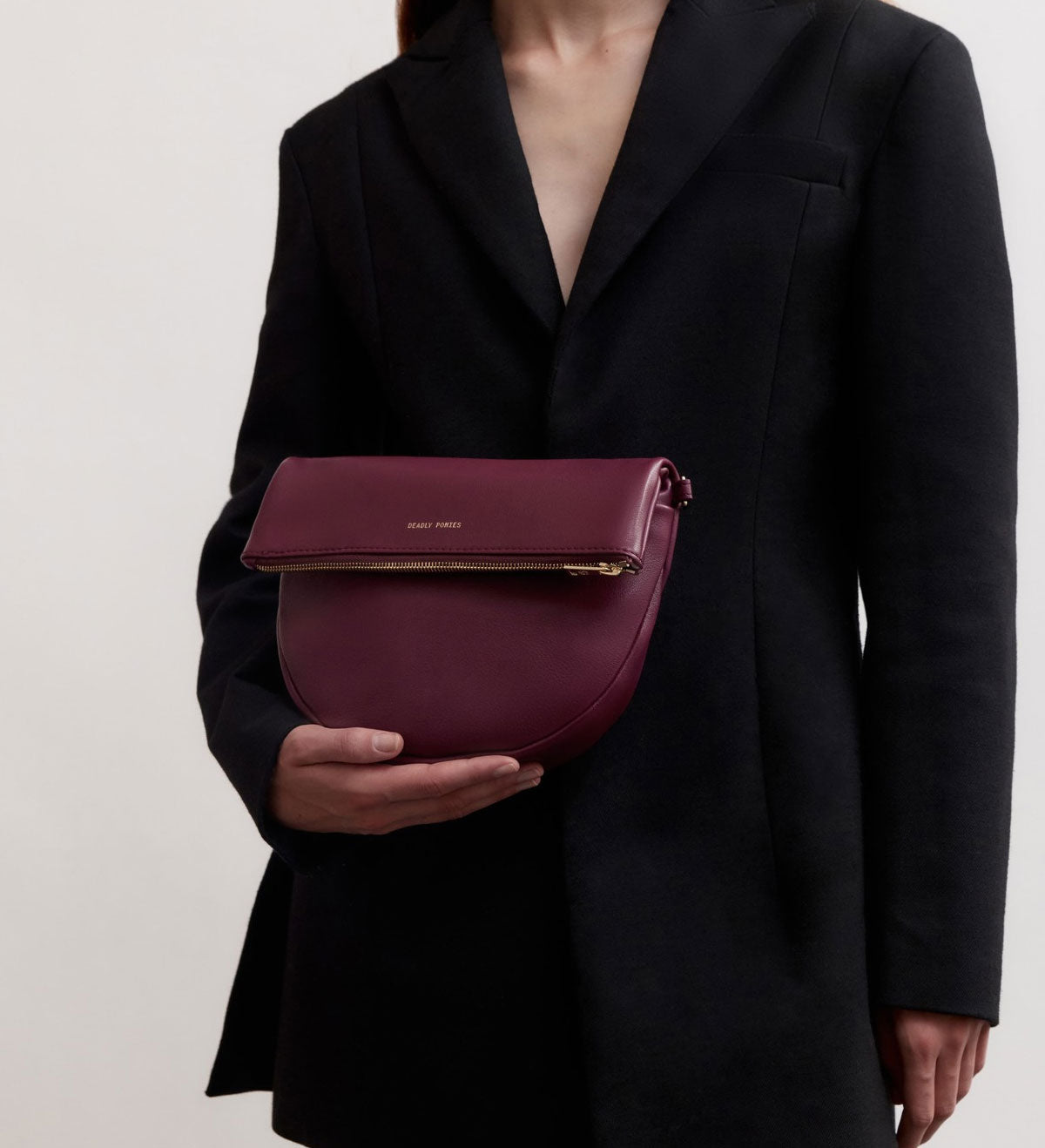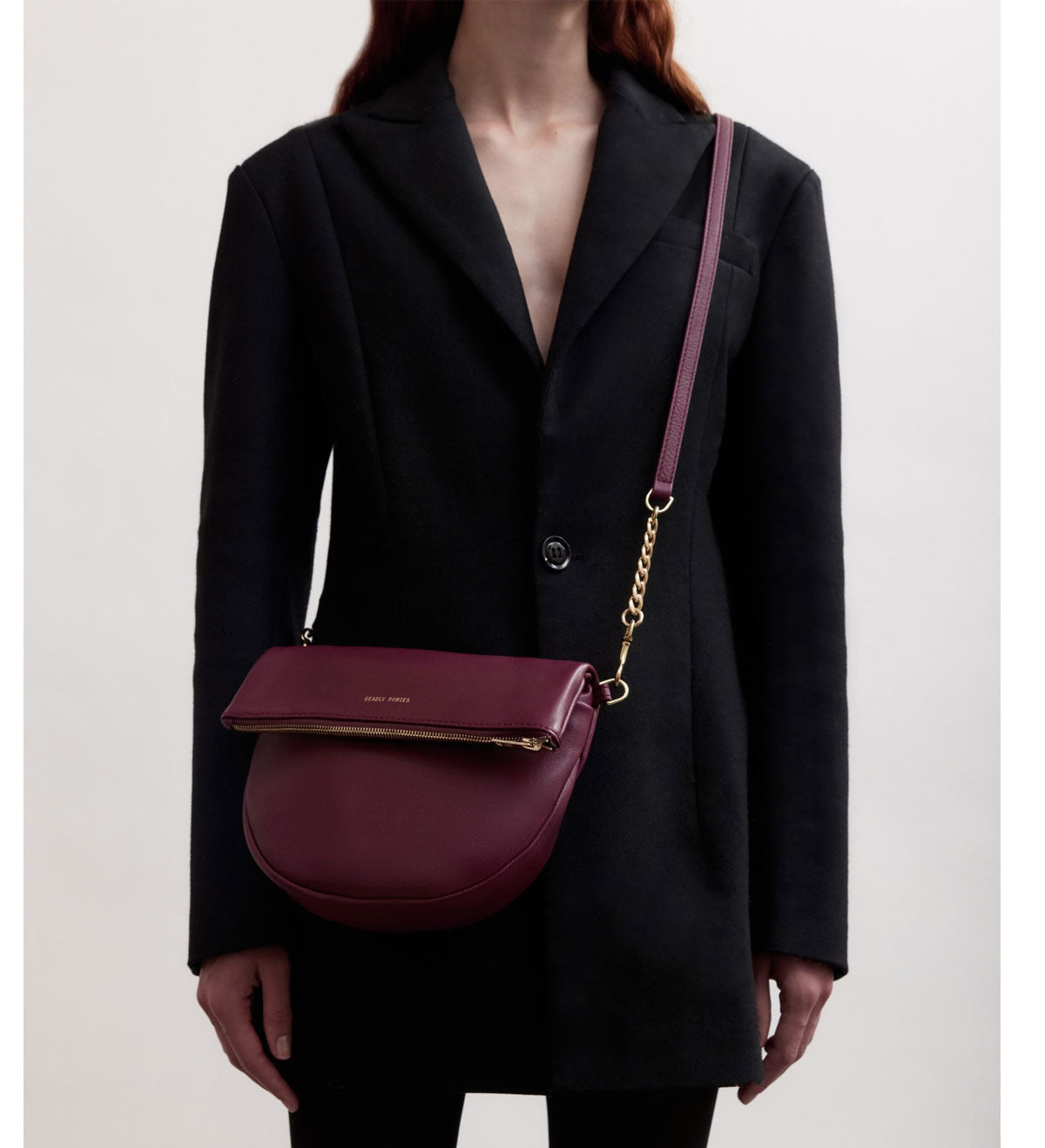 Hobo style shoulder bag in supple deer leather with additional chain strap which allows bag to be carried cross body. Canvas lining with interior pocket and brass hardware.