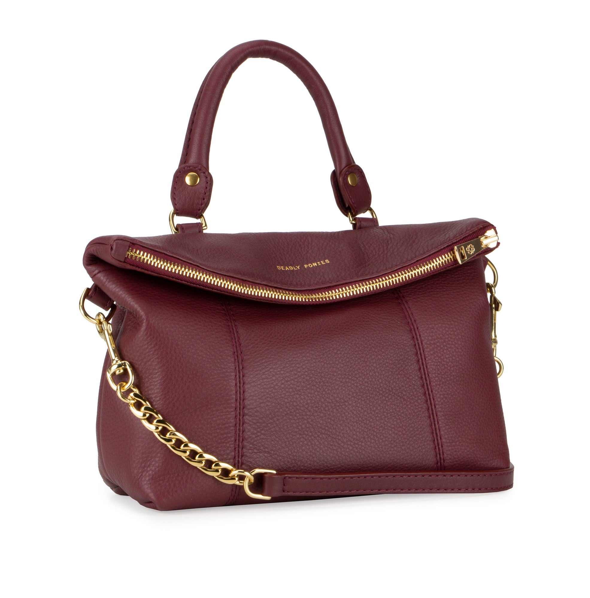 Soft New Zealand Deer Napa shoulder bag with interior pocket, multiple handle options for wrist or should carry and brass hardware. A great day to night option.