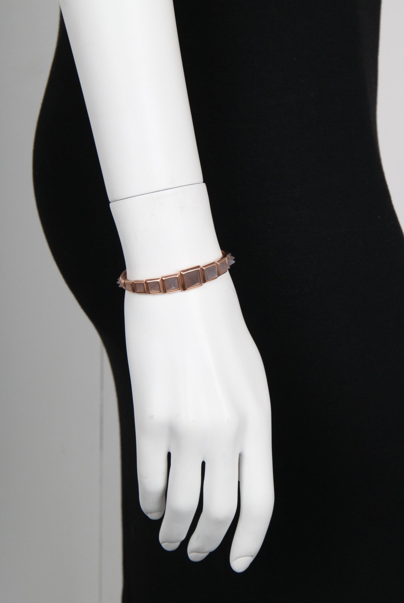 Eddie Borgo matte rose graduated gemstone pyramid cuff with matte grey agate hand cut gemstones and matte rose gold plated brass.