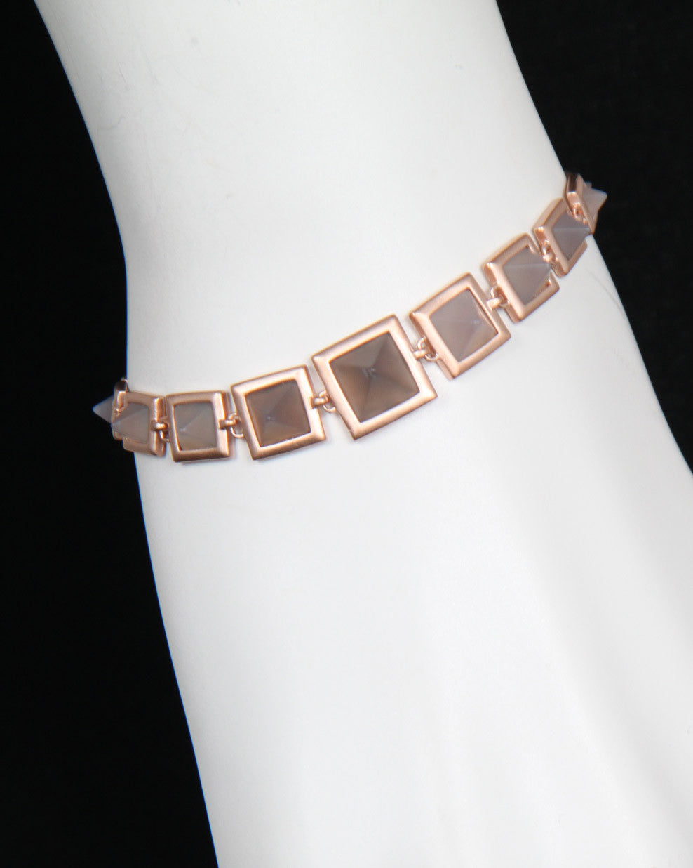 Eddie Borgo Graduated Gemstone Pyramid bracelet with matte grey agate hand cut gemstones and matte rose gold plated brass.