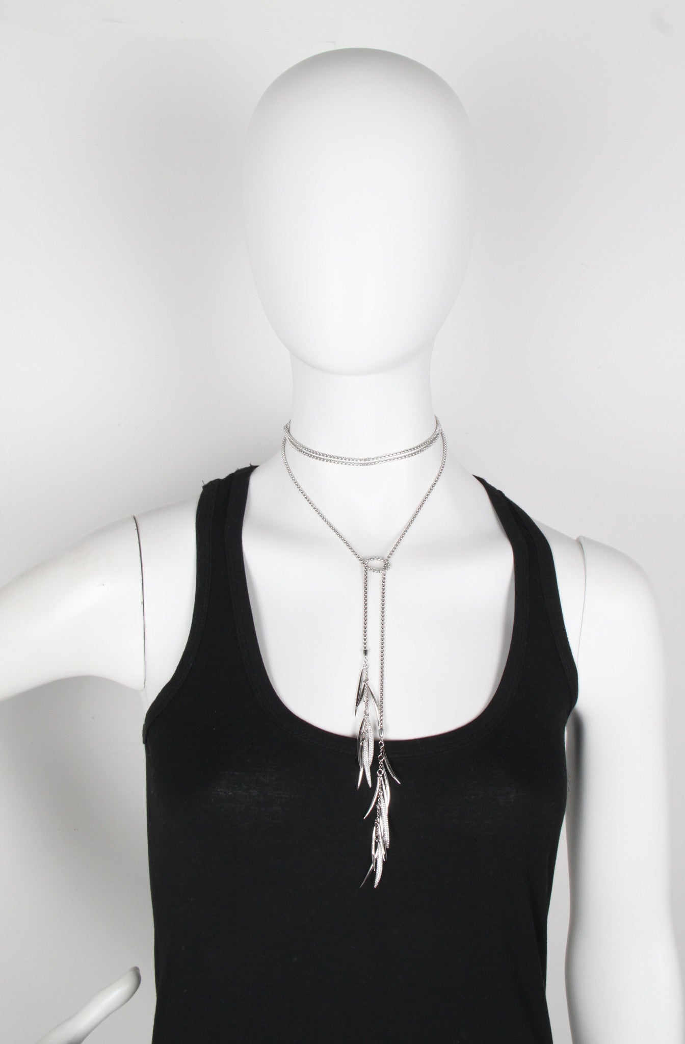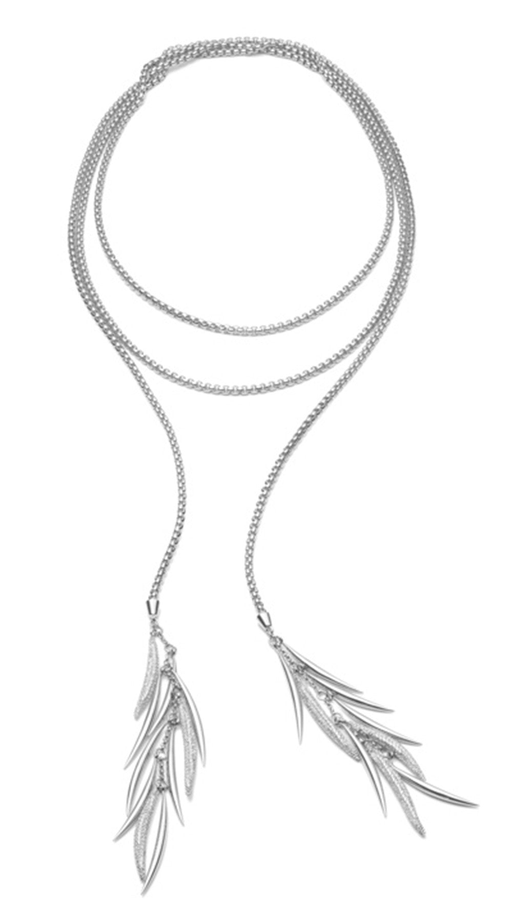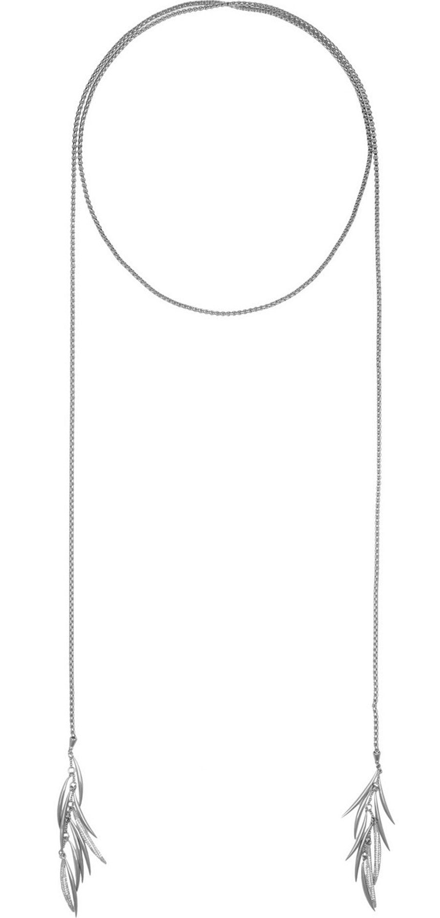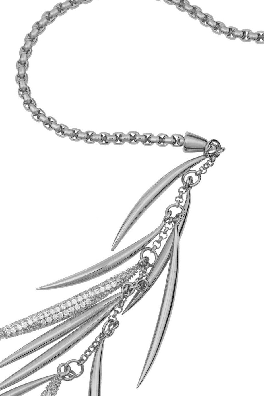 Pavé Prickle Scarf plated in silver is a wrap necklace with fluid high shine and handcut pavé crystal prickles at each end.