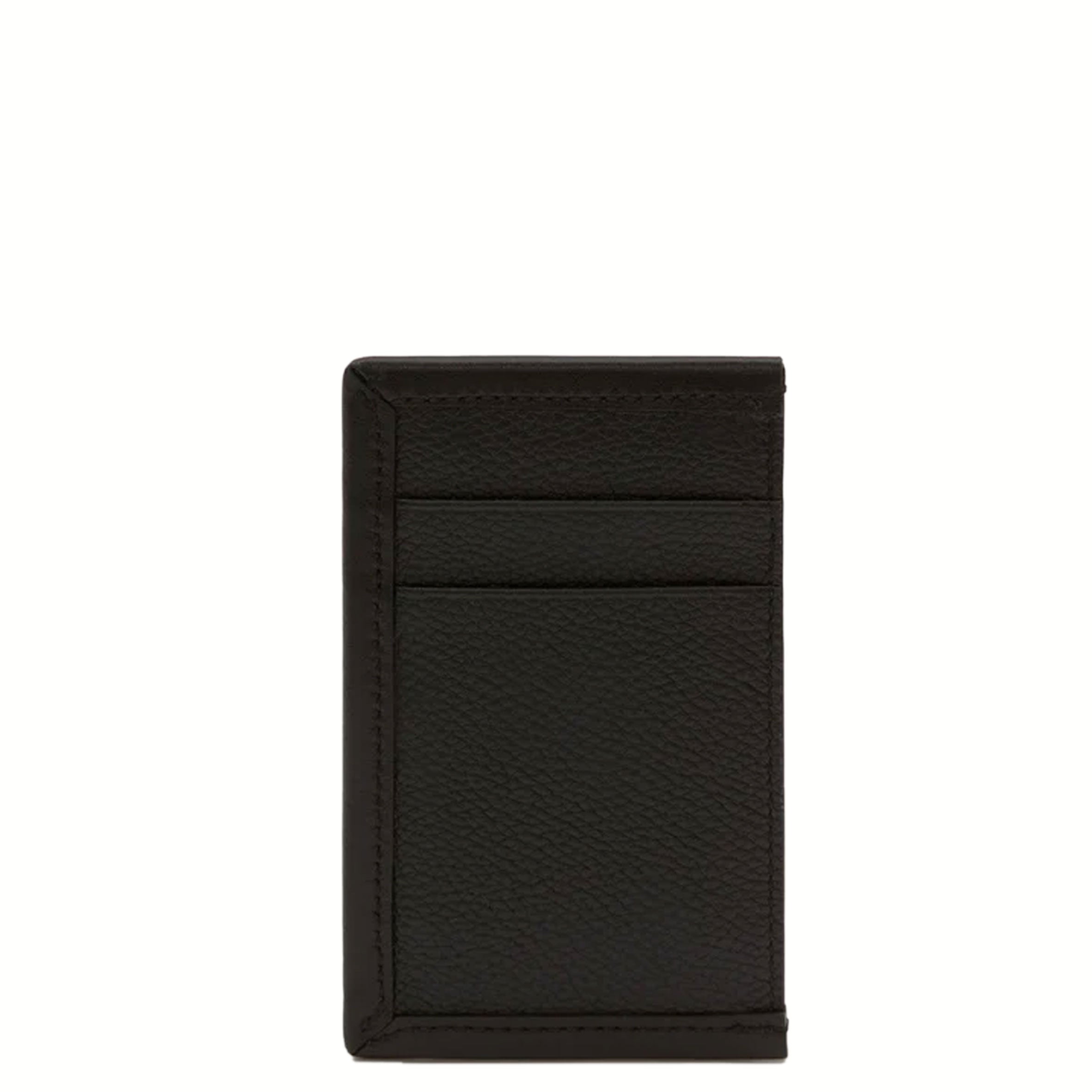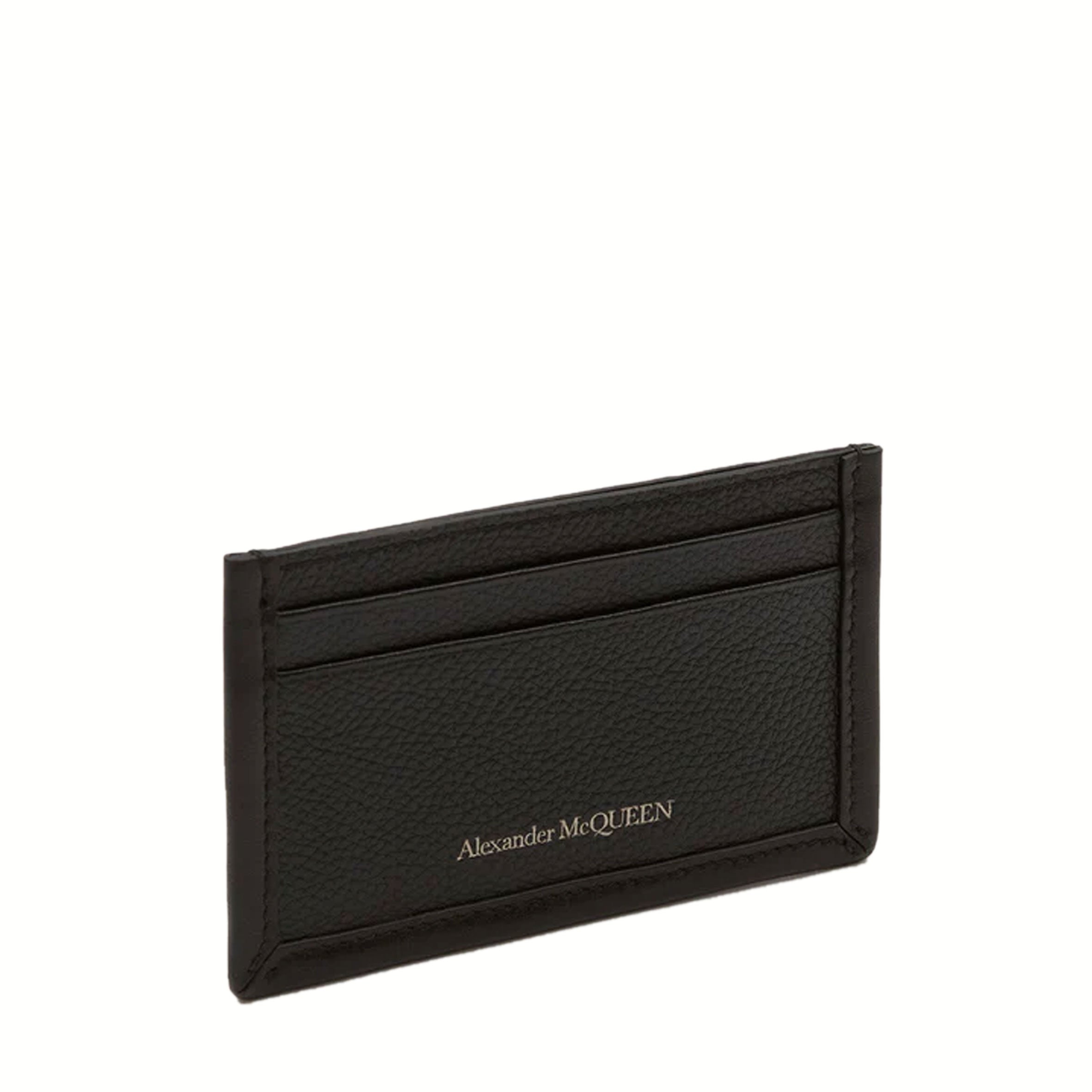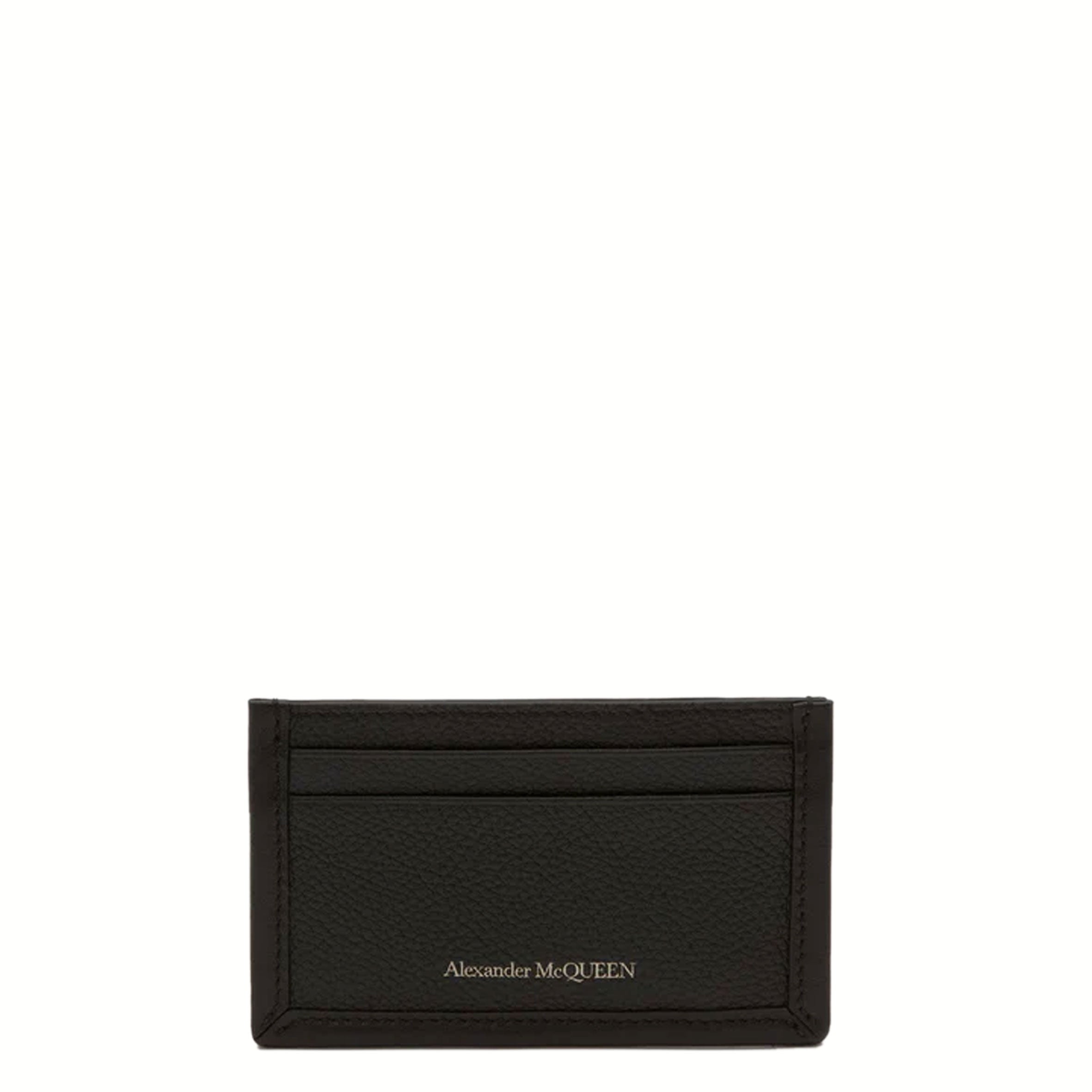 Black calf leather card holder with tonal edge detailing, finished with an Alexander McQueen signature.