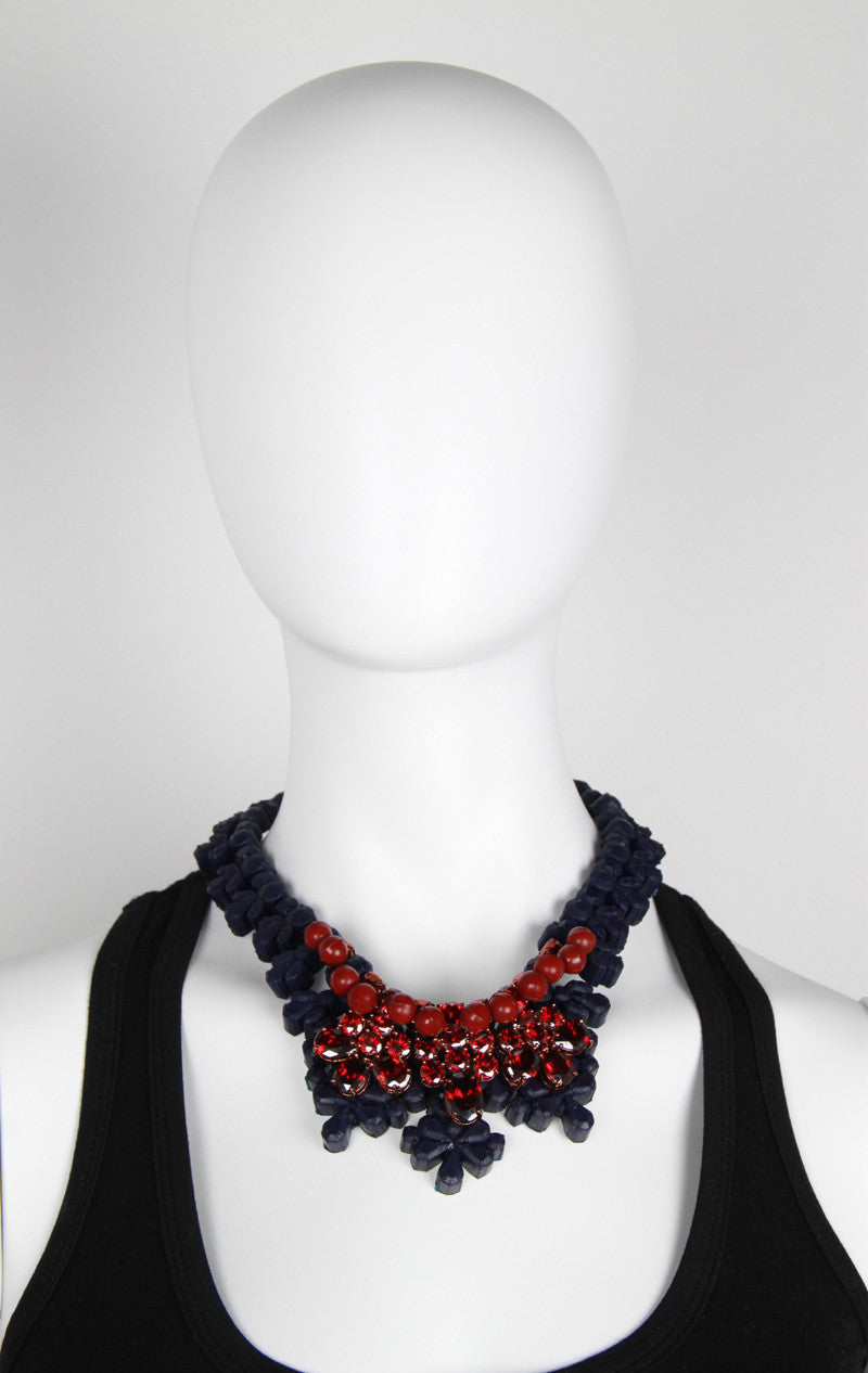 Colour:Blue with garnet Cubic zirconia and brown Plated Metal.