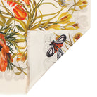 Cashmere and silk-blend scarf with refined silk scarf-inspired motif all over. Completing the accessory are the slightly frayed short sides.
