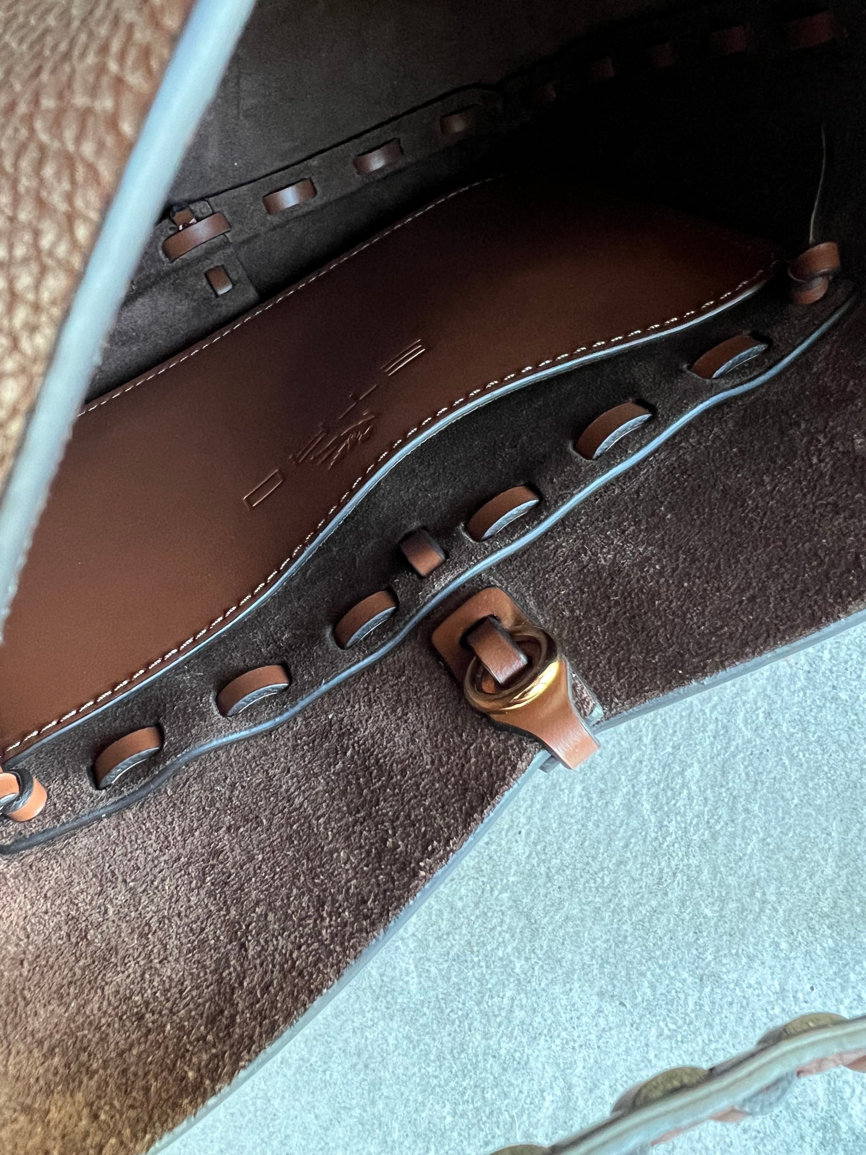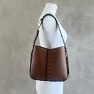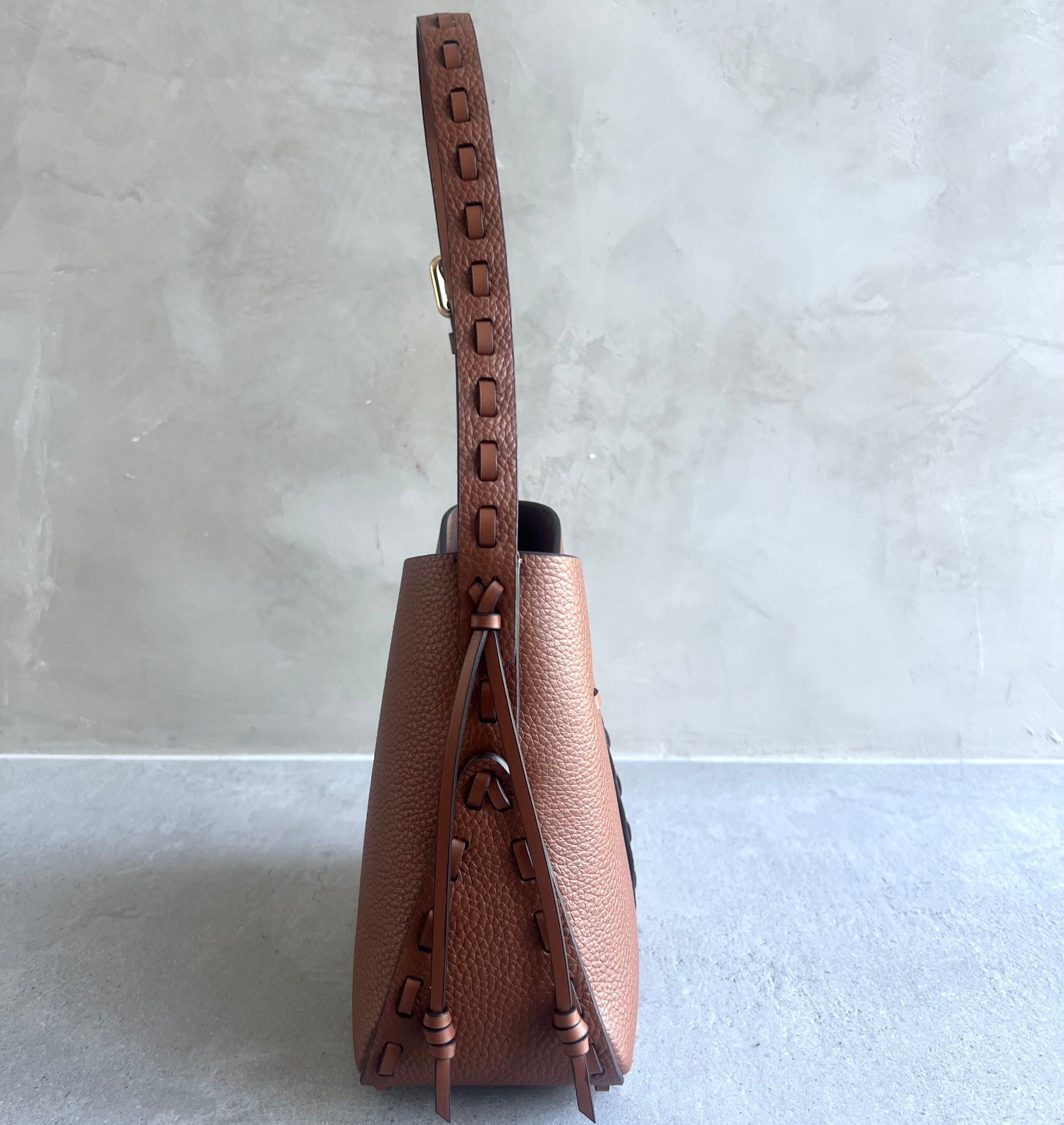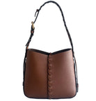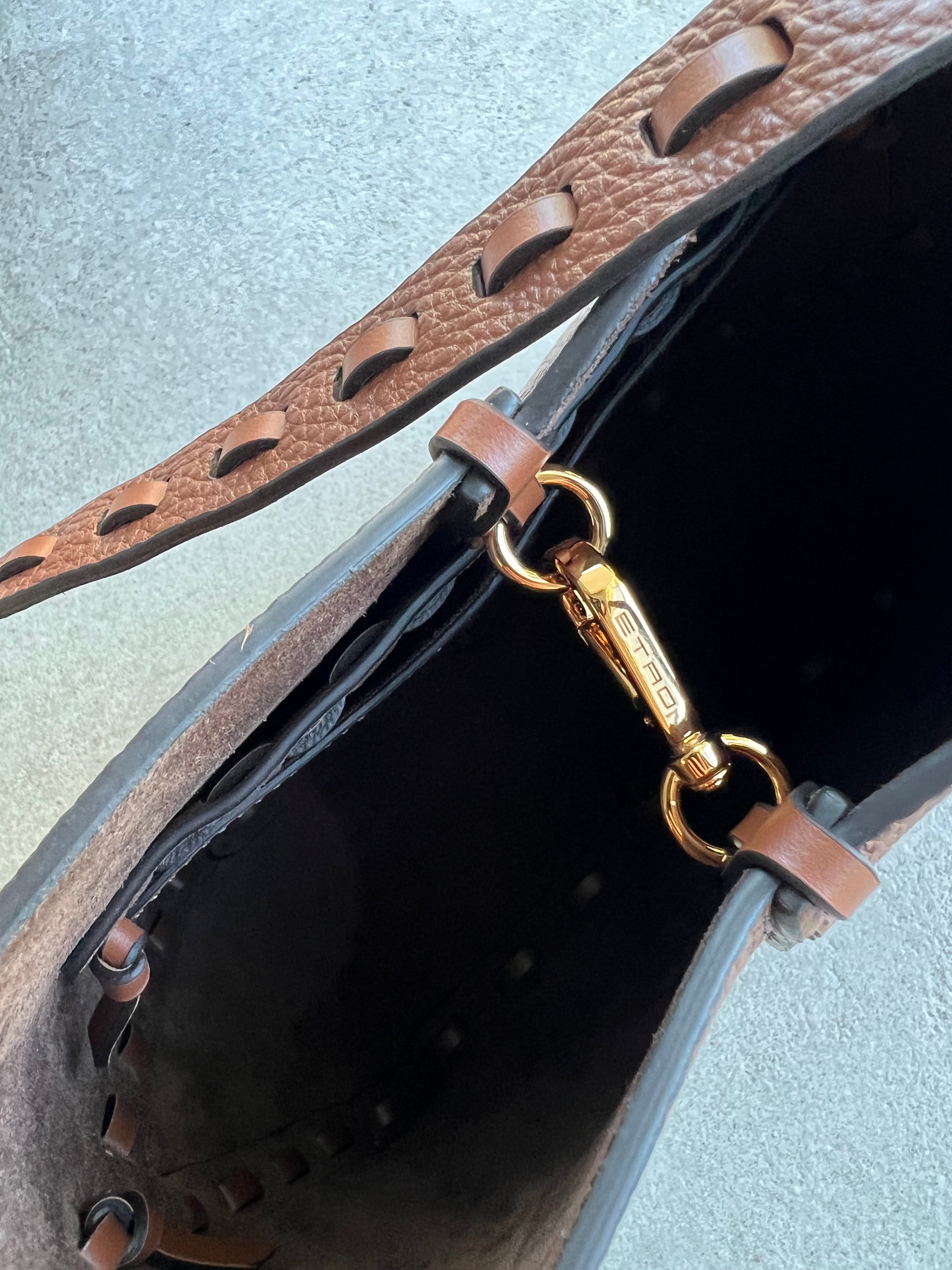 ETRO Essential Hobo Shoulder bag in plain-coloured tumbled leather with suede interior. This item boasts a special construction with threading and a handle finished with lacing and knots at the end.