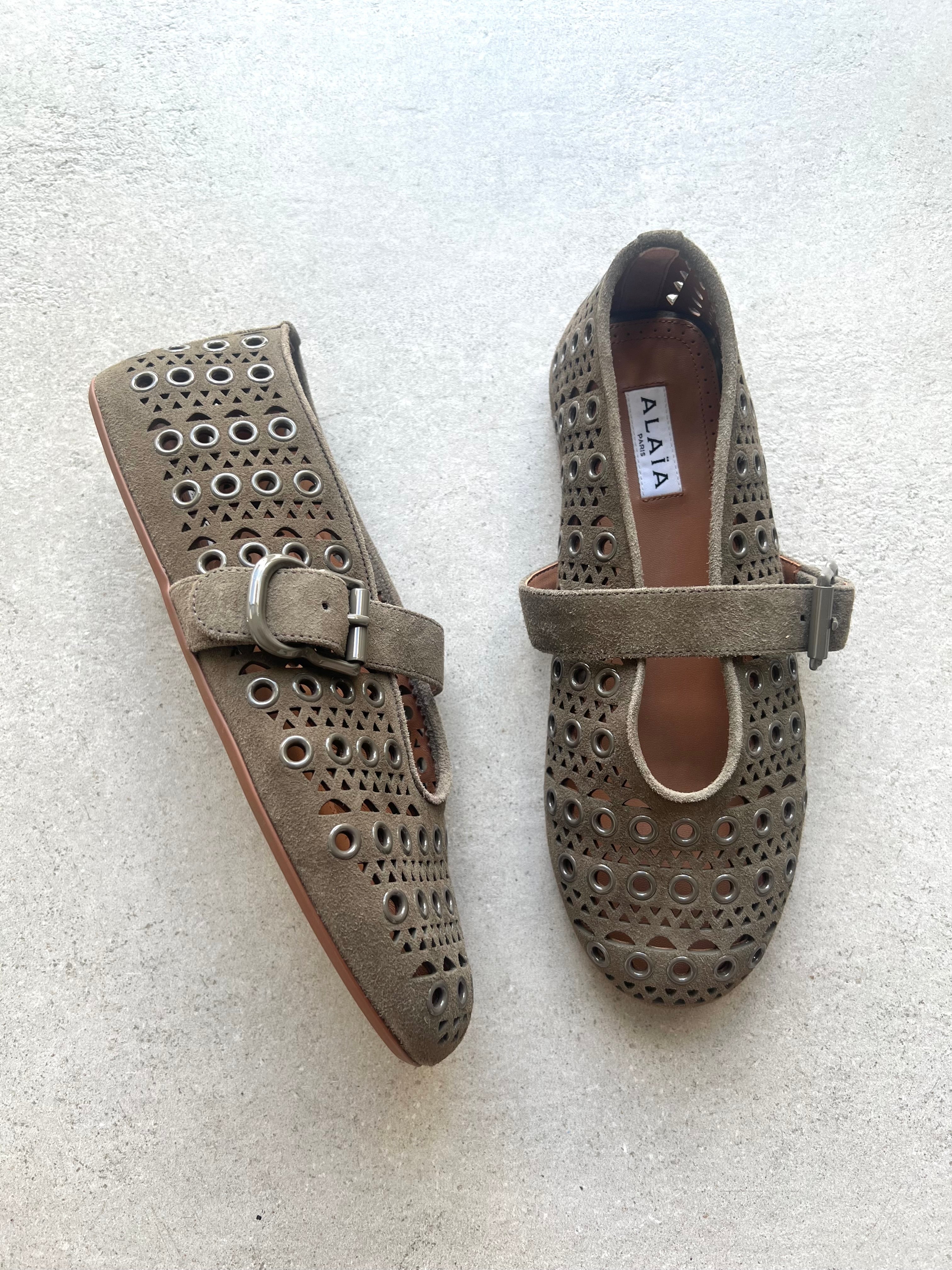 Eyelet Vienne Suede Ballet Flats, Tourterelle